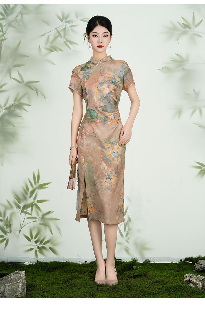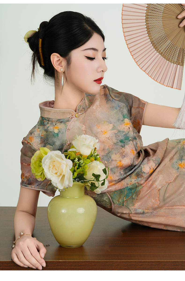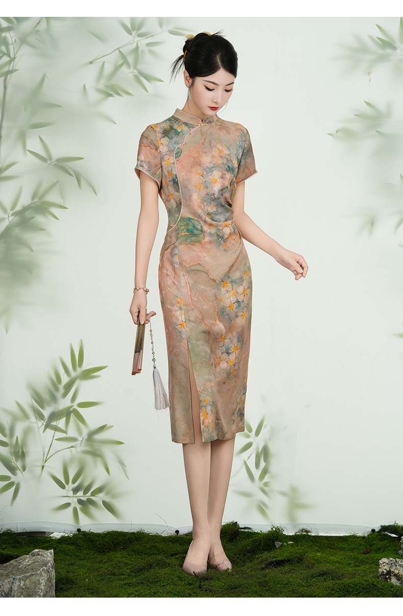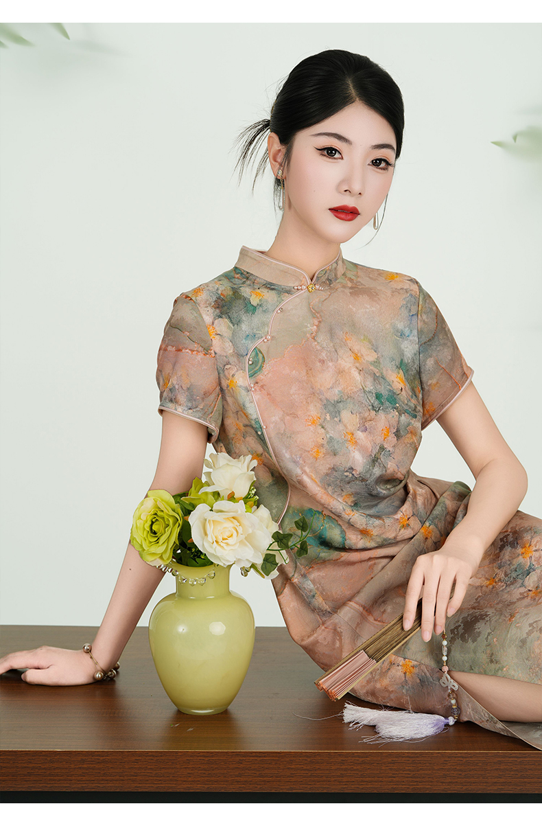 乔万尼新品新中式温婉典雅旗袍100%真丝连衣裙ED2E417