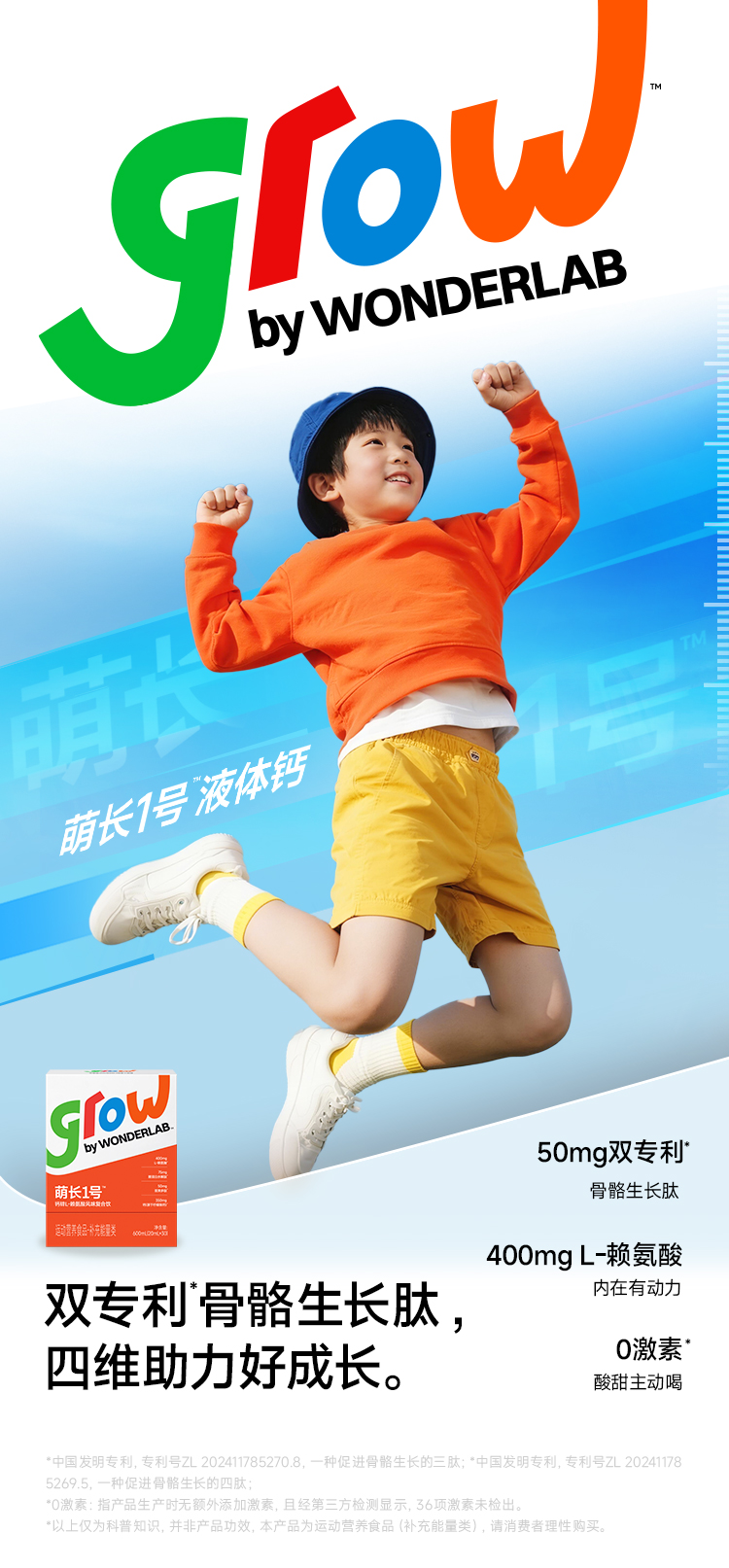 6-18岁 萌长1号液体钙 激活生长原动力 首创科学四维追高高 抓住成长黄金期 赢在吸收起跑线