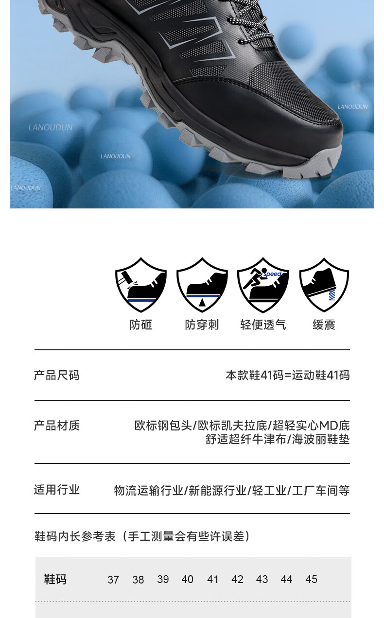 蓝鸥盾新款四季款劳保鞋男防砸防刺安全鞋钢包头耐磨工作鞋