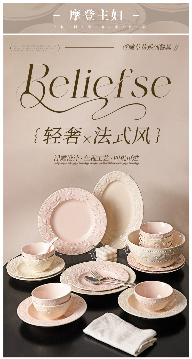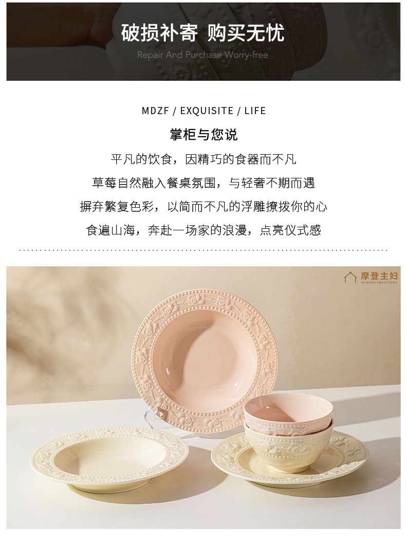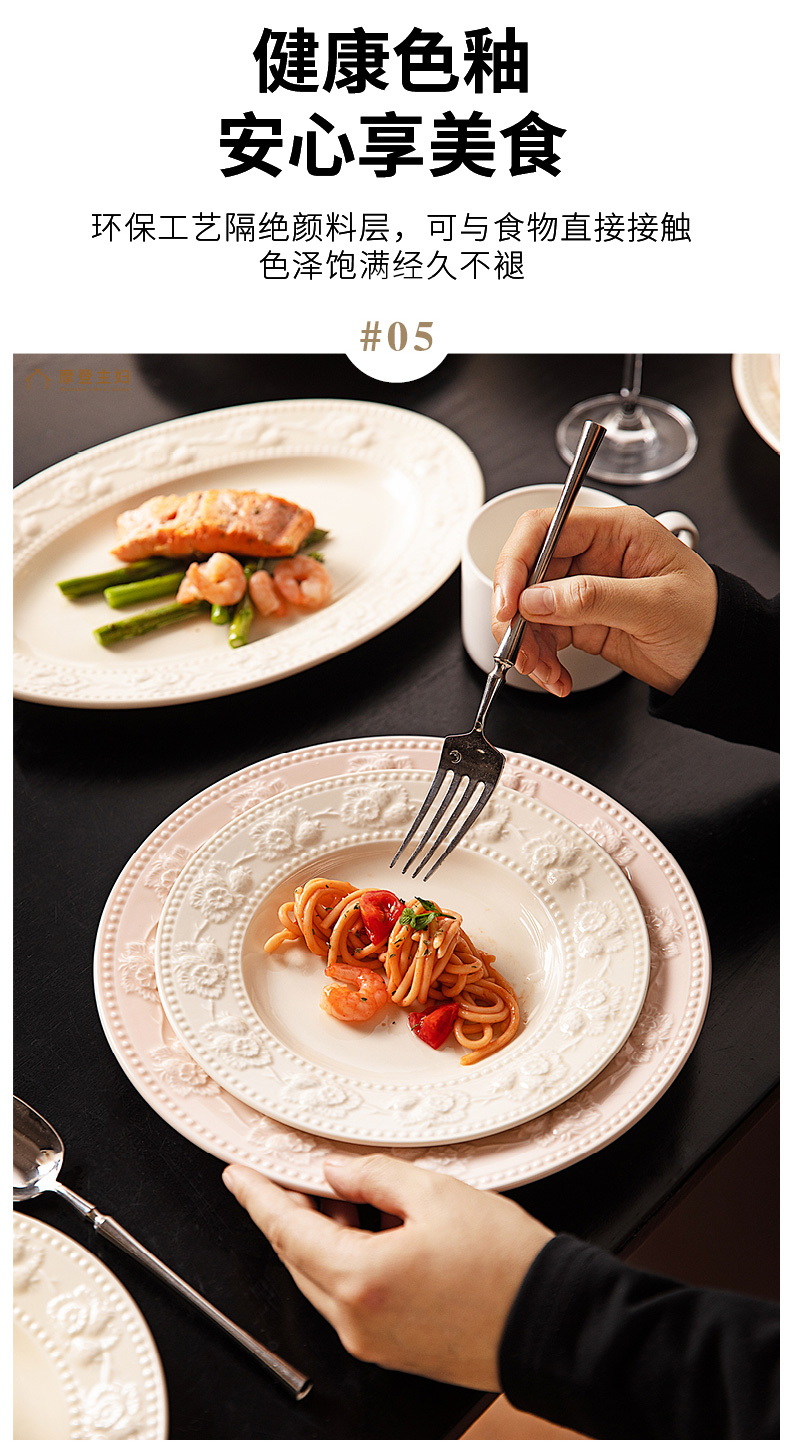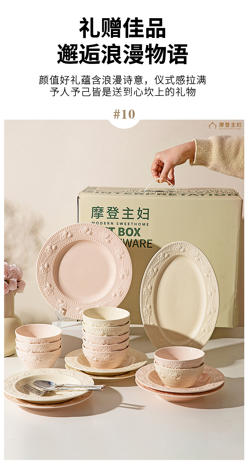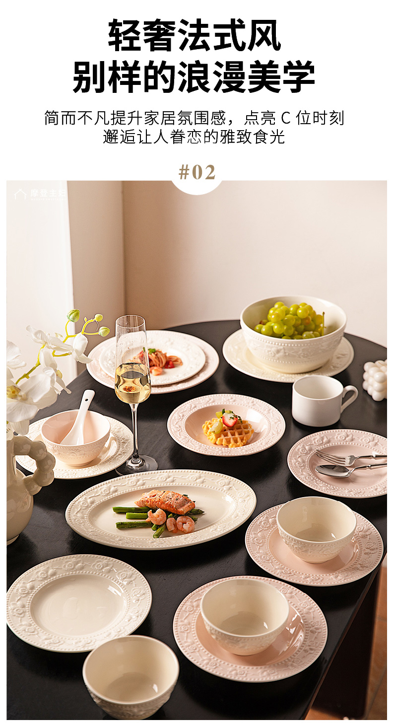 摩登主妇法式餐具碗碟家用2024新款高颜值盘子菜盘米饭碗浮雕碗具