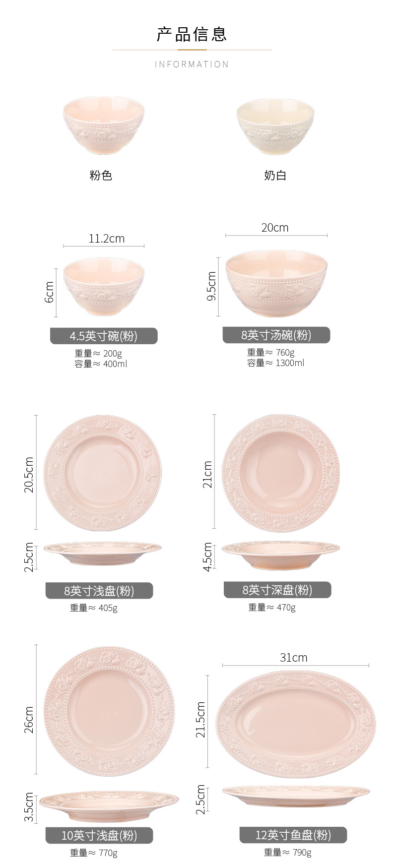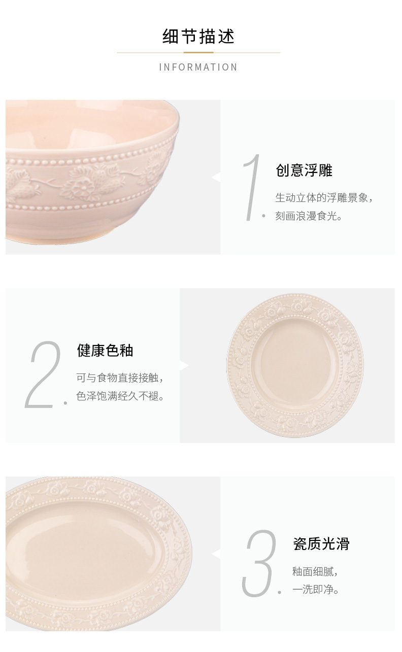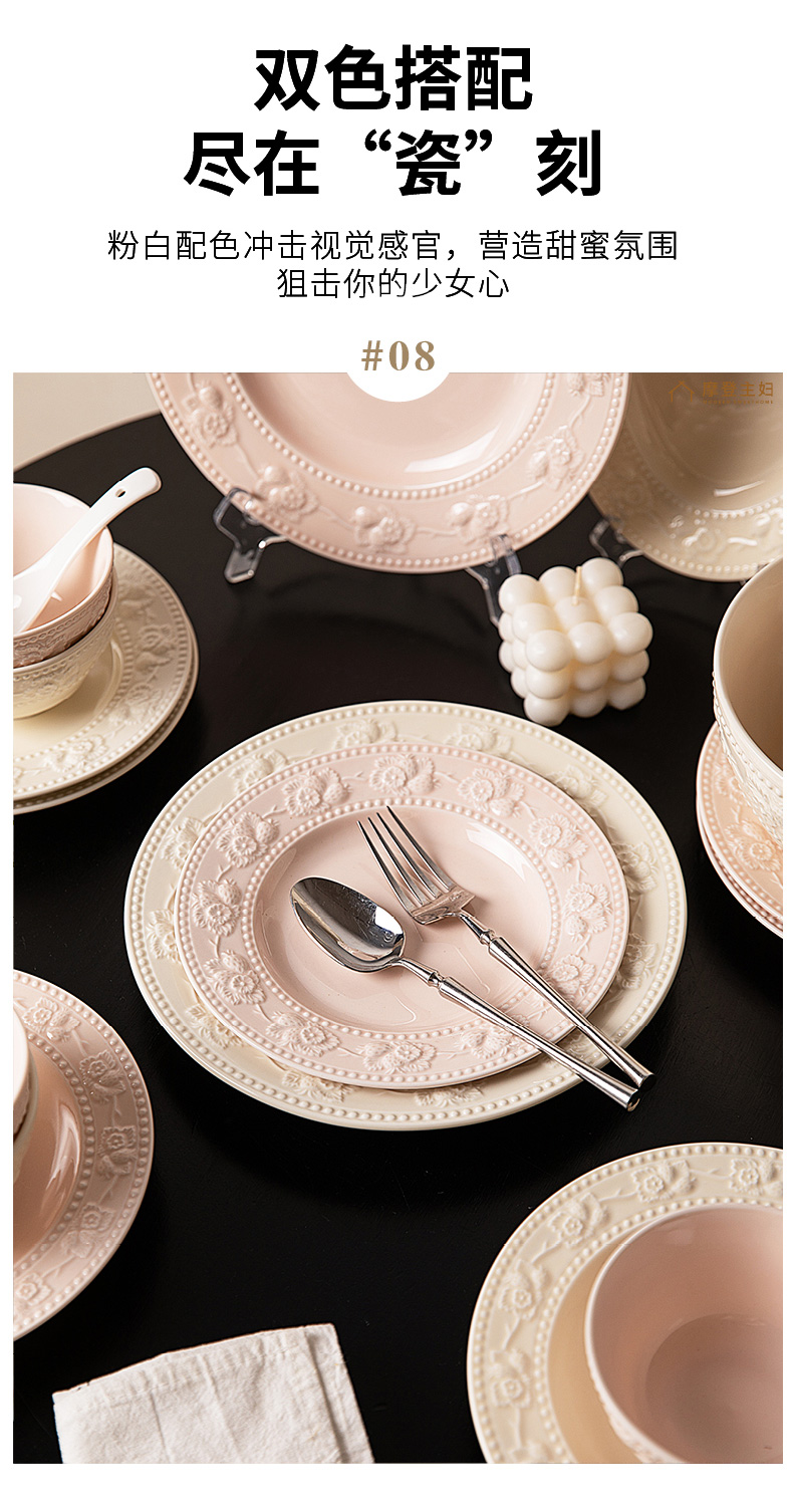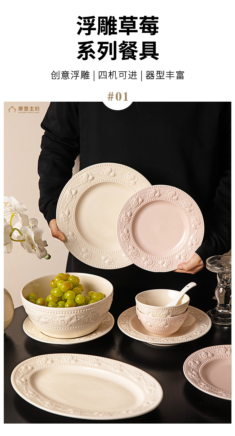 摩登主妇法式餐具碗碟家用2024新款高颜值盘子菜盘米饭碗浮雕碗具