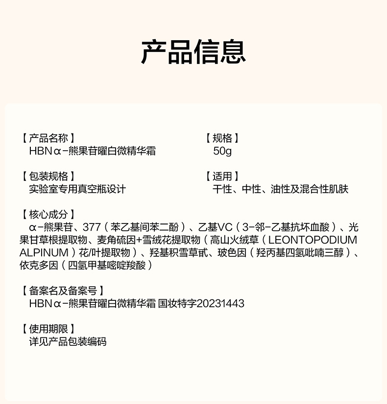 DKYBS20250627 HBN α-熊果苷曜白微精华霜 50g(原白霜) 原白系列