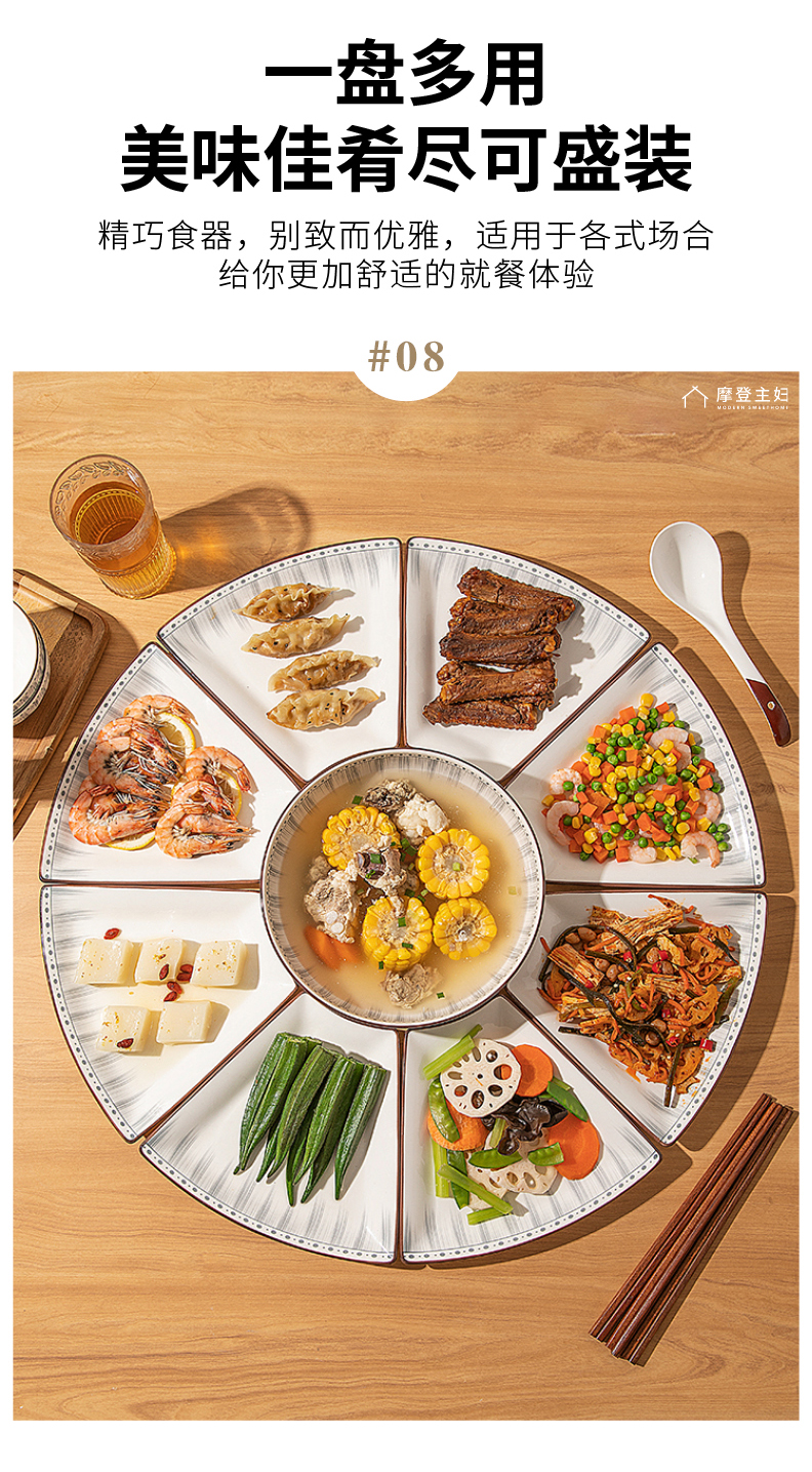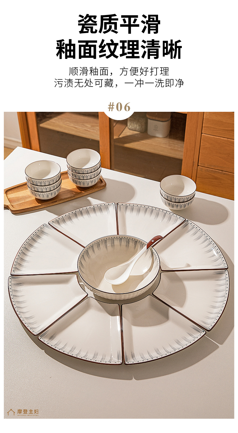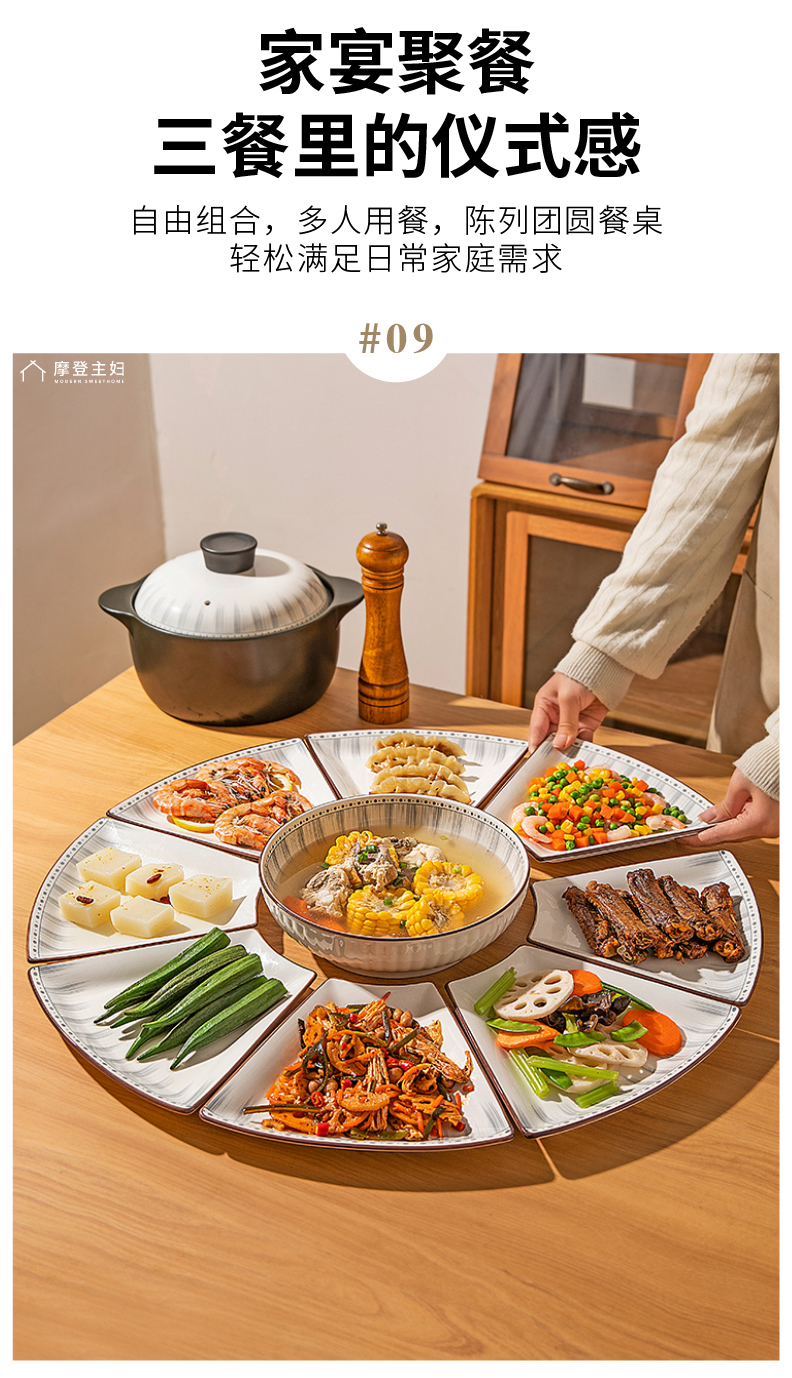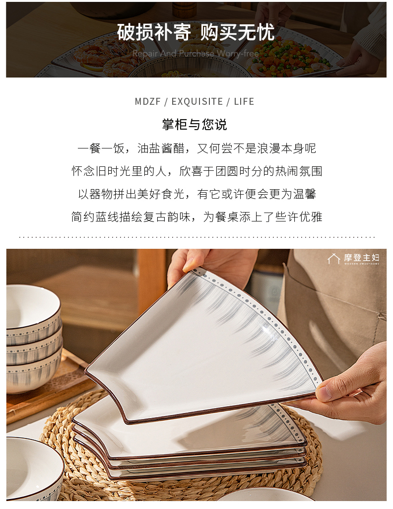 摩登主妇蓝线年夜饭拼盘碗碟套装家用2024新款菜盘子过年团圆餐具