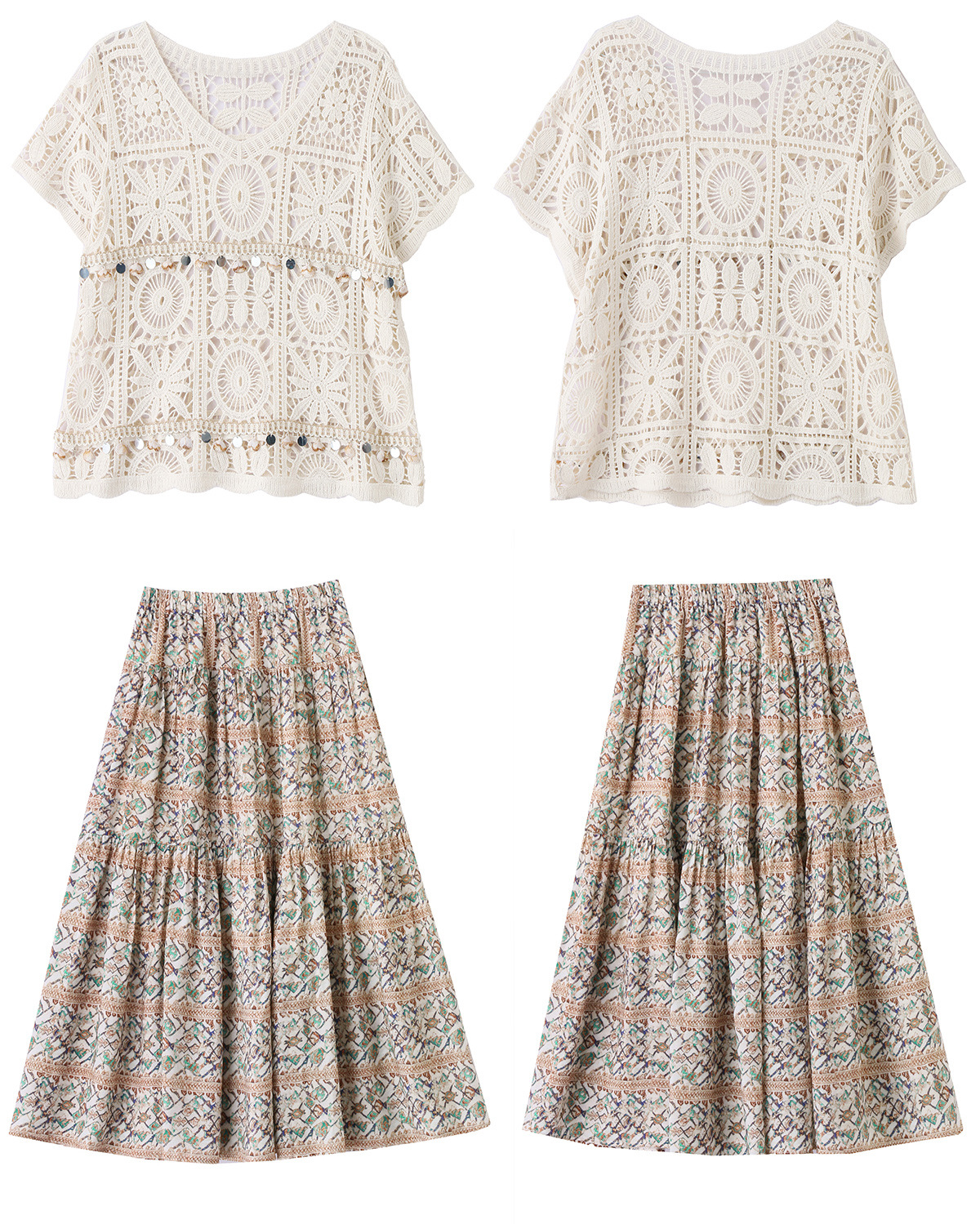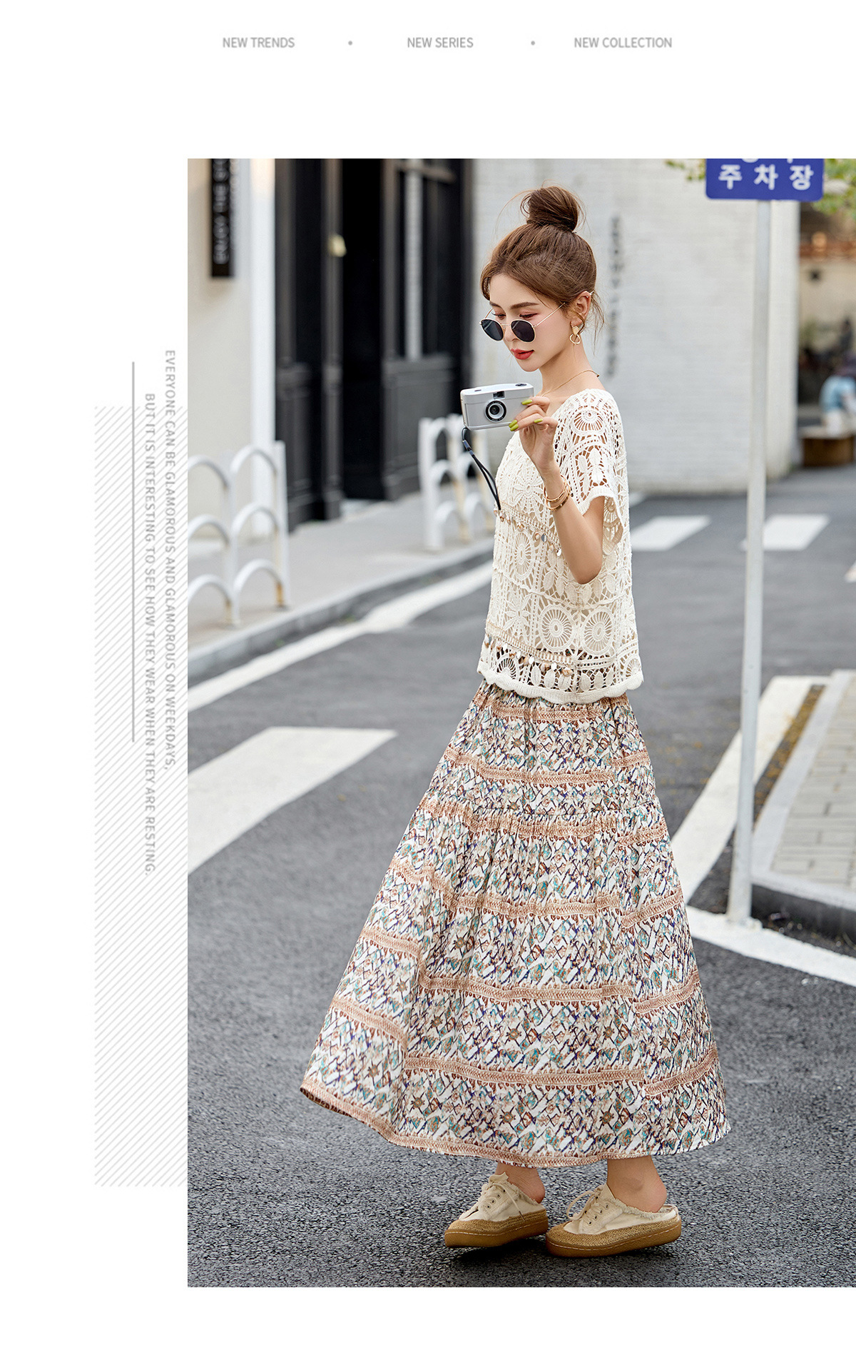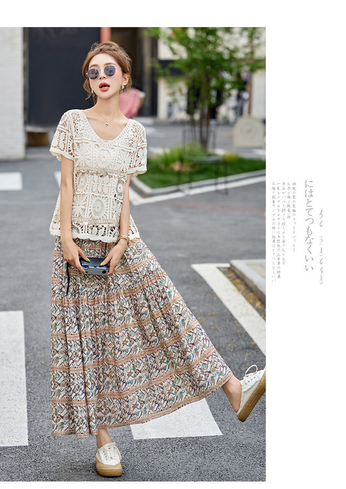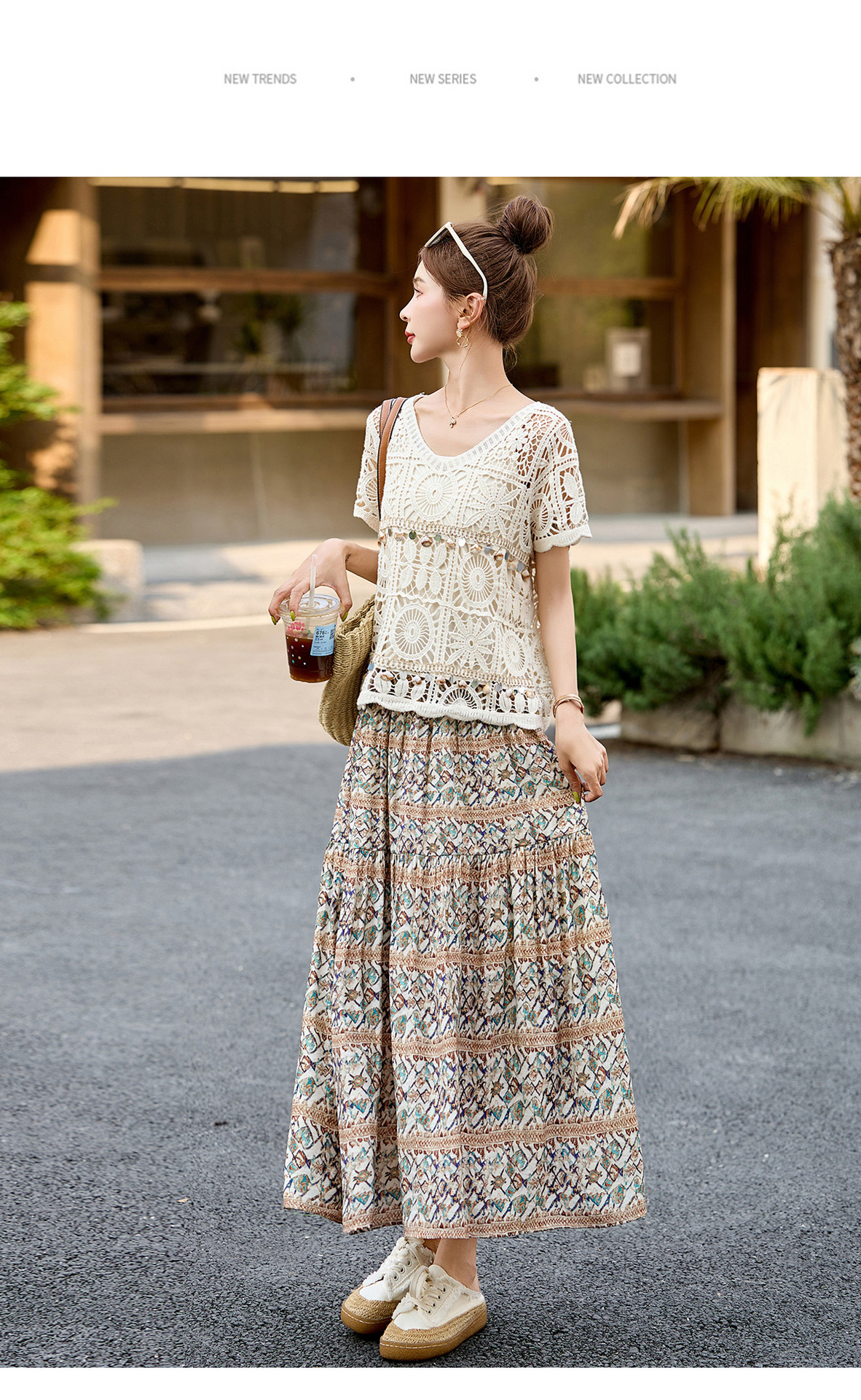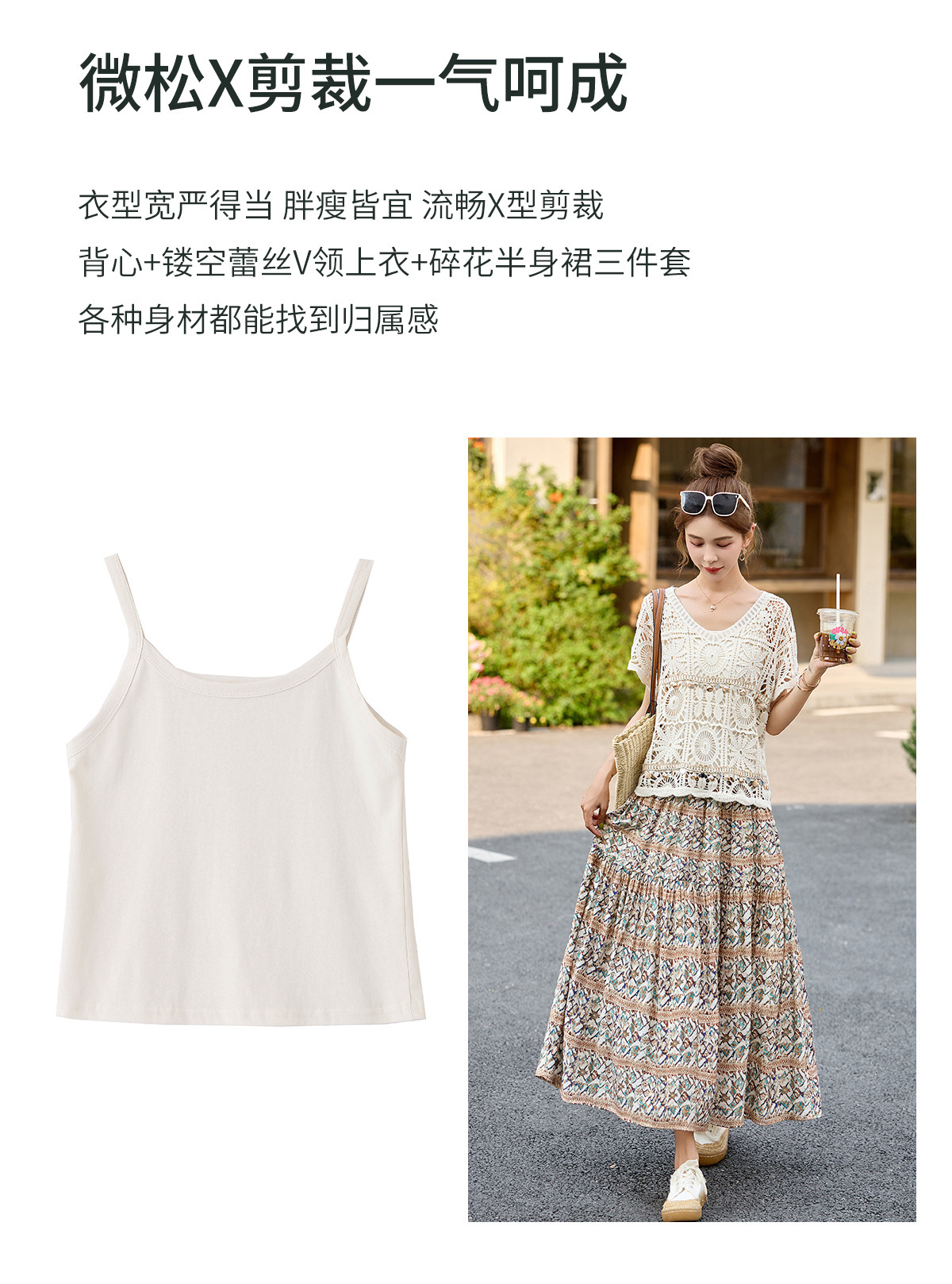 气质蕾丝镂空复古钉珠圆领波西米亚碎花裙三件套HANYUSHE2529