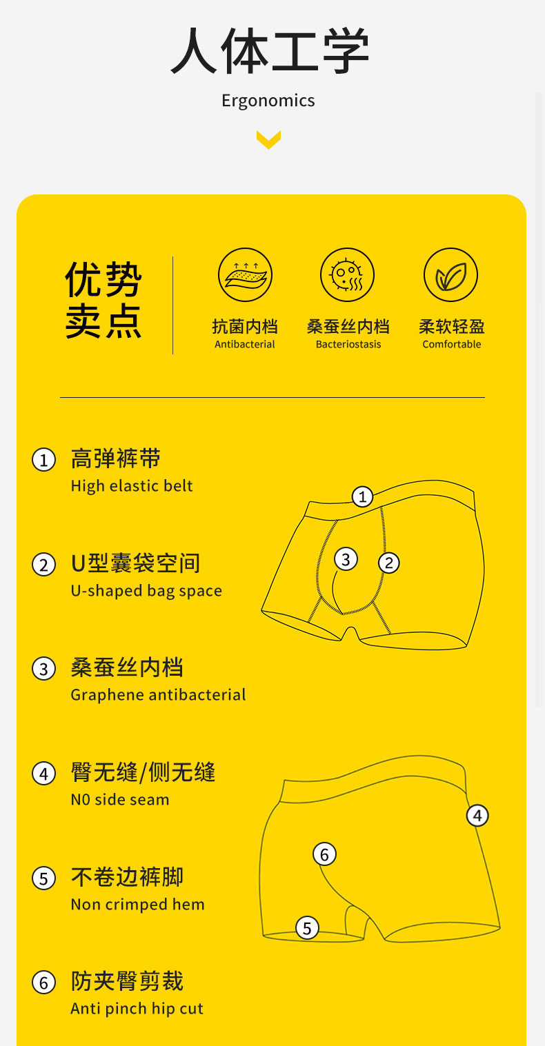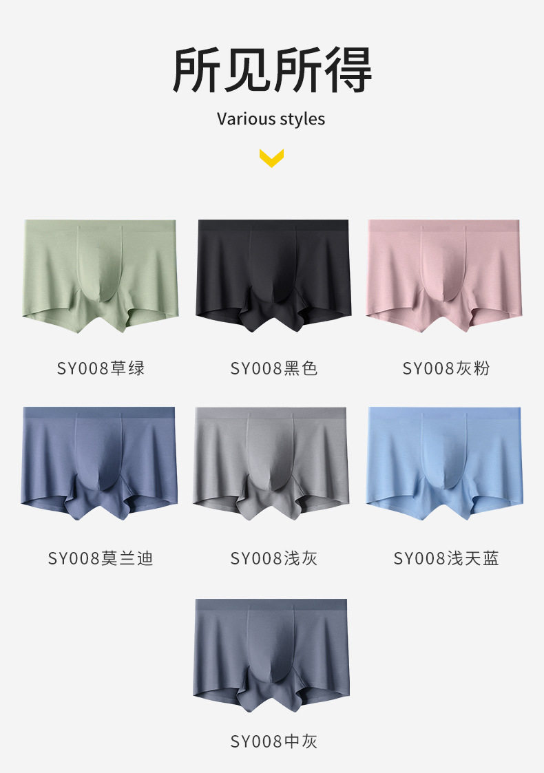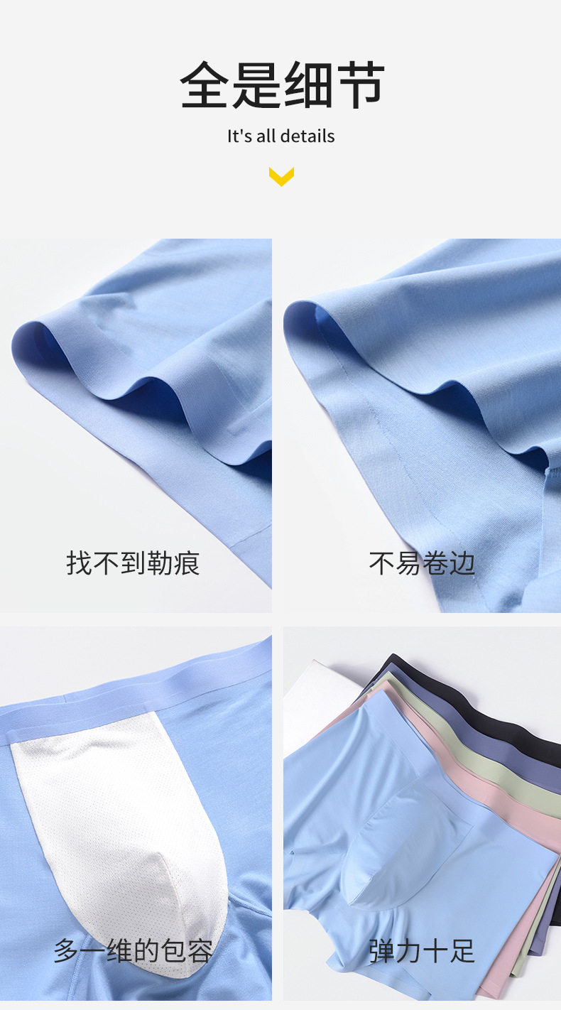 XN-SY008 【1条】新款80S兰精莫代尔无痕男士内裤 纯色透气中腰男士平角裤