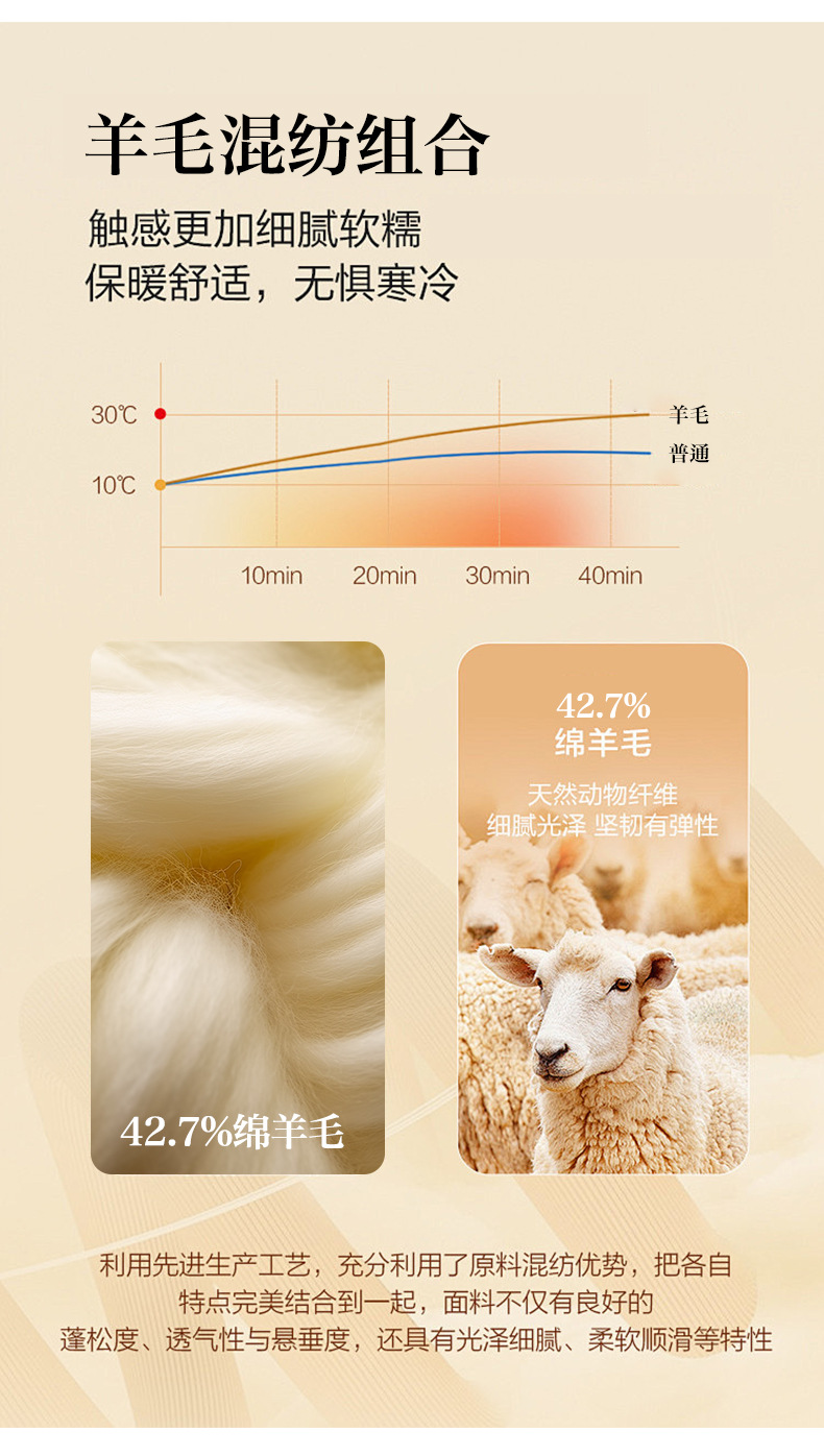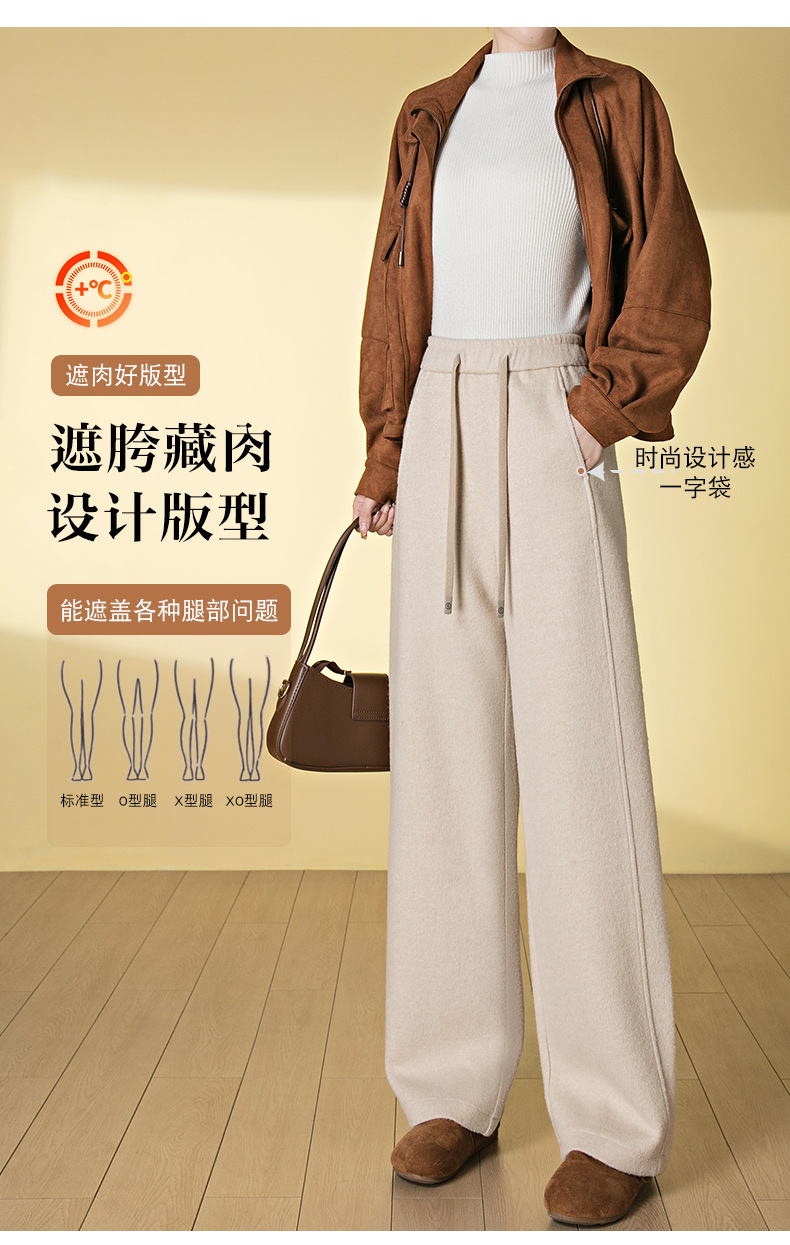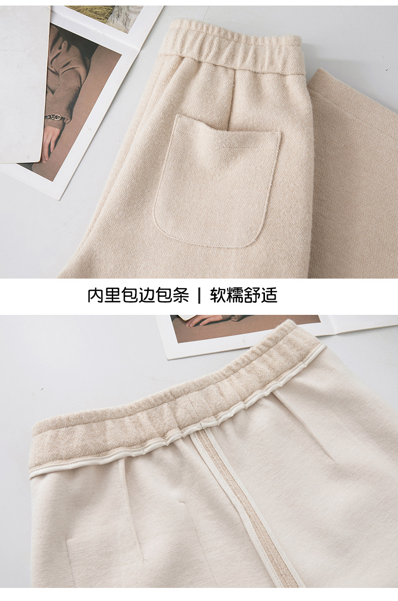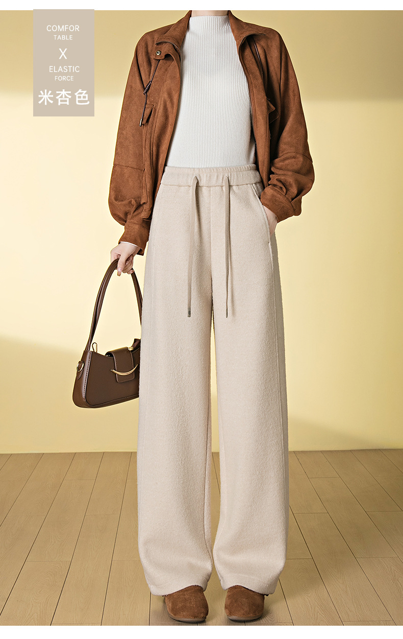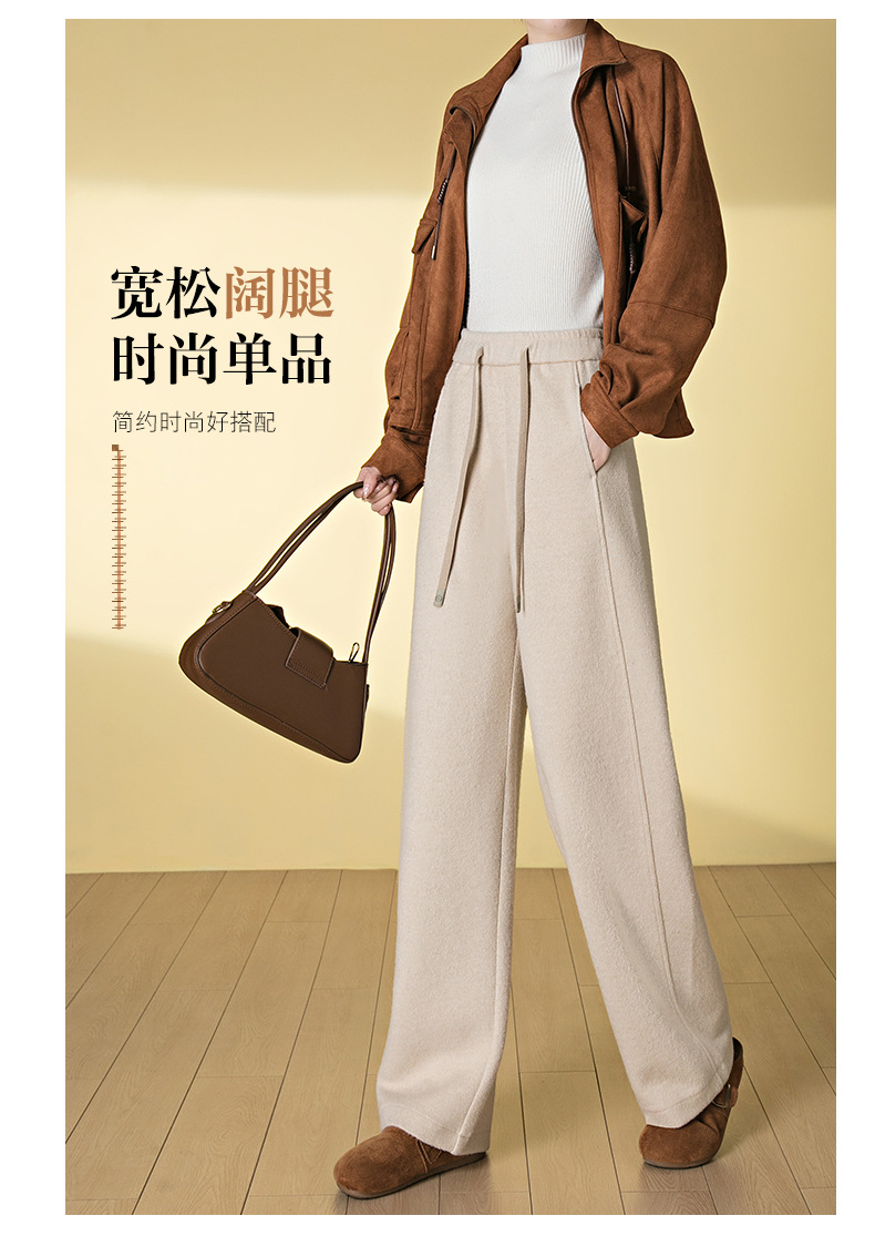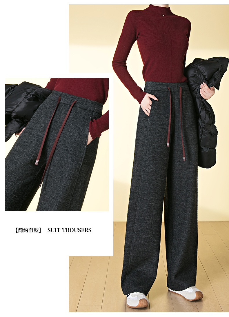 HSS 3088绵羊毛阔腿裤高腰宽松毛呢裤直筒加厚糯米裤