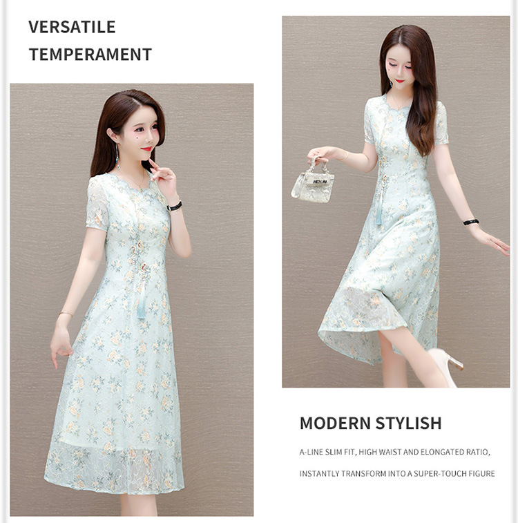 QYM QP2438-2-Y复古连衣裙刺绣花裙 商品图3