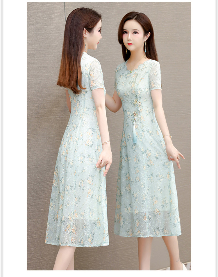 QYM QP2438-2-Y复古连衣裙刺绣花裙 商品图1