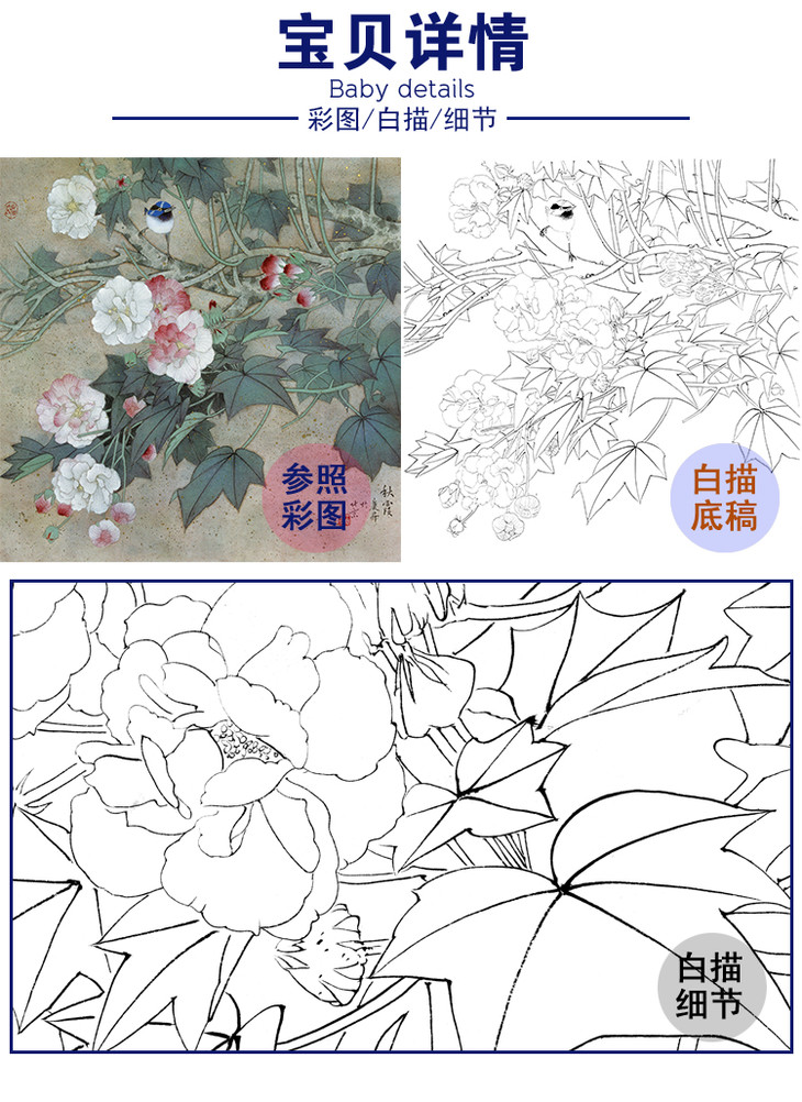 工笔花鸟白描底稿-王庆升《秋霞》斗方小品册页-多种白描尺寸可选-QB11