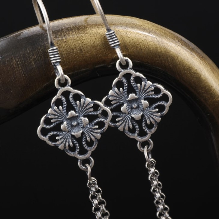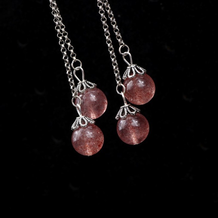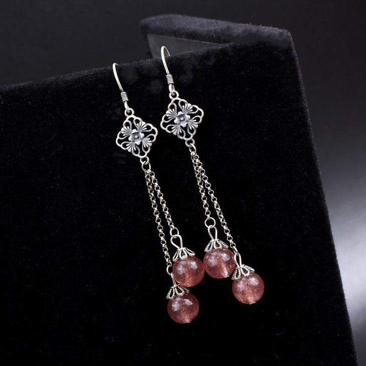 NMZ-80971 925银饰耳环复古民族风长款耳线天然草莓晶耳坠耳饰礼物