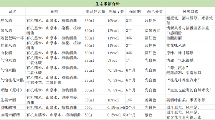 生态米酒礼盒|给有情义的人 内含: 375ml 黑米酒*1 375ml 醇米酒*1 375ml 风味米酒*1 375ml 桂花米酒*1 生产者:许学超 产地:安徽省黄山市黟县碧阳镇南屏村 生产许可证:SC11534102305187 种植方式:自产有机种植糯米,种植过程完全不使用农药化肥除草剂,零化肥、零农药、零除草剂; 加工方式:自然发酵;非遗酿酒师三十年手工艺;柴火木甑蒸米;陶坛陈养;不添加任何化学添加剂,防腐剂。 储存方式:阴凉干燥处,避光保存。 ps: 1,青瓶底沉淀物为大米原浆,属于正常现象,可以放心饮用; 2,过量饮酒,有害健康,驾驶前请谨慎饮用,孕妇与儿童不宜饮酒。 发货方式:单独包邮,产地直发京东;早8点前下单的食材,当日发货;超过早上八点的时间,次日发货,不参加广东省内满300包邮。受天气或库存等原因影响可能偶有耽误,急单请发货前咨询客服,不接受没有提前沟通的拒收。 |