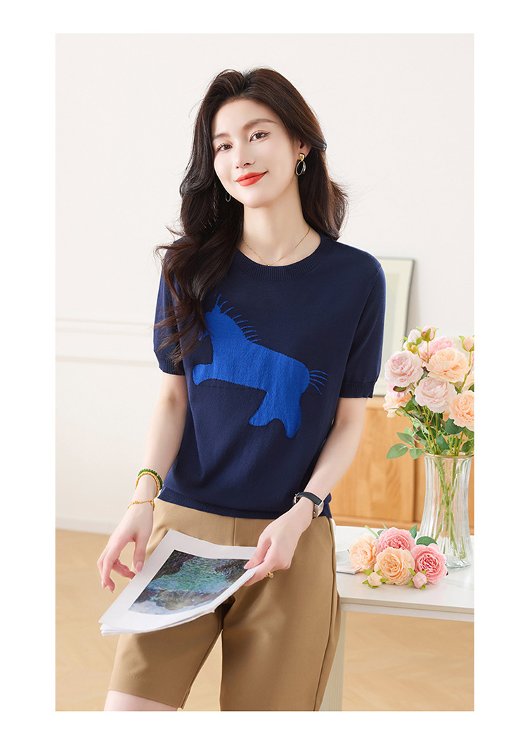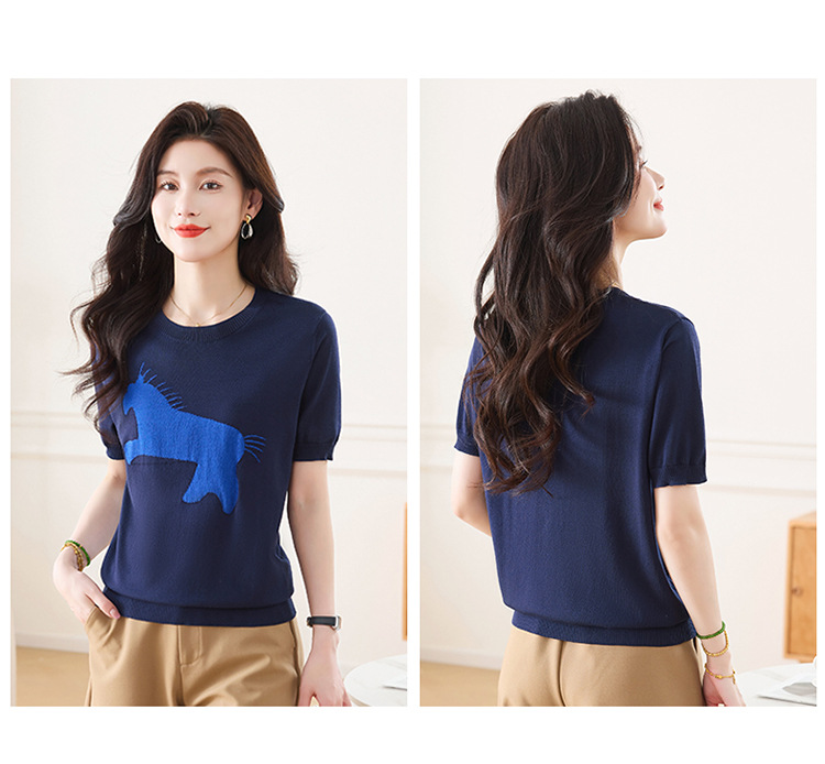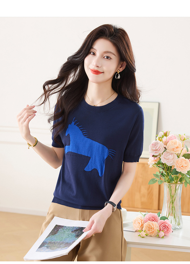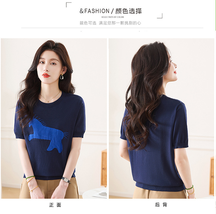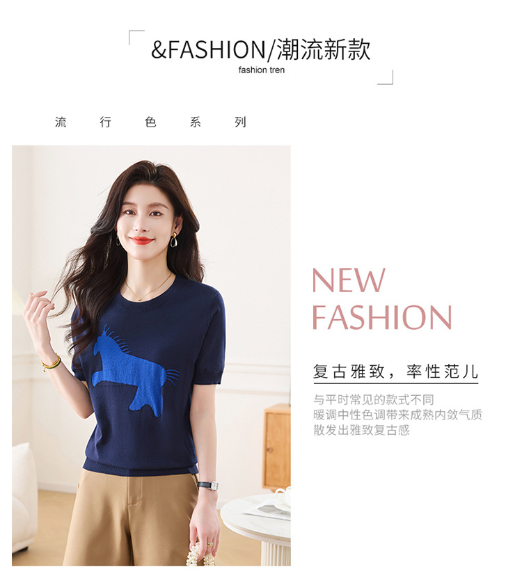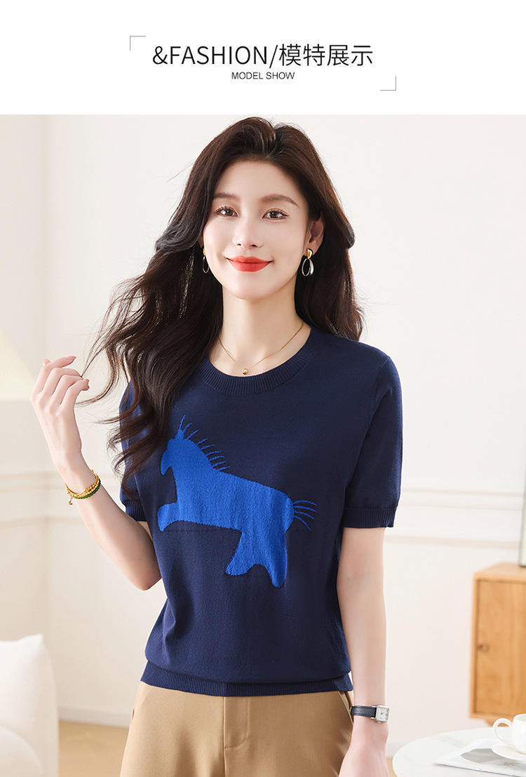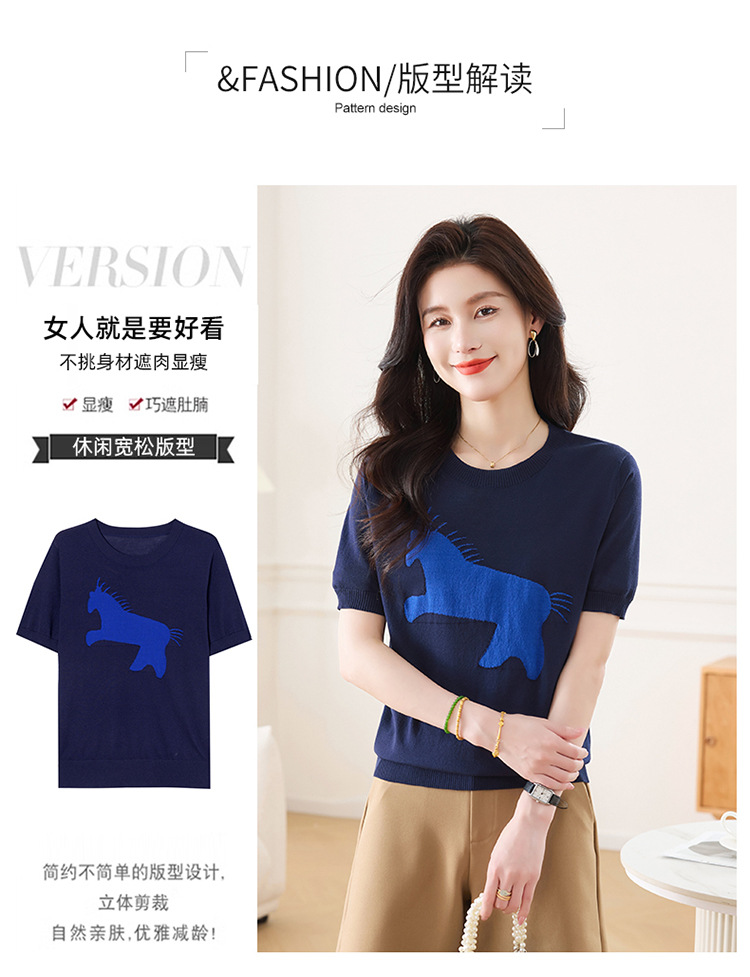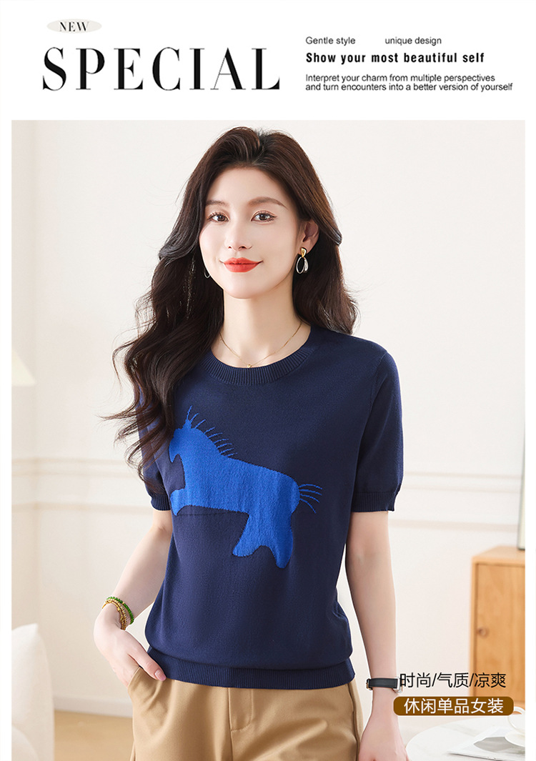 CC-66-2522时髦洋气女士小衫2025新款夏季冰丝短袖上衣宽松短款百搭针织t恤