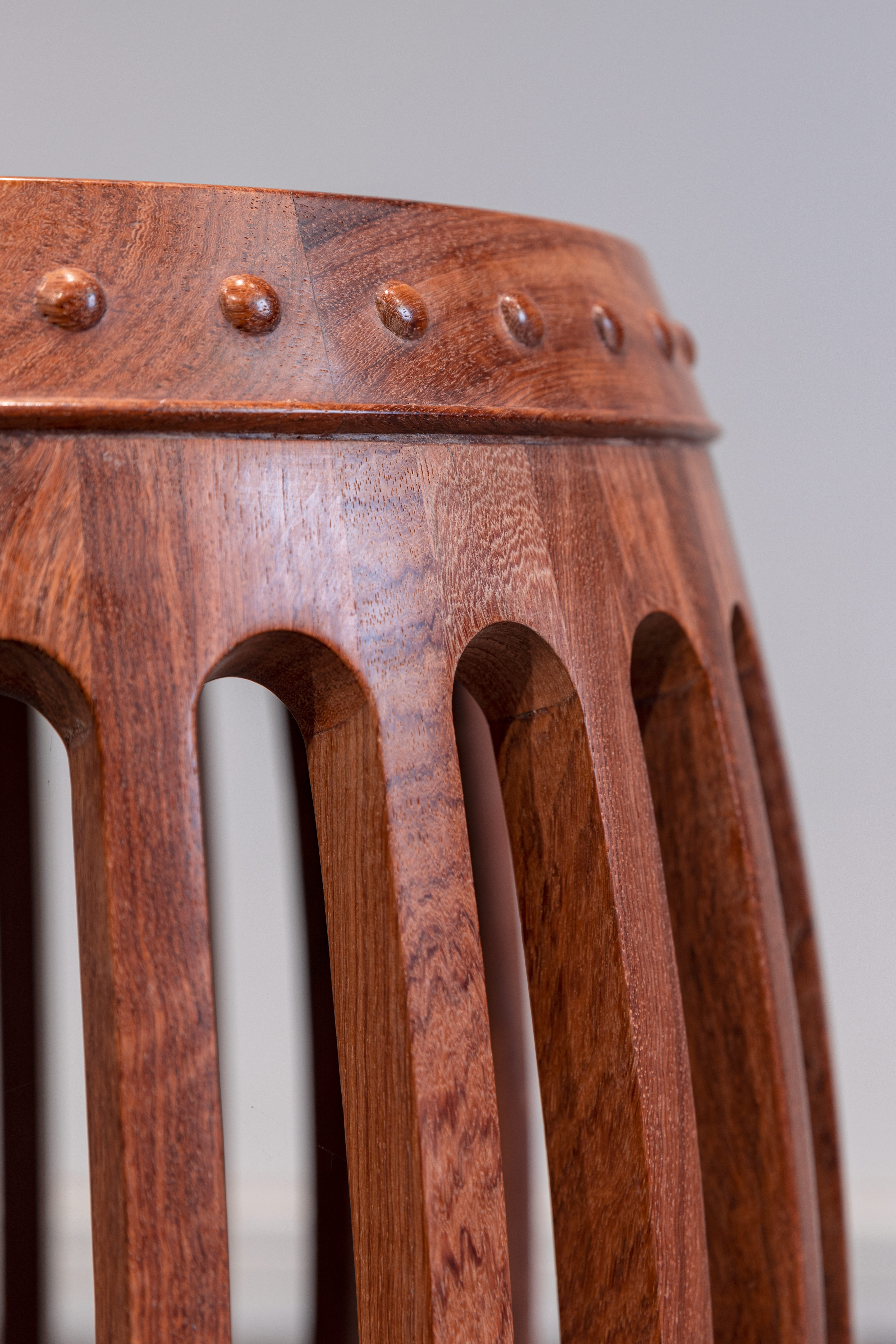此款直棂式鼓凳,原型为北京硬木家具厂旧藏,收录于王世襄先生的《明式家具研究》和《明式家具珍赏》二书。