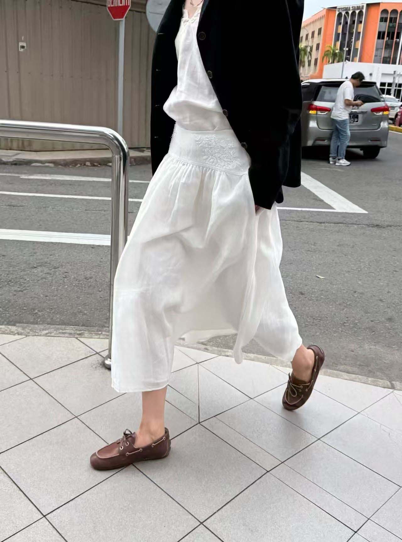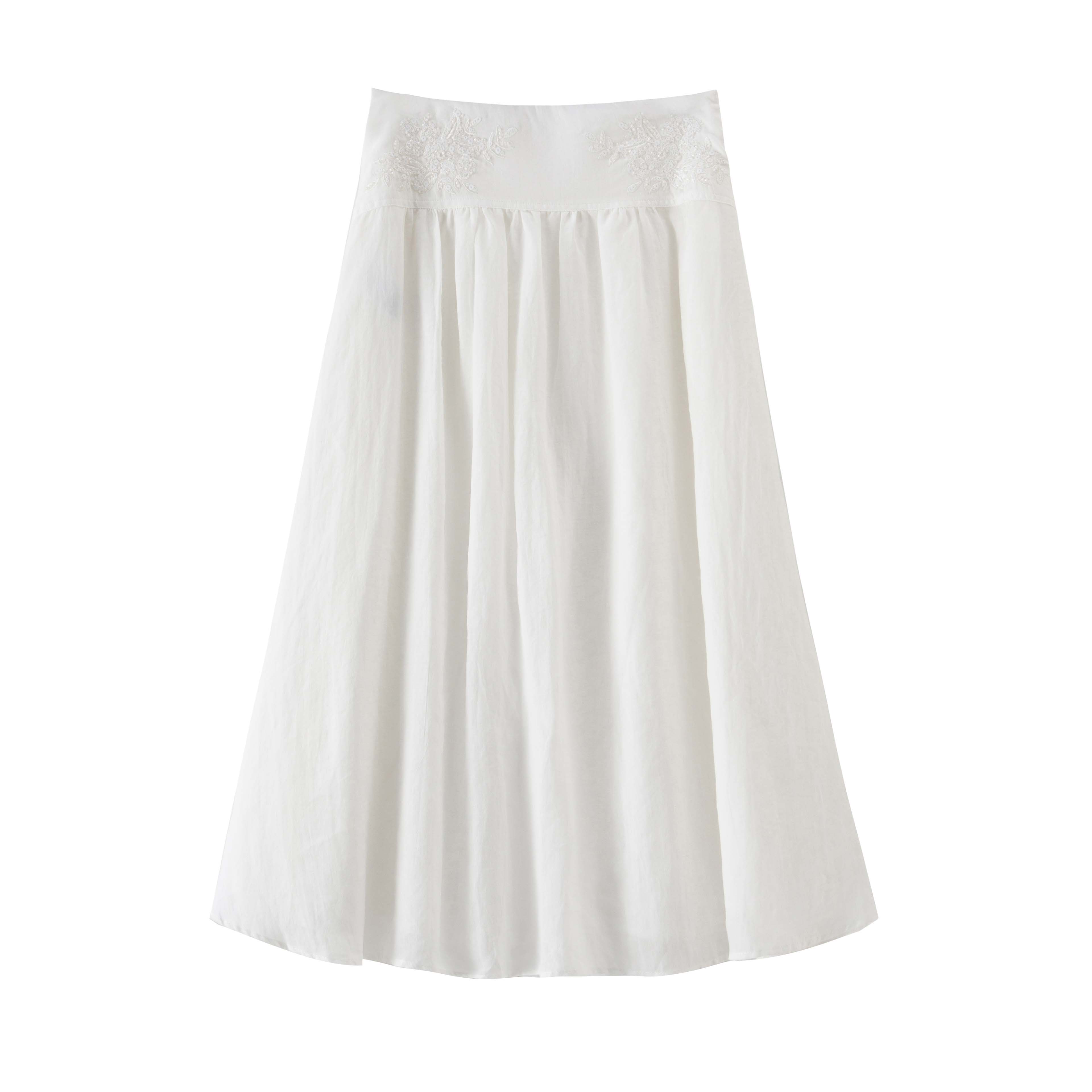 「K」洛诗琳35941气质刺绣苎麻半身裙2025夏季高腰显瘦A字裙10342