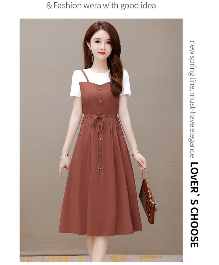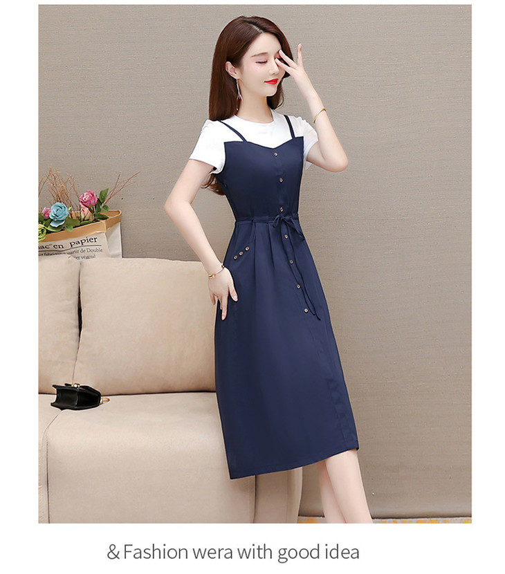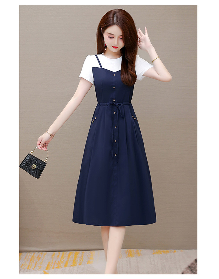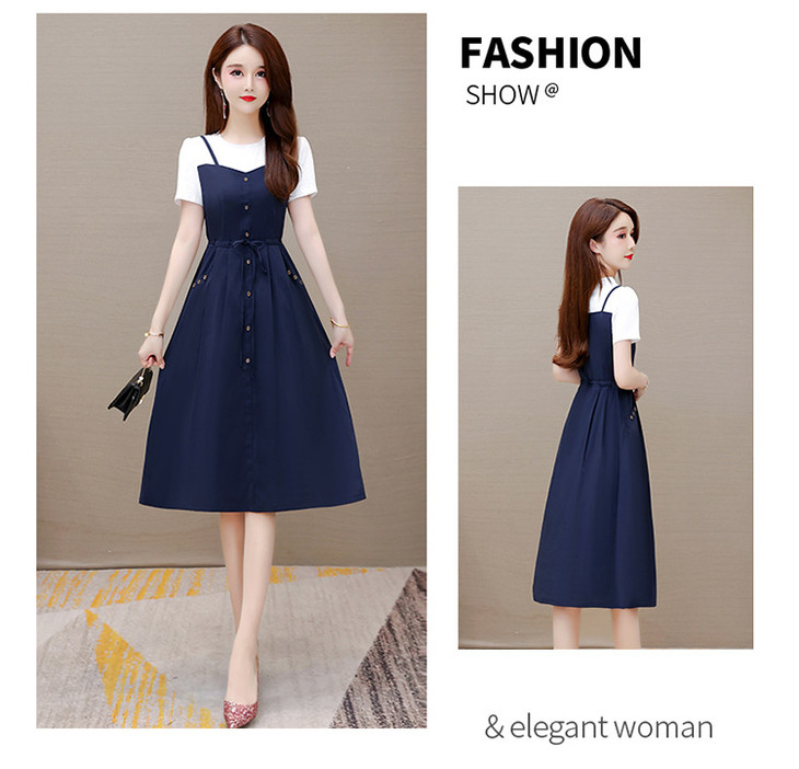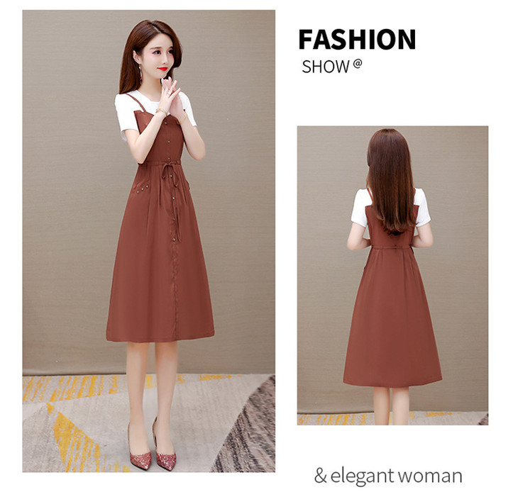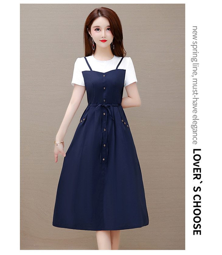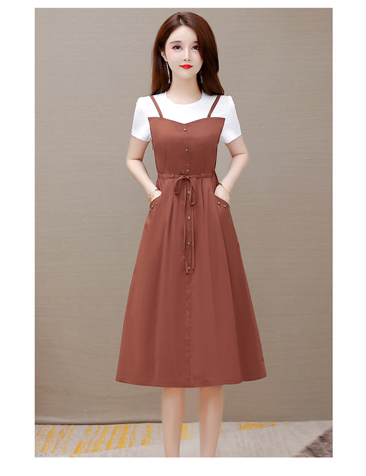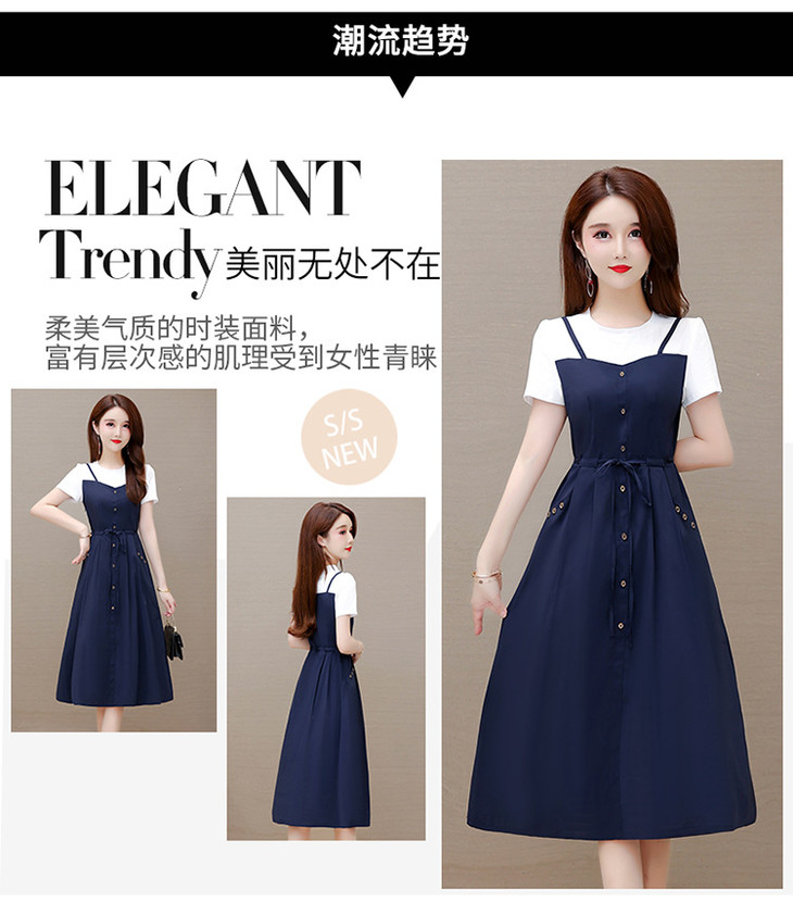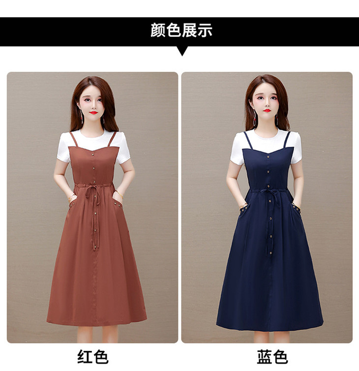 QYM-ZM-BLQ655-Y新款时尚优雅气质系带收腰中长款假两件连衣裙