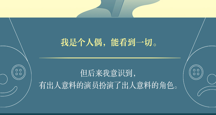 ★我是个人偶,既不能动也说不了话,但我能看到一切。我一直以为这意味着我能掌握真相,直到后来我才意识到,世界远比我想象的复杂。如果把我看到的一切当作戏剧的*幕,还会有第二幕、第三幕接连上演,看来是有出人意料的演员扮演了出人意料的角色。