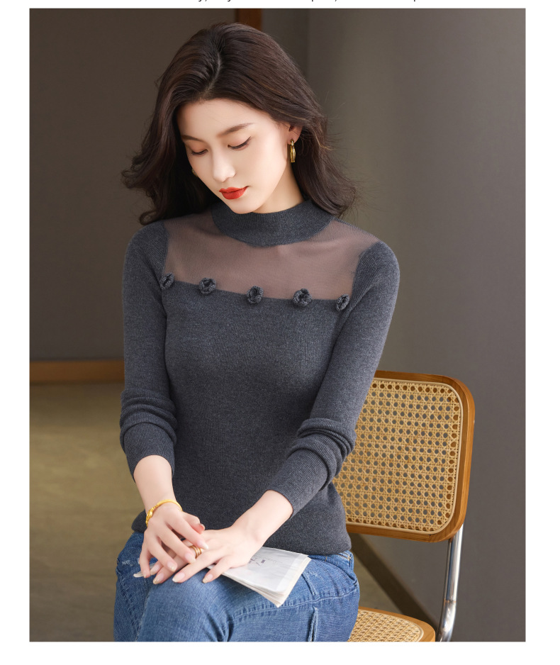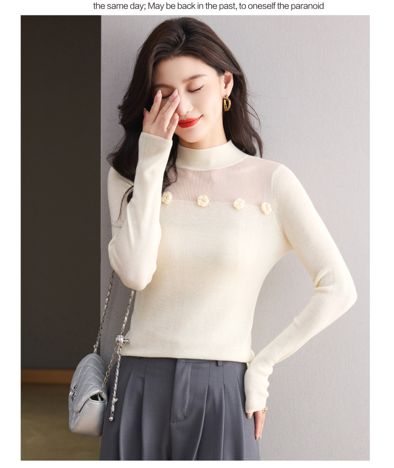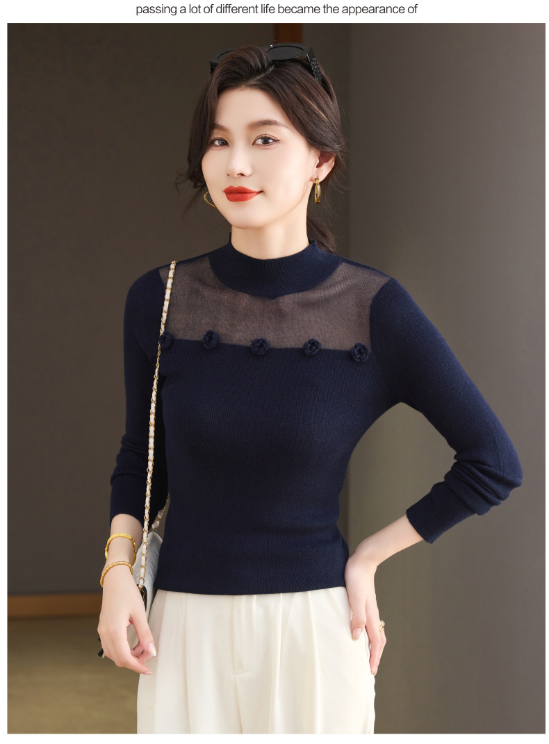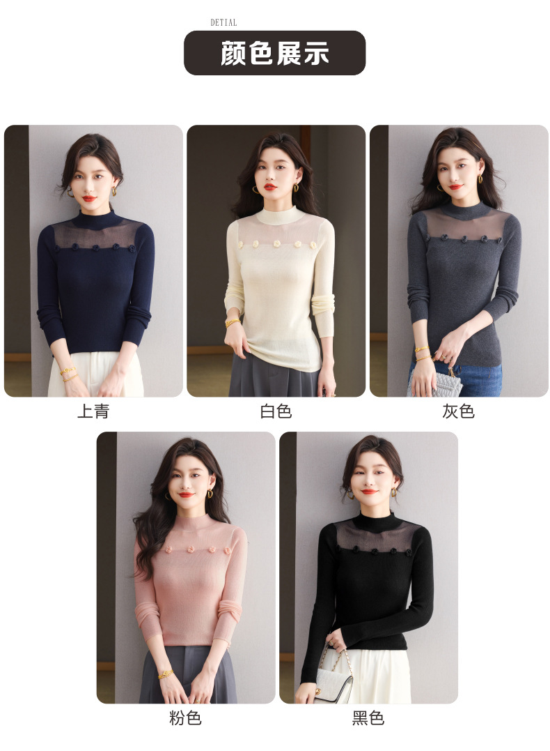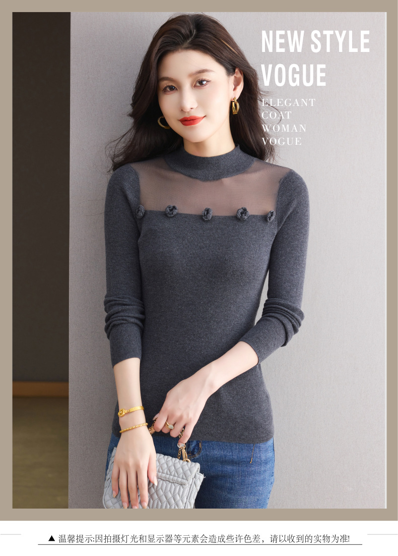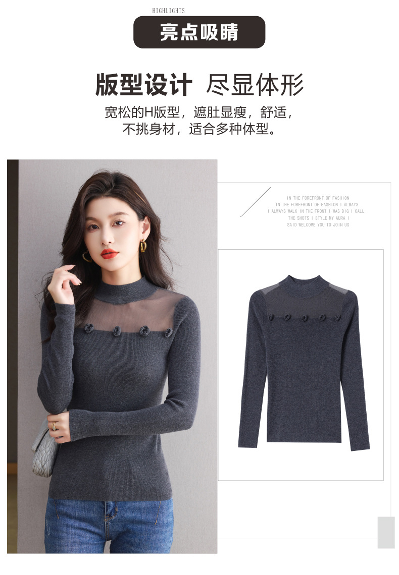 「自」全新升级【铂金会员183/天猫249/差价66】(02034)洛诗琳高级感半高领打底衫2025秋季修身设计感拼接针织上衣
