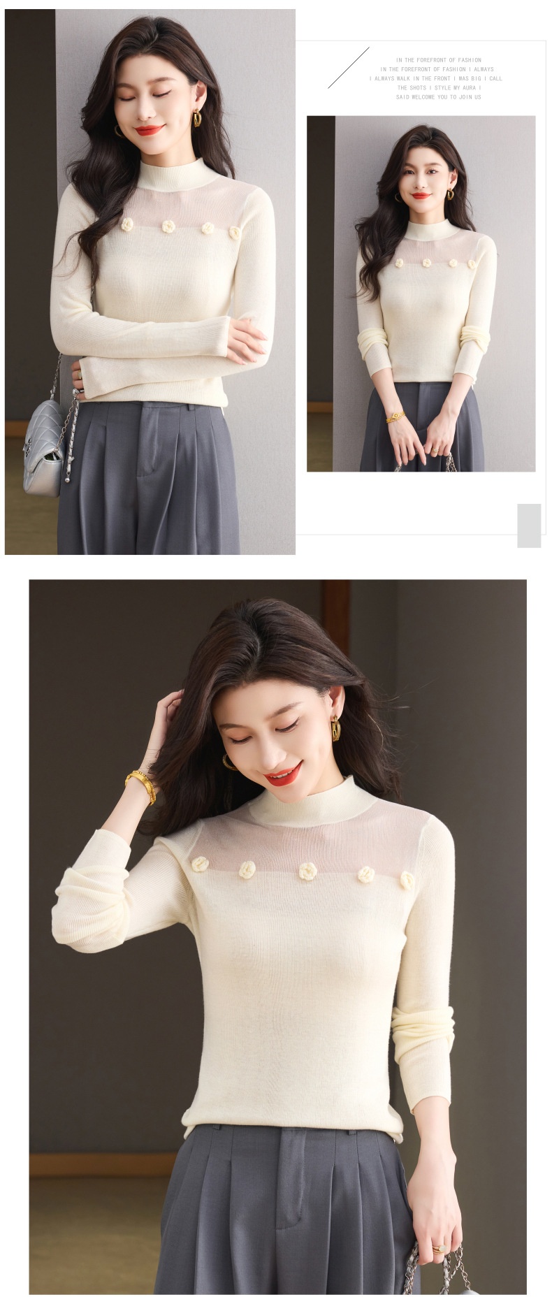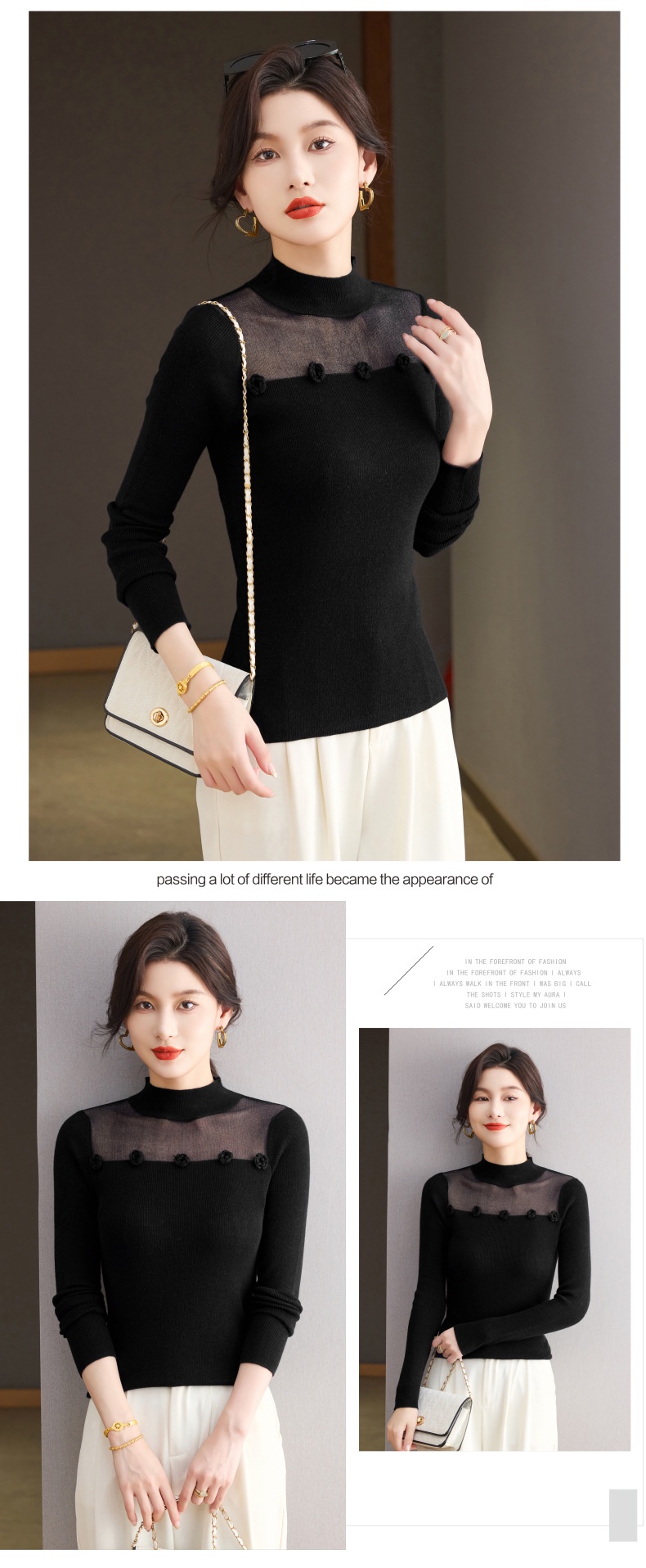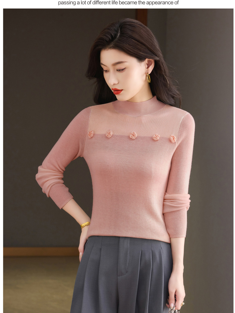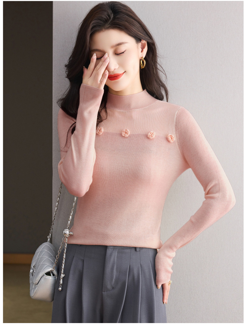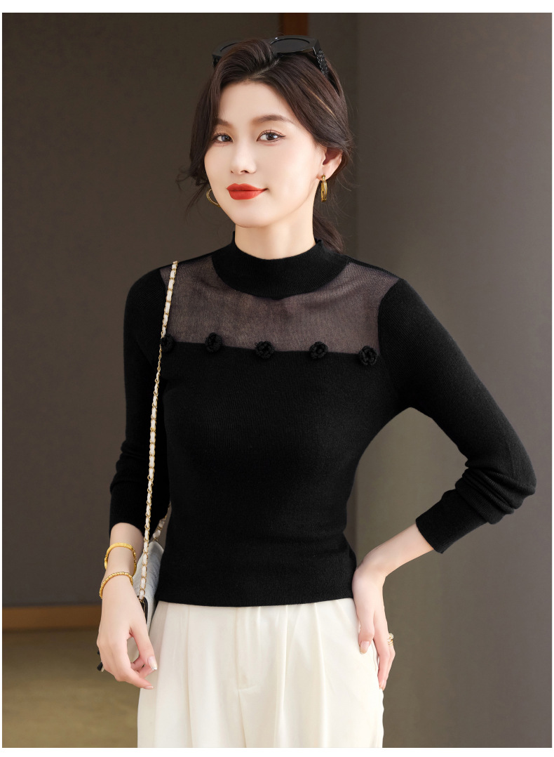 「自」全新升级【铂金会员183/天猫249/差价66】(02034)洛诗琳高级感半高领打底衫2025秋季修身设计感拼接针织上衣