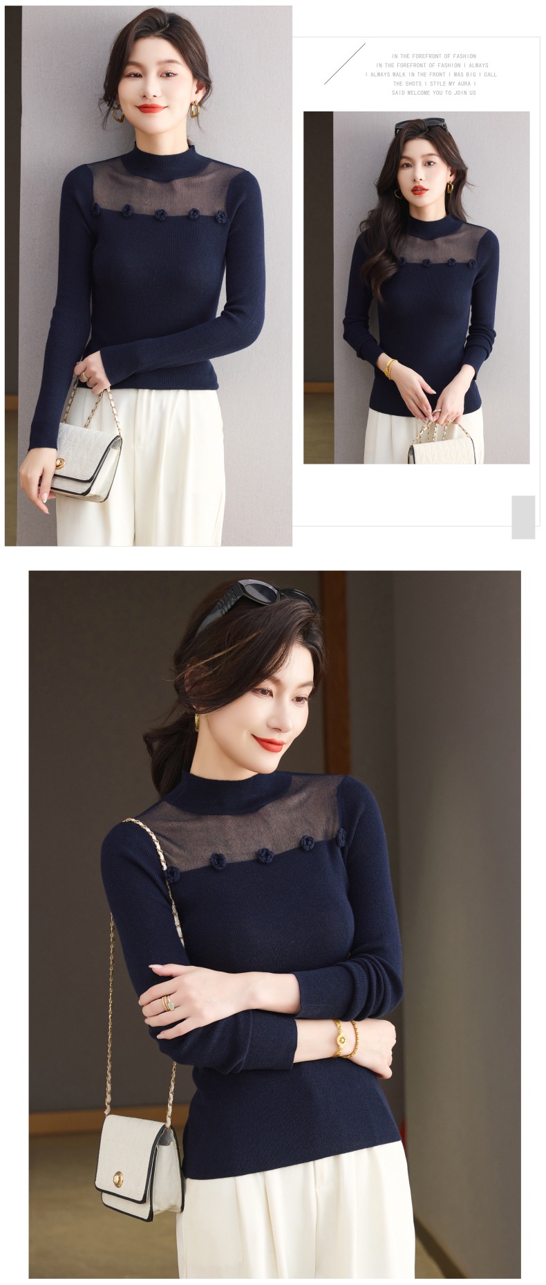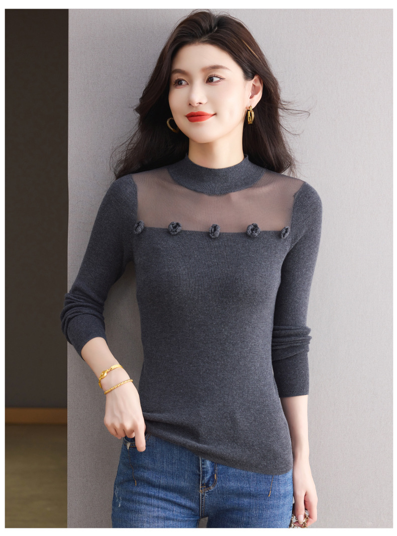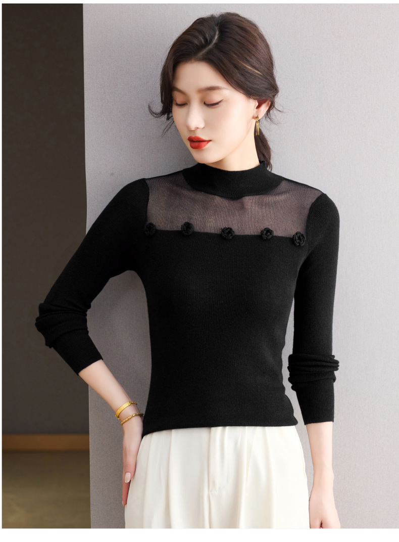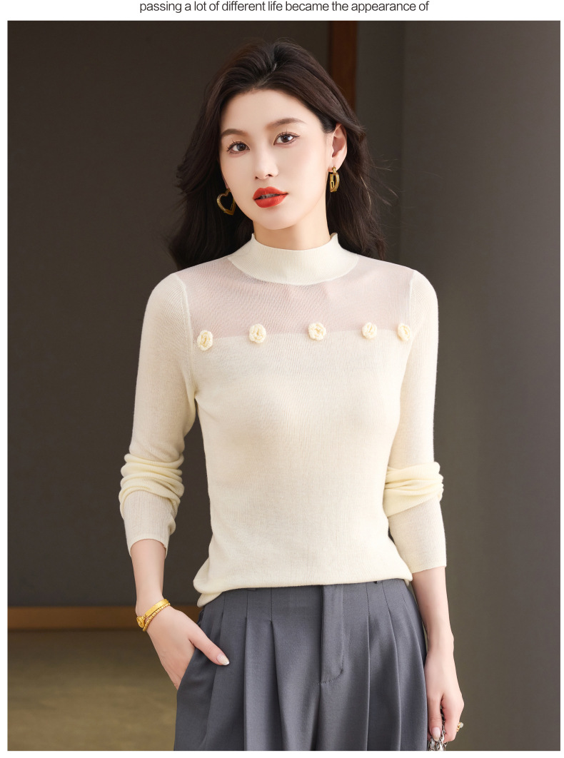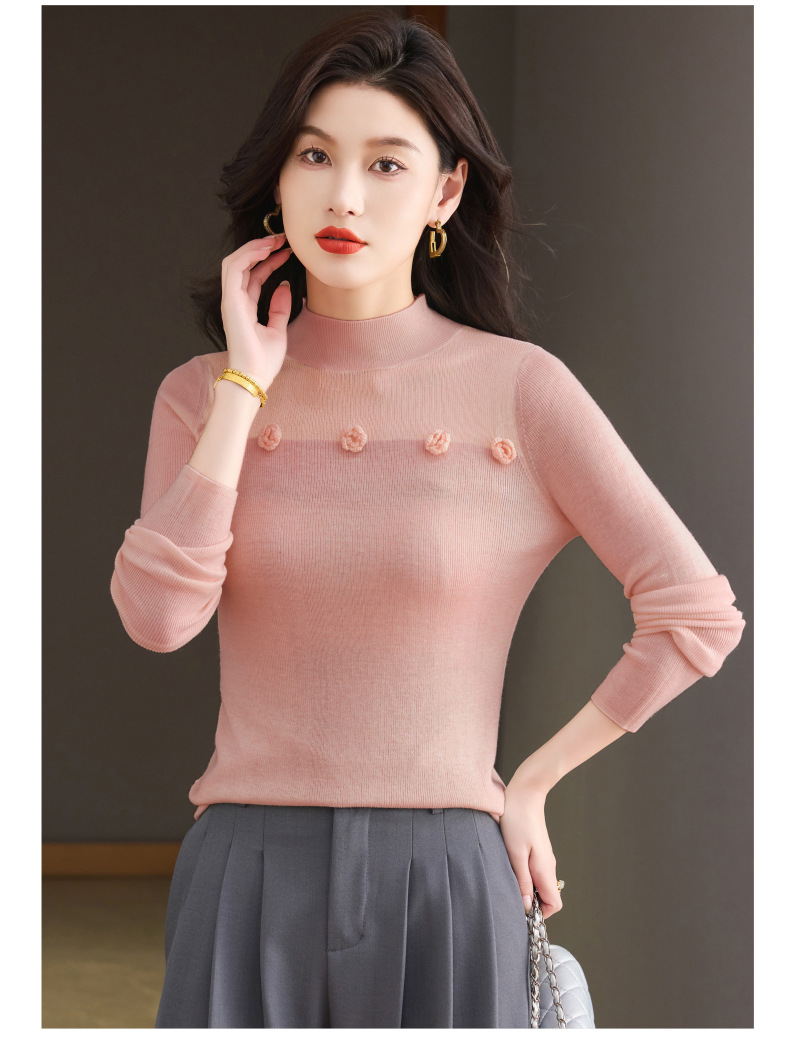 「自」全新升级【铂金会员183/天猫249/差价66】(02034)洛诗琳高级感半高领打底衫2025秋季修身设计感拼接针织上衣