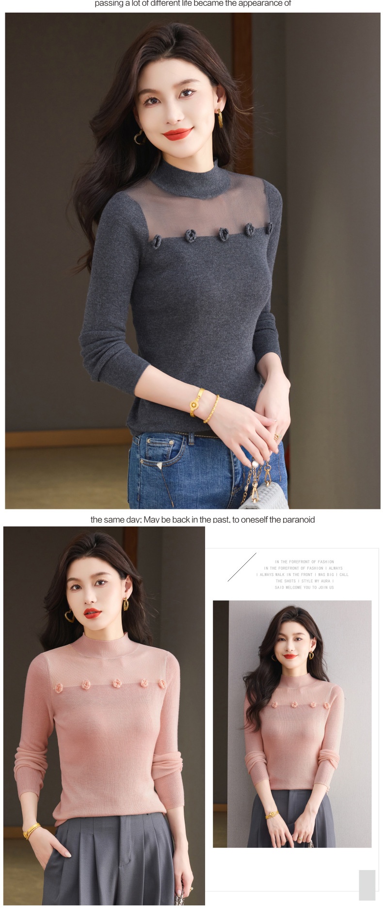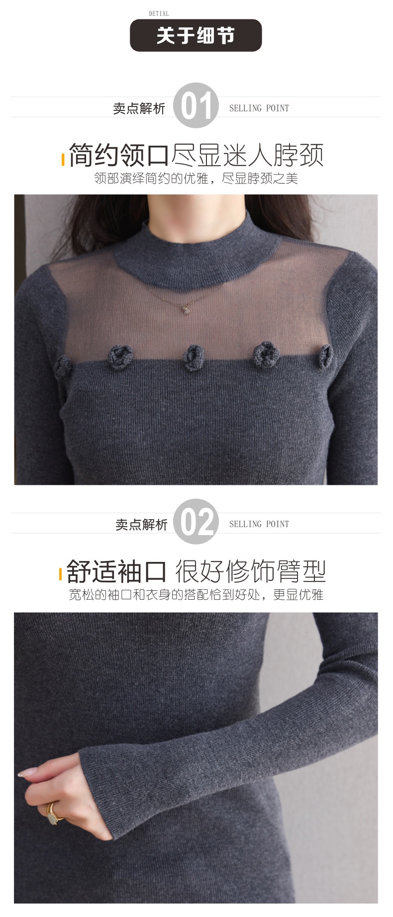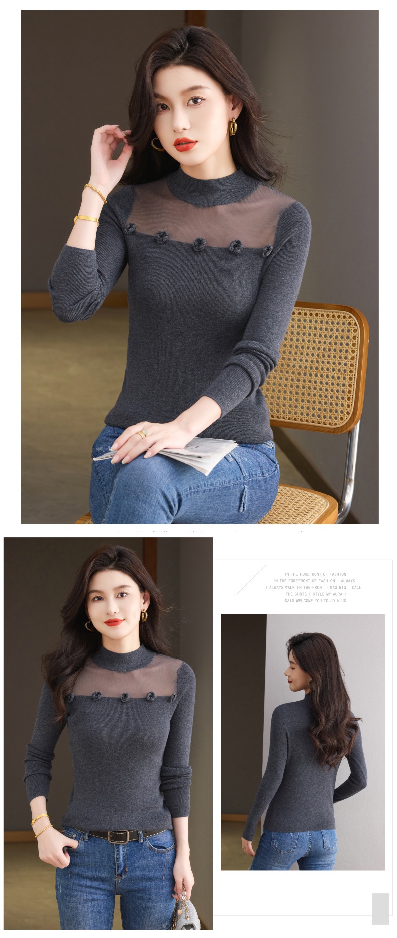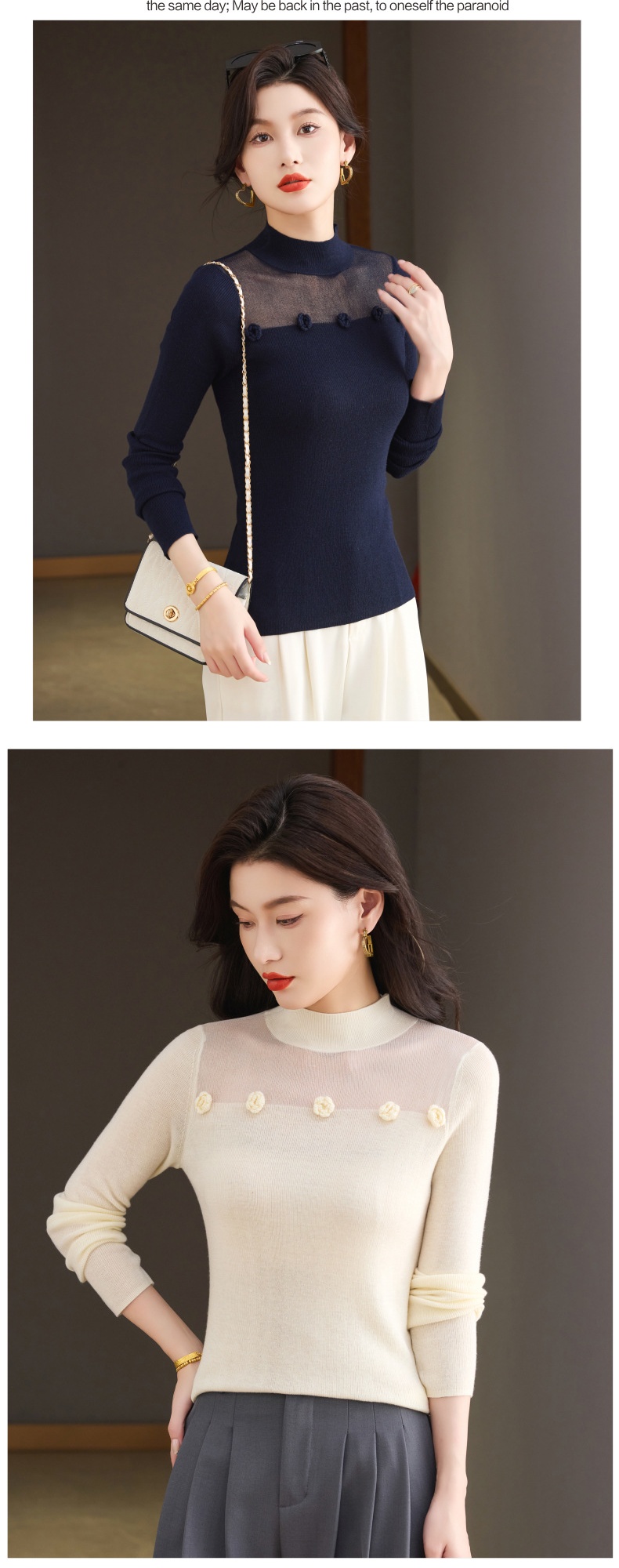 「自」全新升级【铂金会员183/天猫249/差价66】(02034)洛诗琳高级感半高领打底衫2025秋季修身设计感拼接针织上衣
