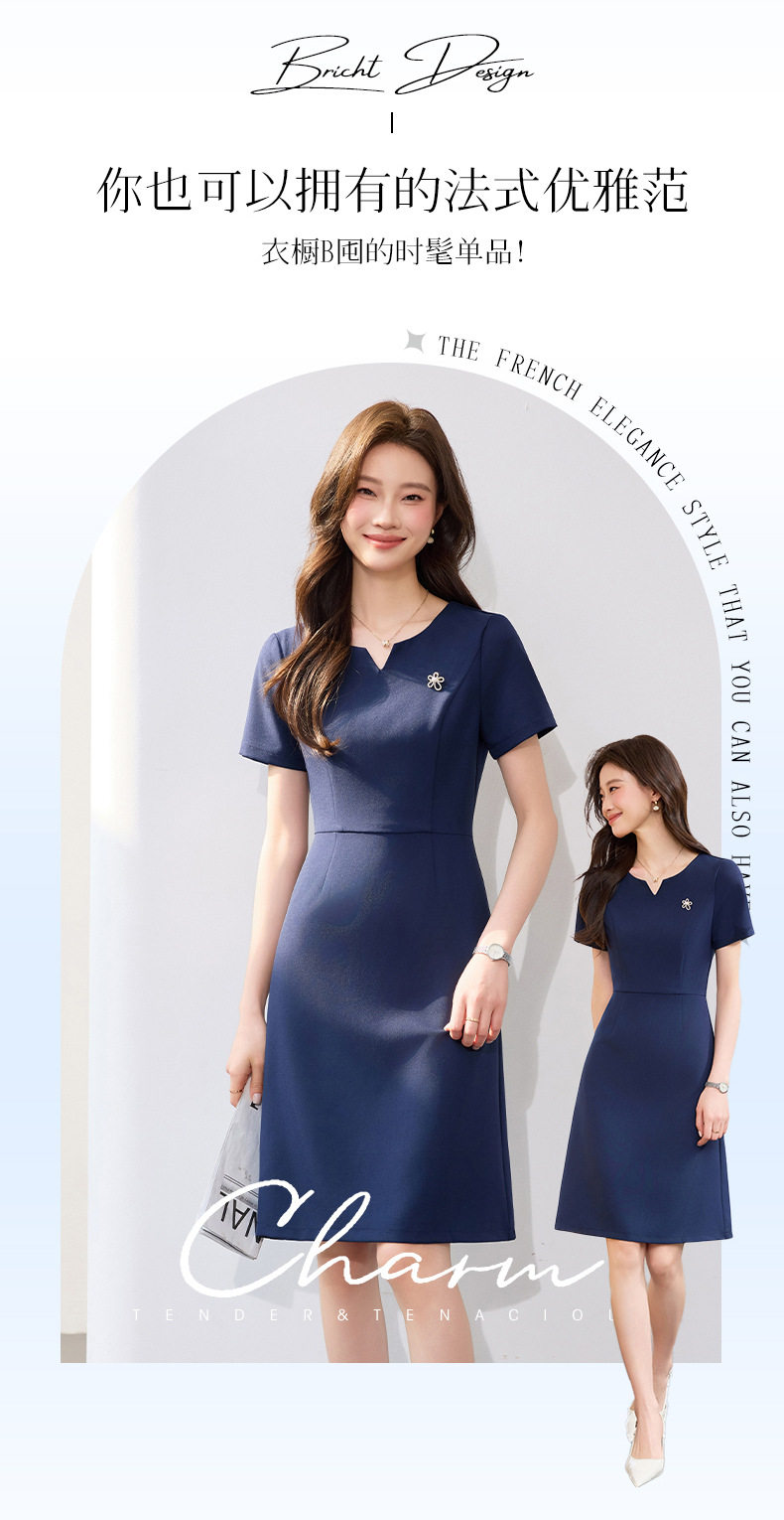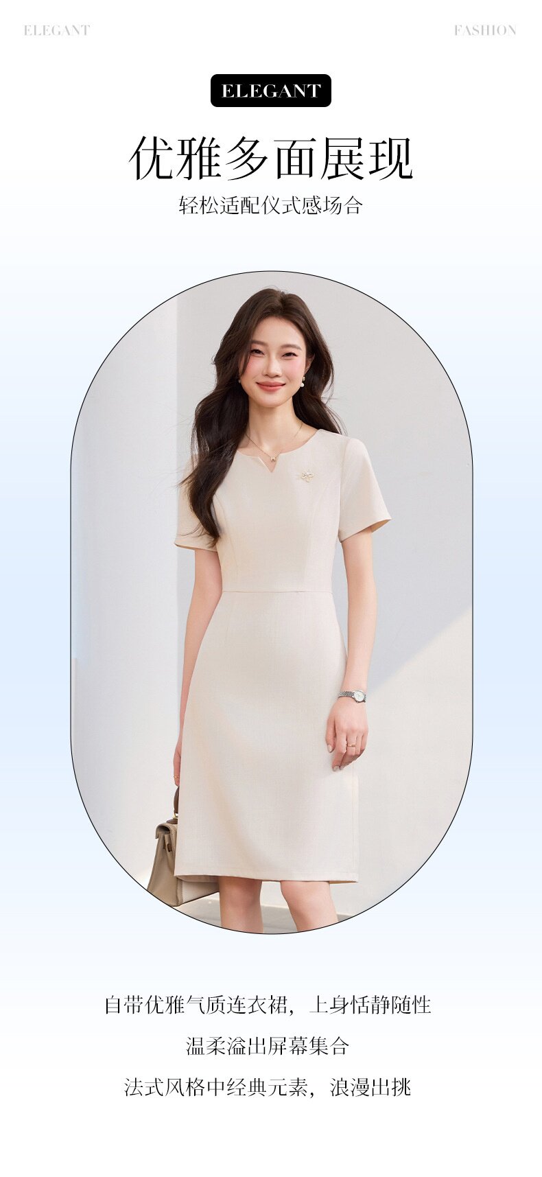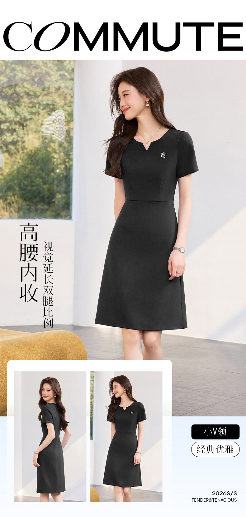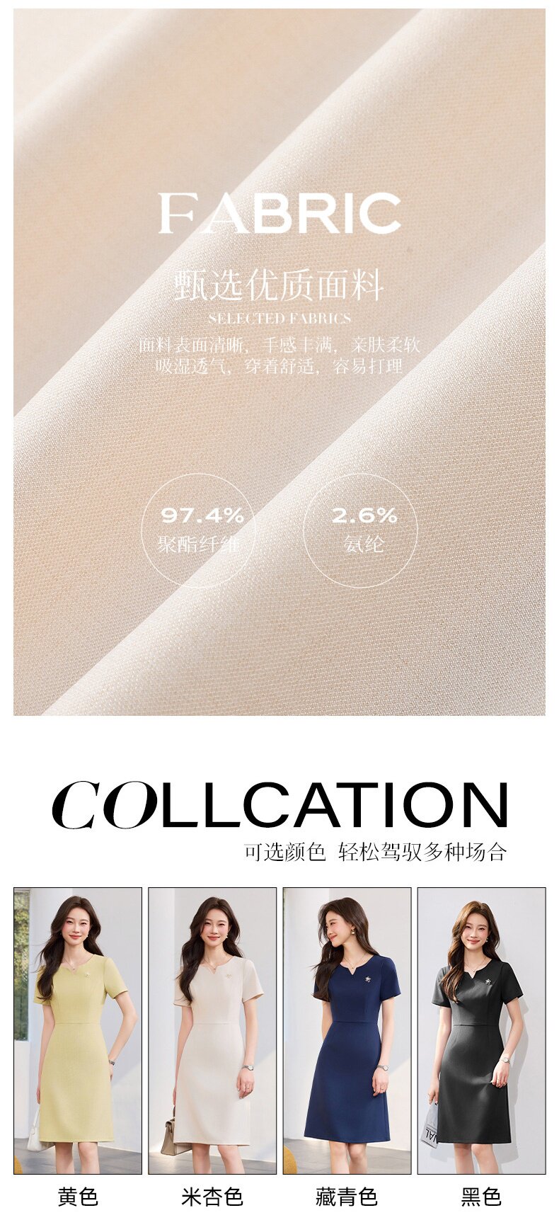 「自」全新升级【铂金会员174/天猫229/差价55】(10953)洛诗琳气质通勤短袖连衣裙女2026新款优雅女人味修身A字裙