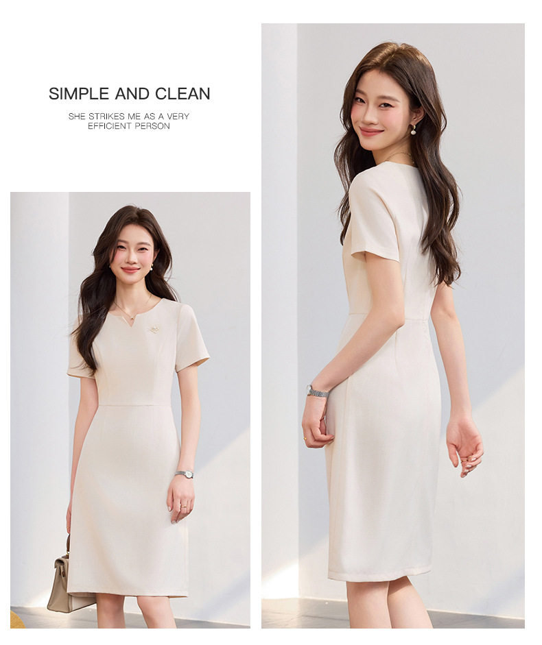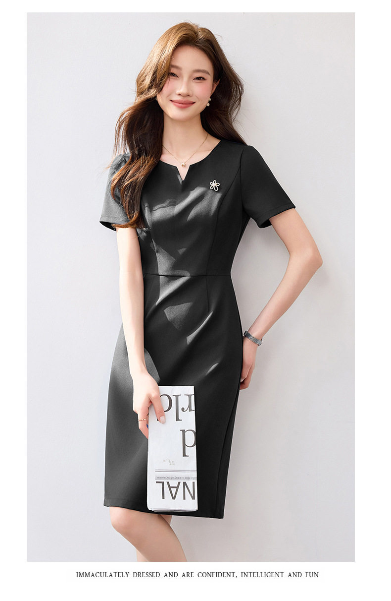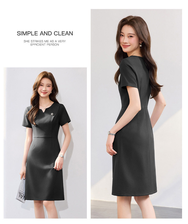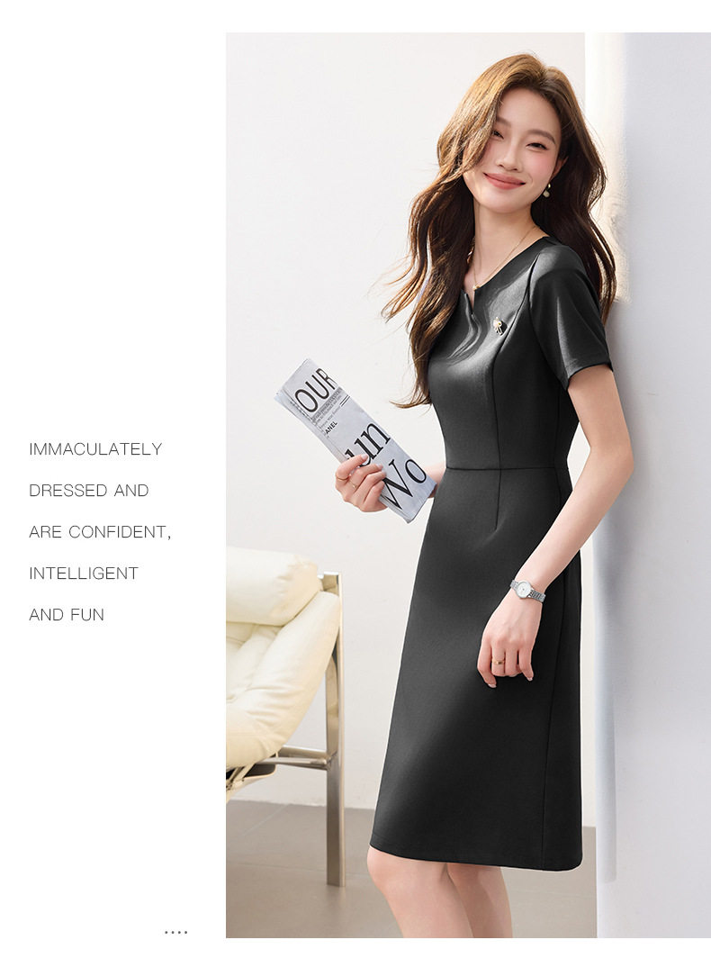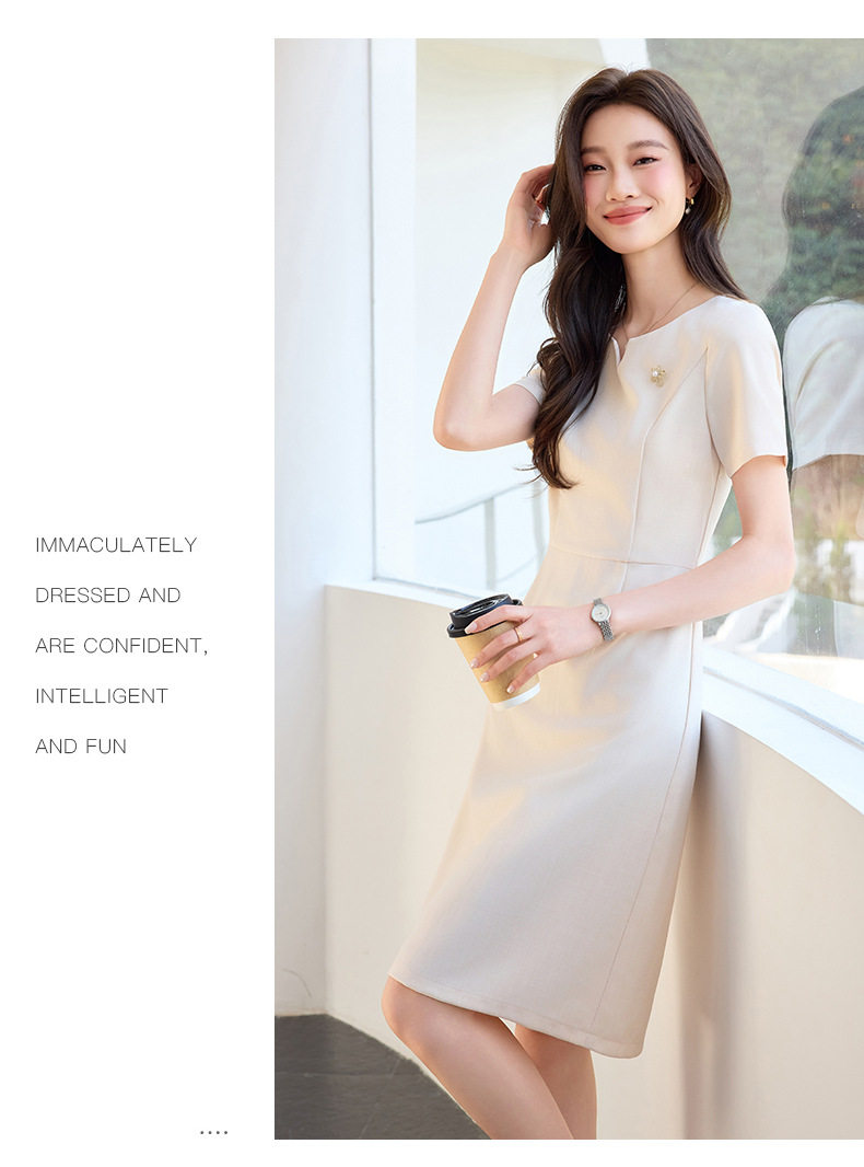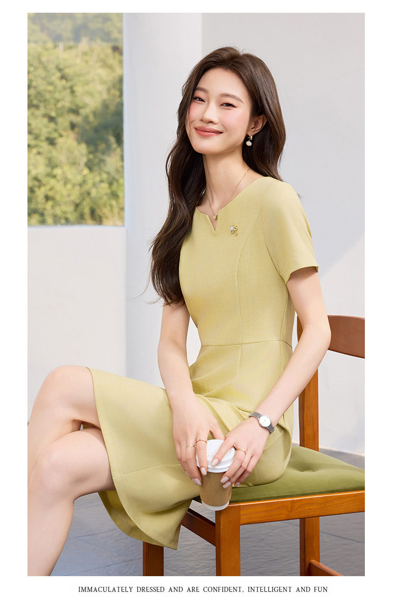 「自」全新升级【铂金会员174/天猫229/差价55】(10953)洛诗琳气质通勤短袖连衣裙女2026新款优雅女人味修身A字裙