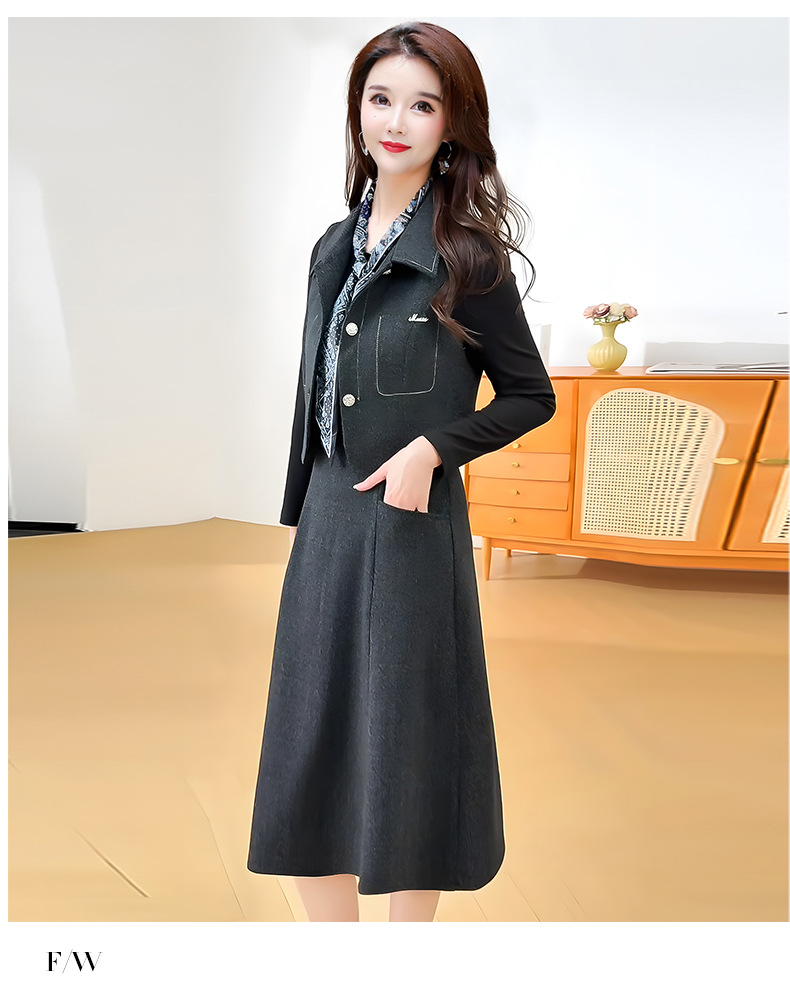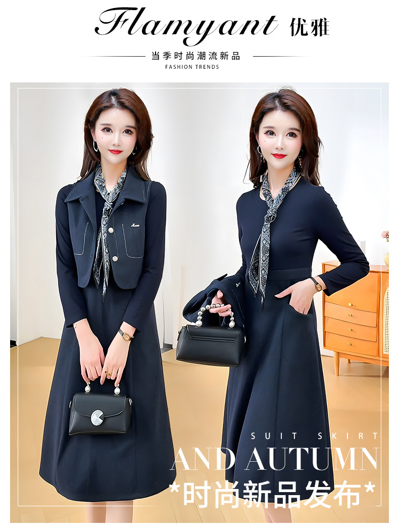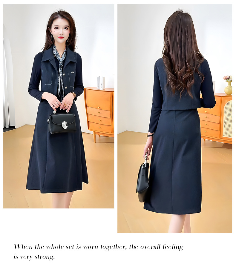 XY25LY9907马甲两件套连衣裙女新款2025年秋季洋气小个子中长款a字裙 商品图2