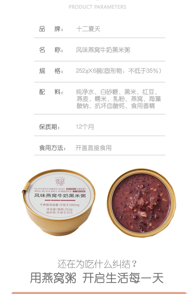 〔上海直发包邮06〕十二夏天牛奶燕窝粥(黑米/燕麦)