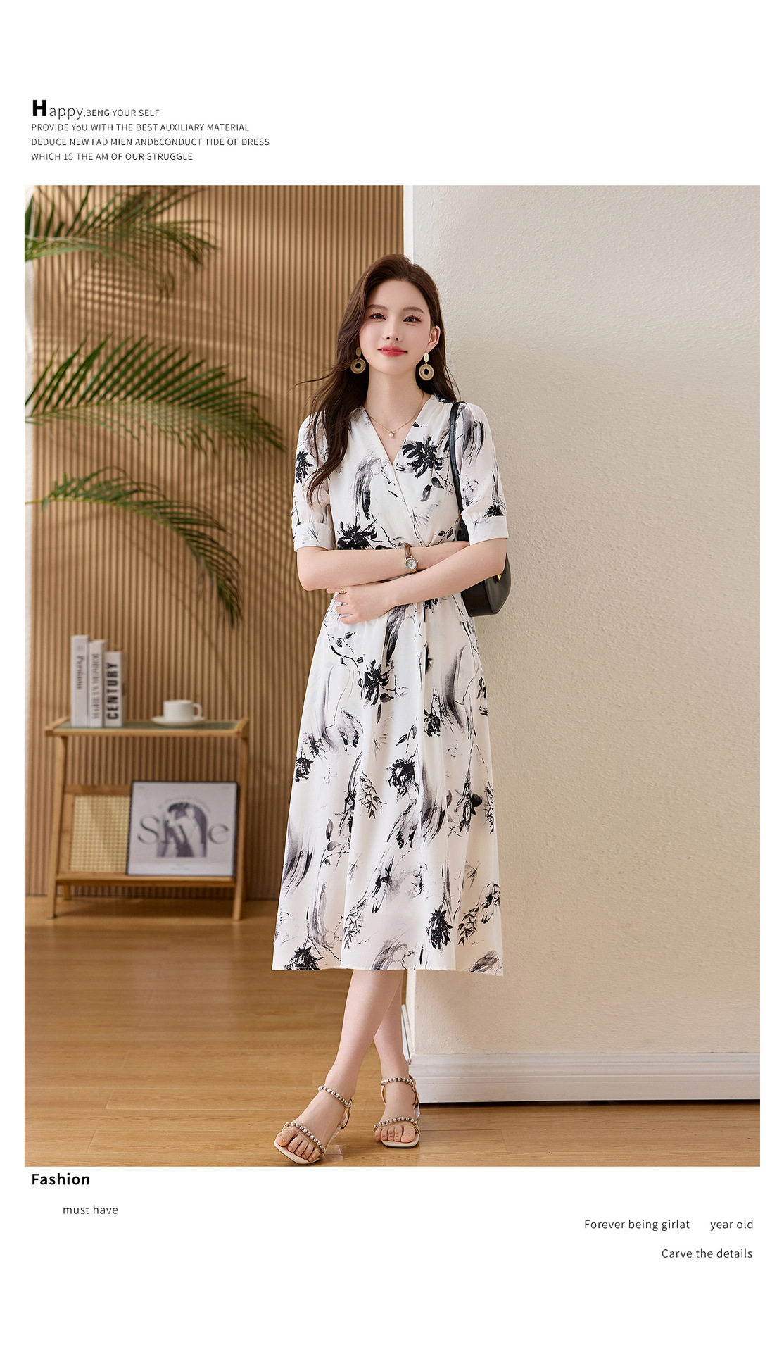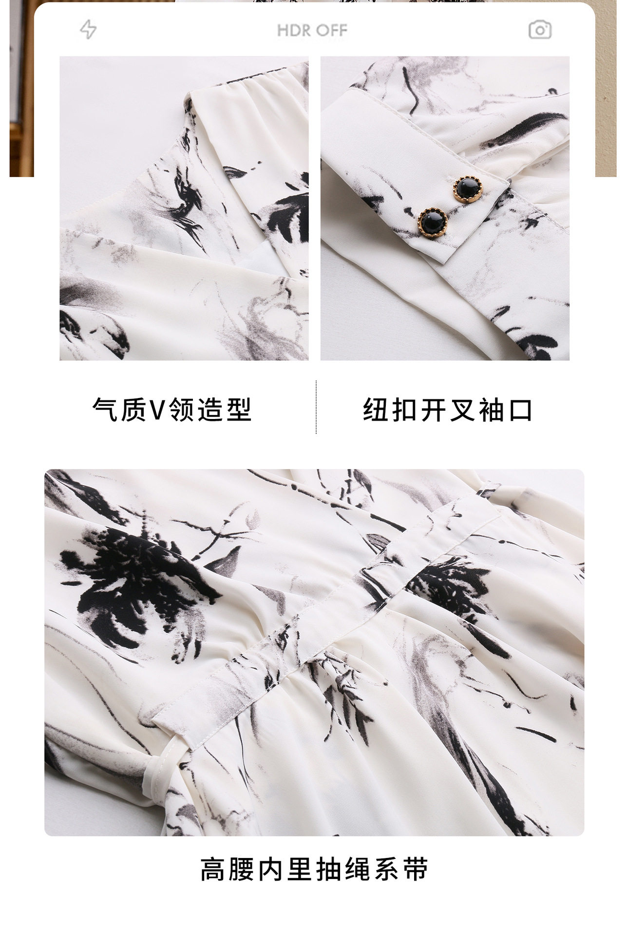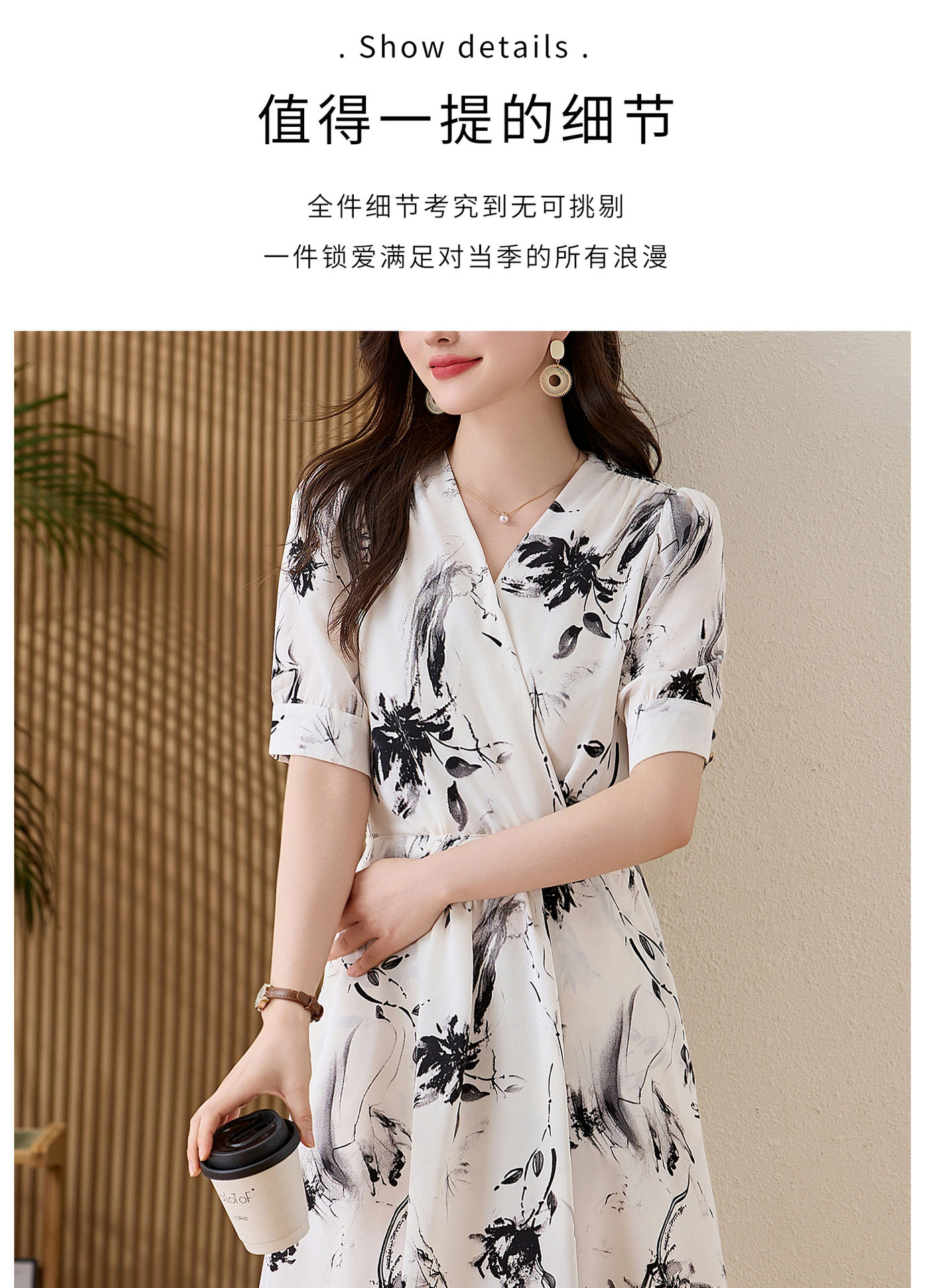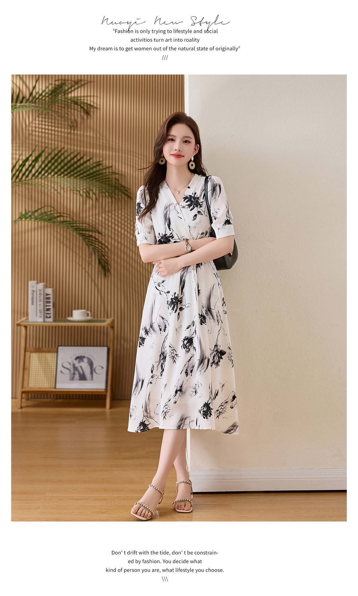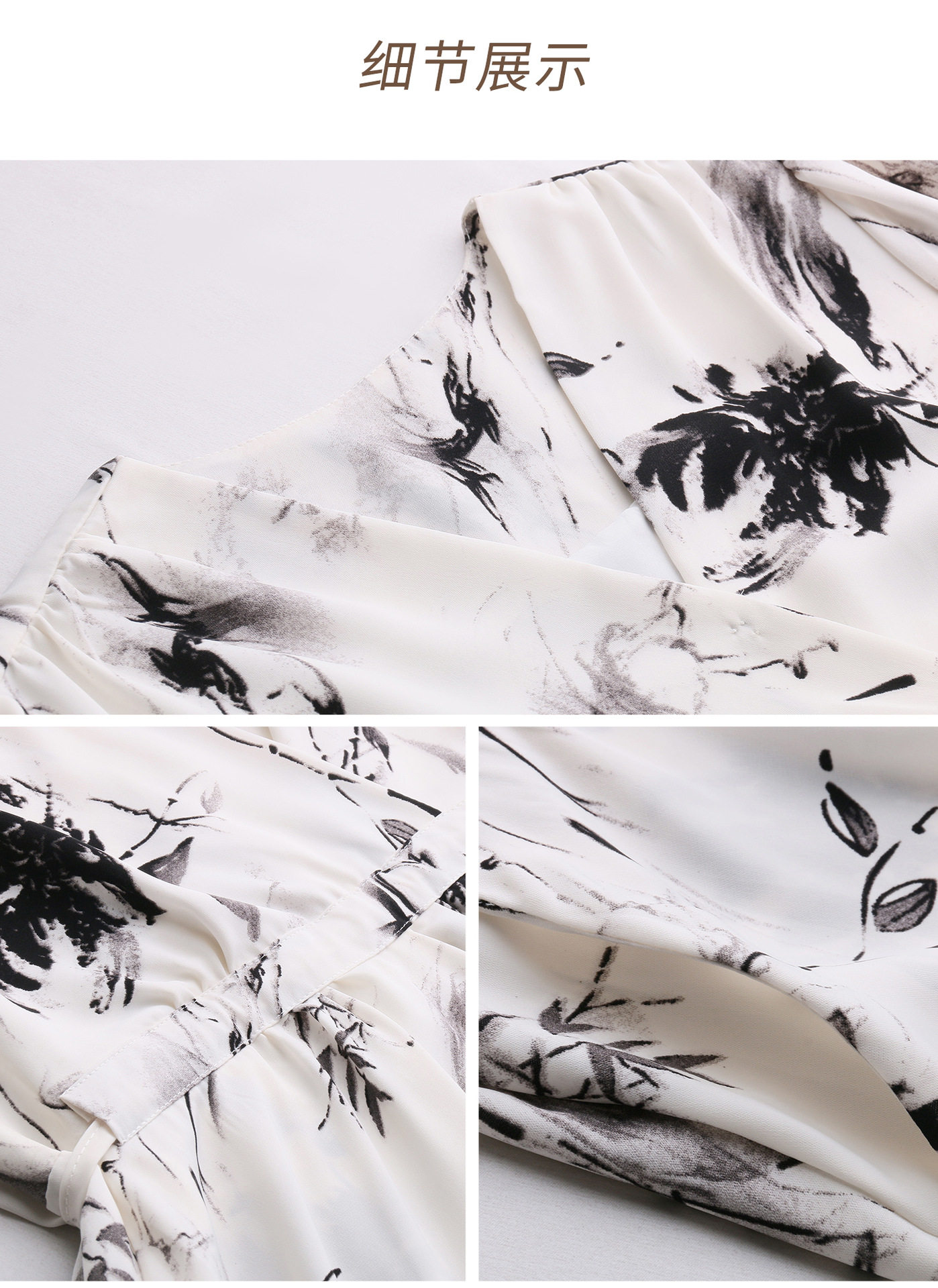 「自」全新升级【铂金会员257/天猫339/差价82】(01233)洛诗琳法式水墨印花连衣裙女2026新款气质V领收腰显瘦茶歇裙