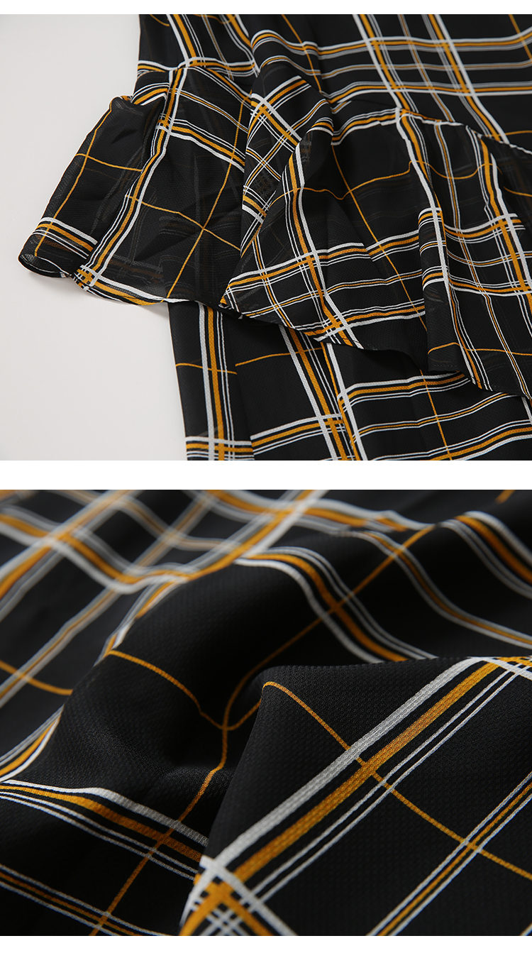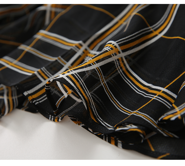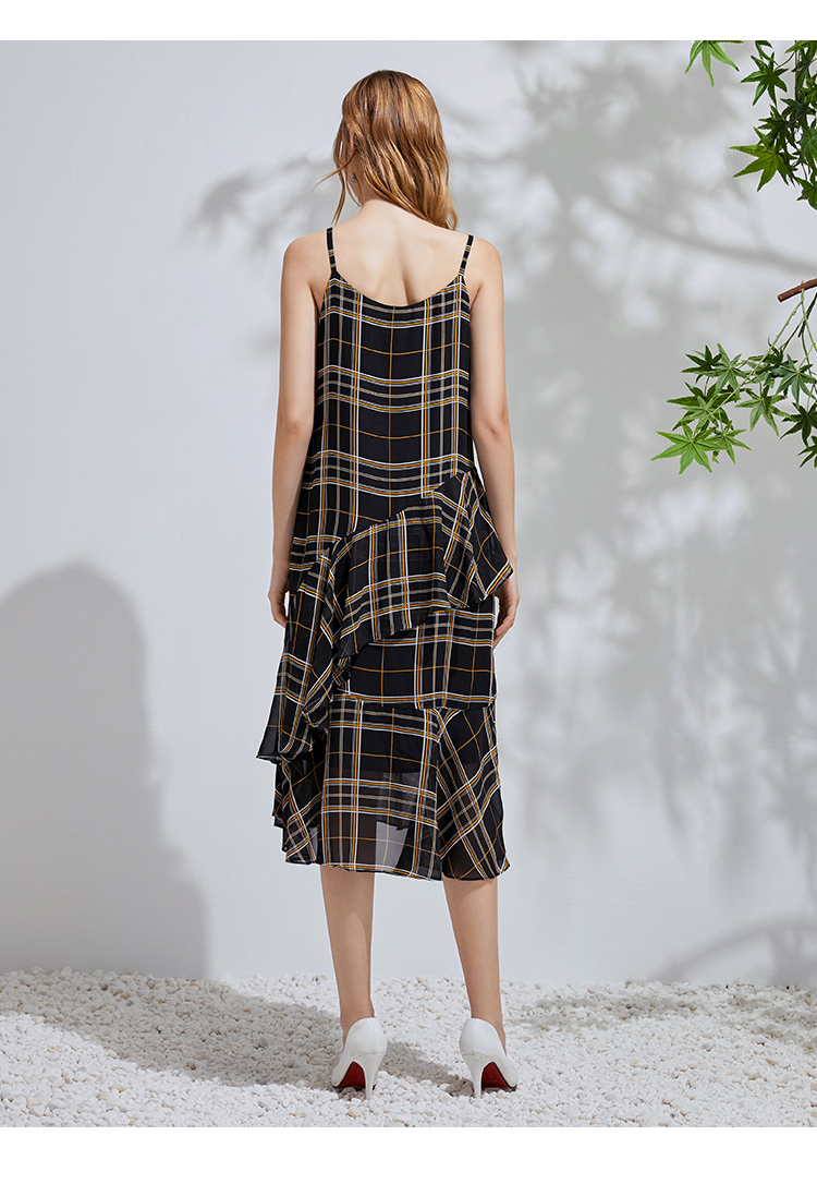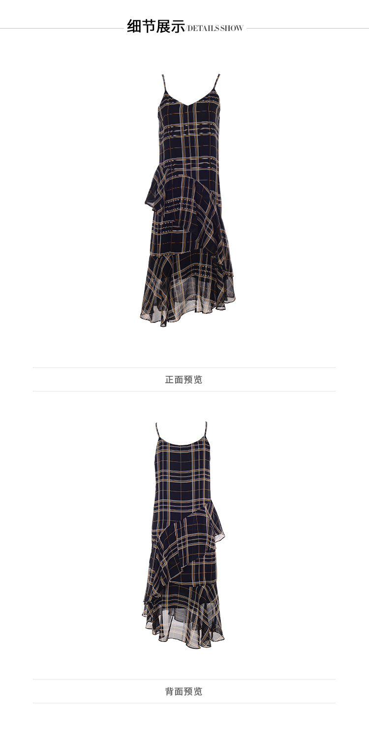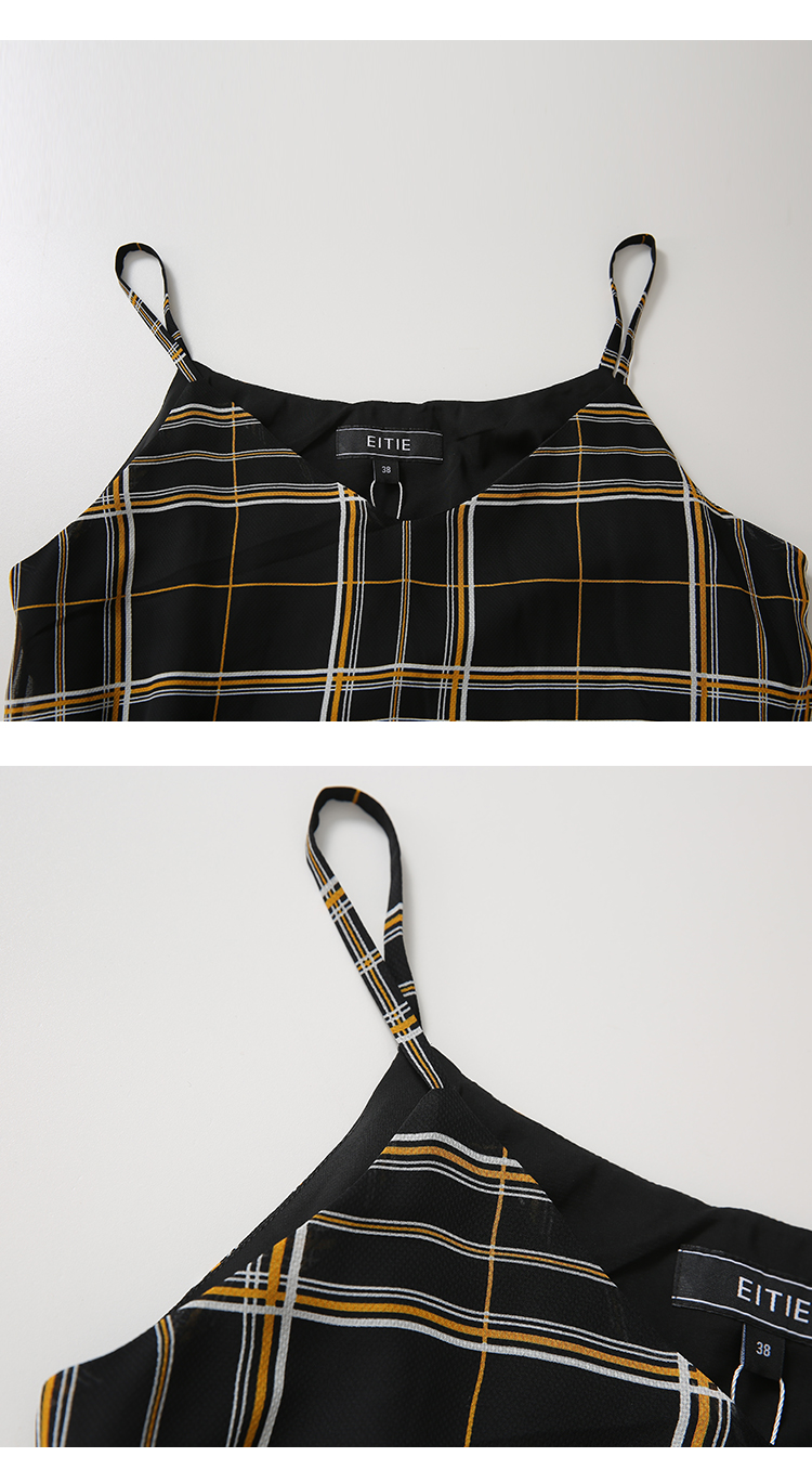 EITIE爱特爱春季新款显瘦V领洋气格纹荷叶边裙摆吊带连衣裙6107843