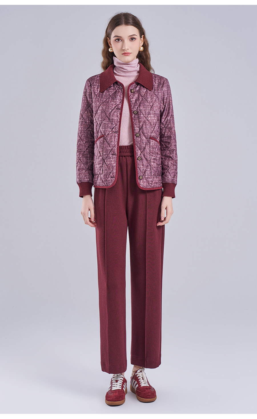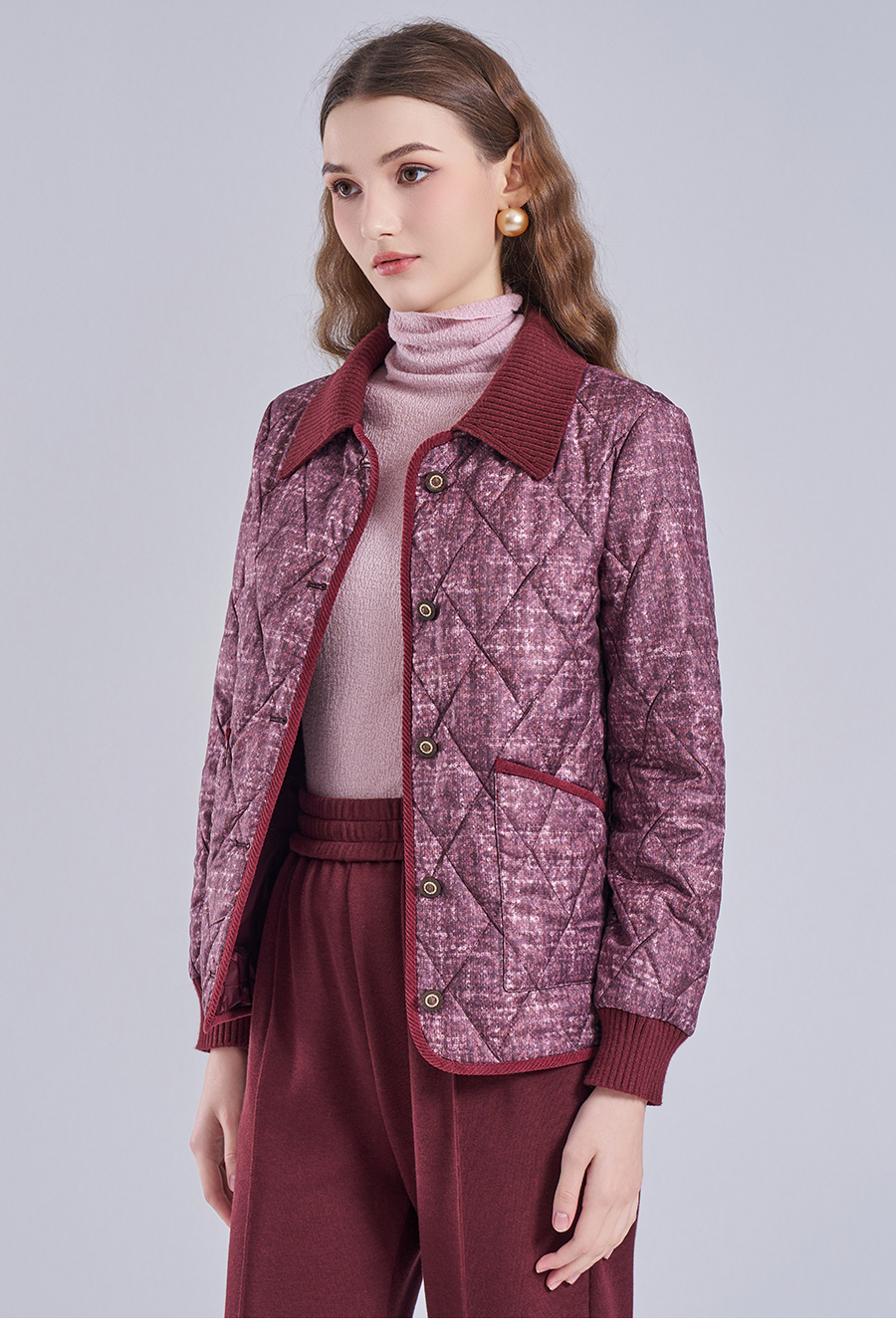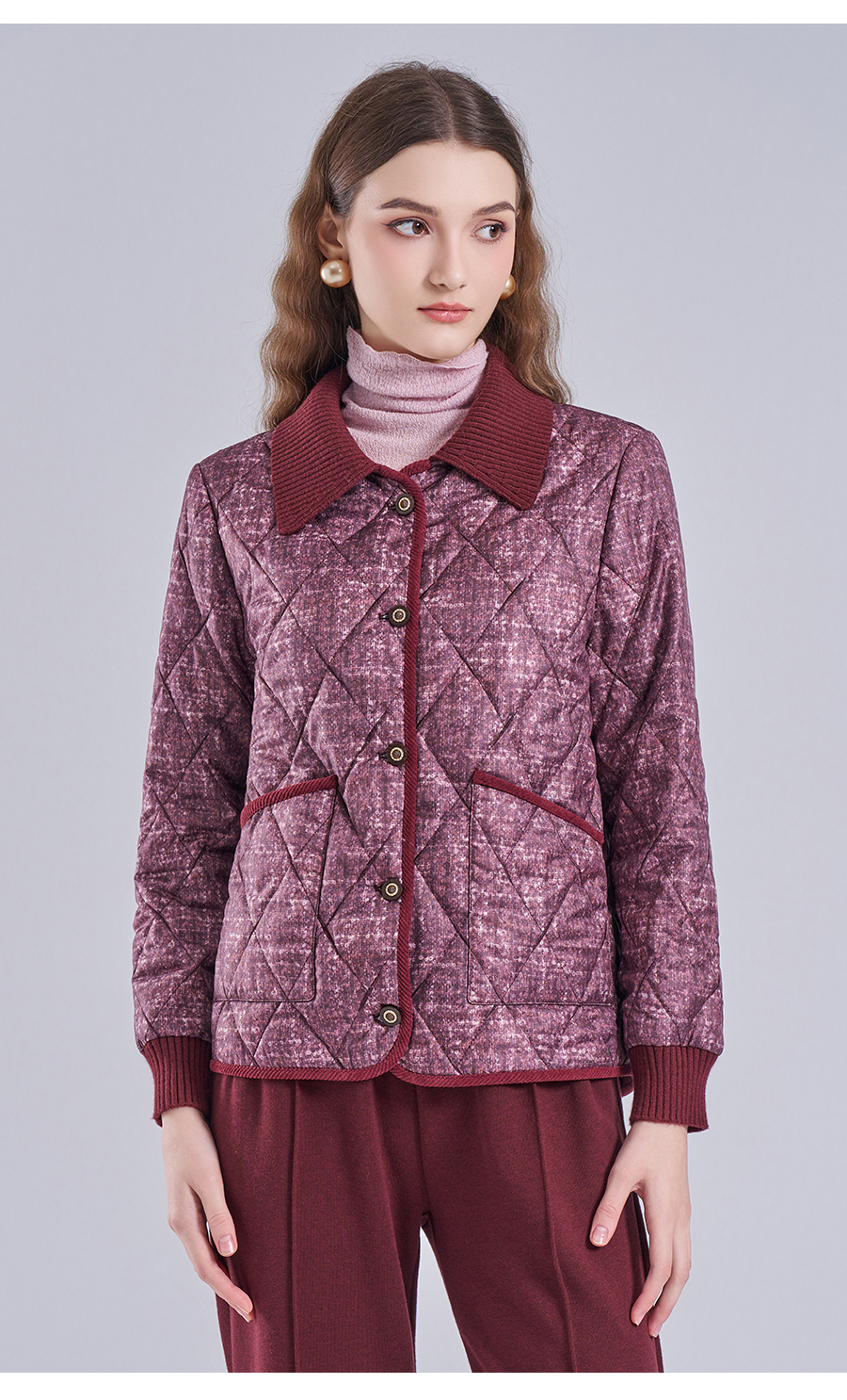 乔万尼撞色翻领精致感绗缝工艺短款棉服外套ED4K775