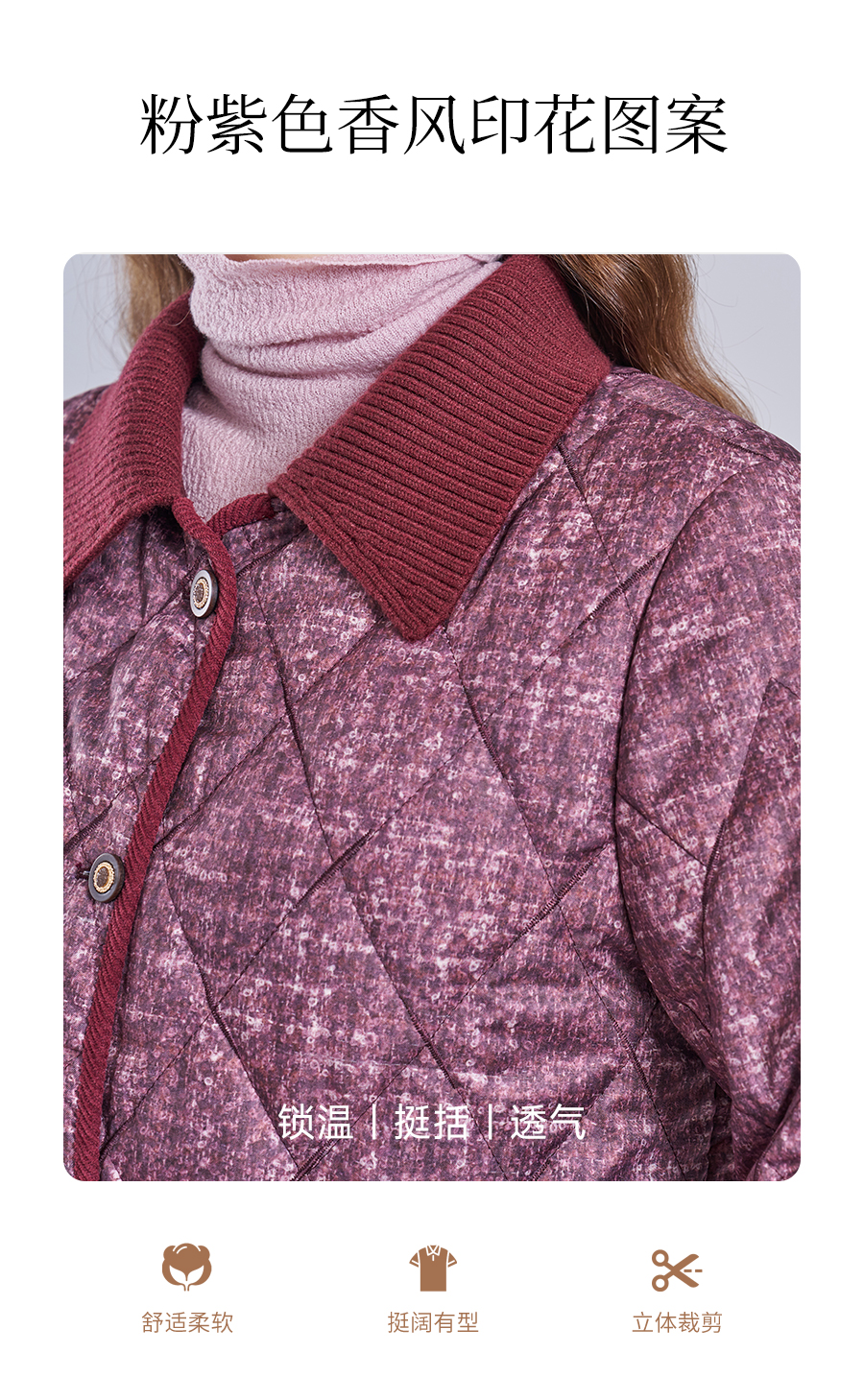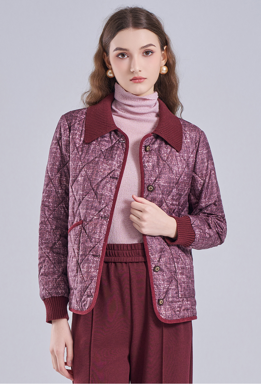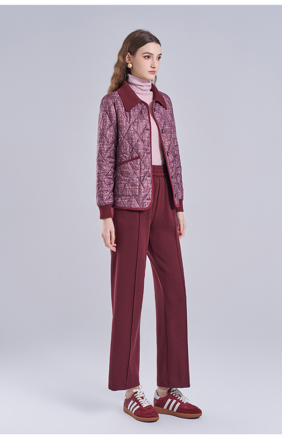 乔万尼撞色翻领精致感绗缝工艺短款棉服外套ED4K775