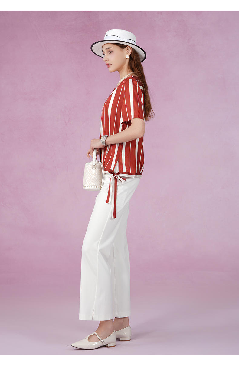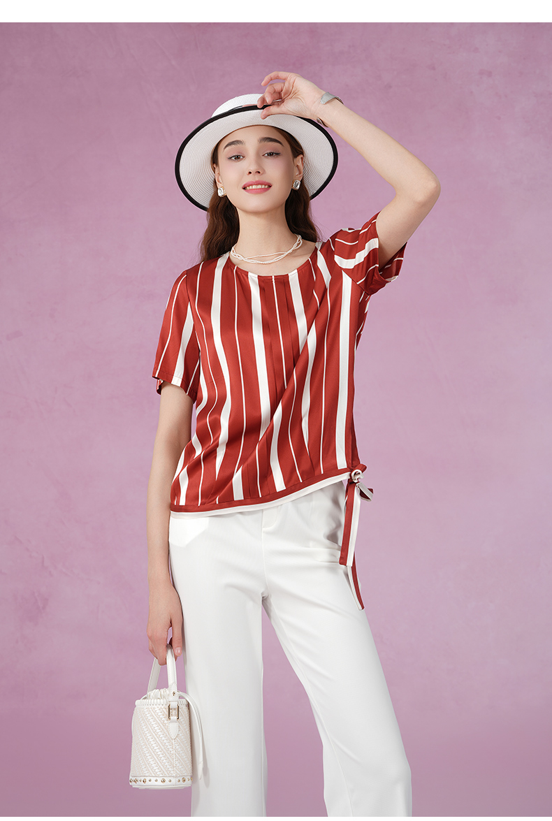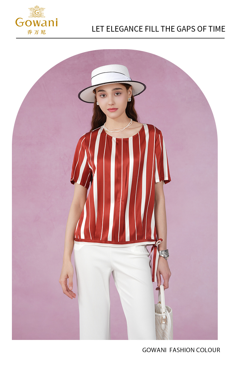 乔万尼休闲职场条纹显白真丝衬衫EI2C786