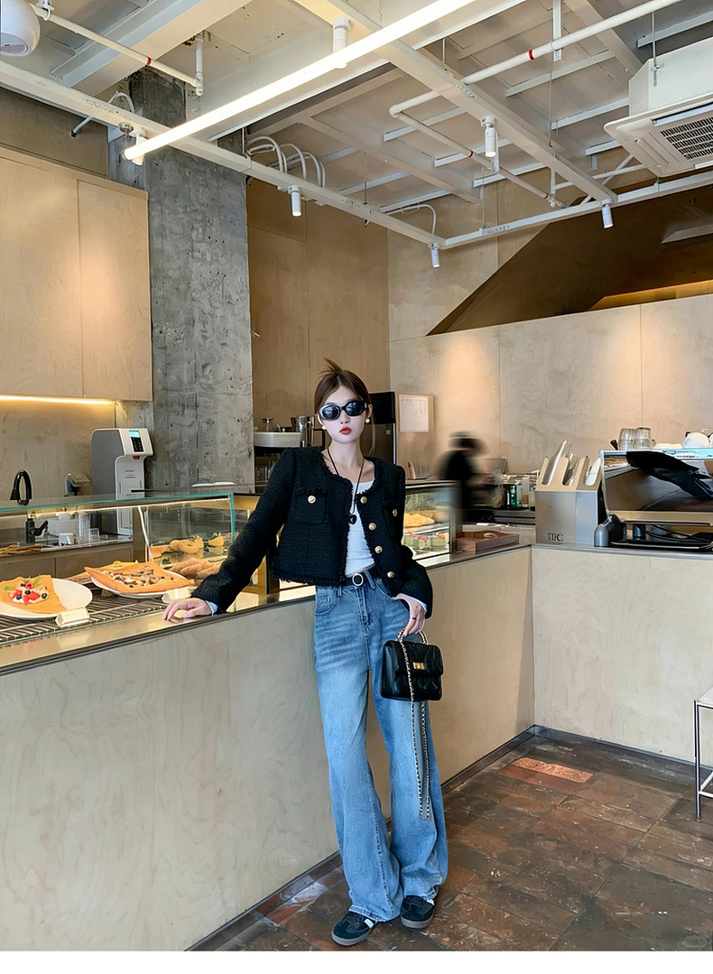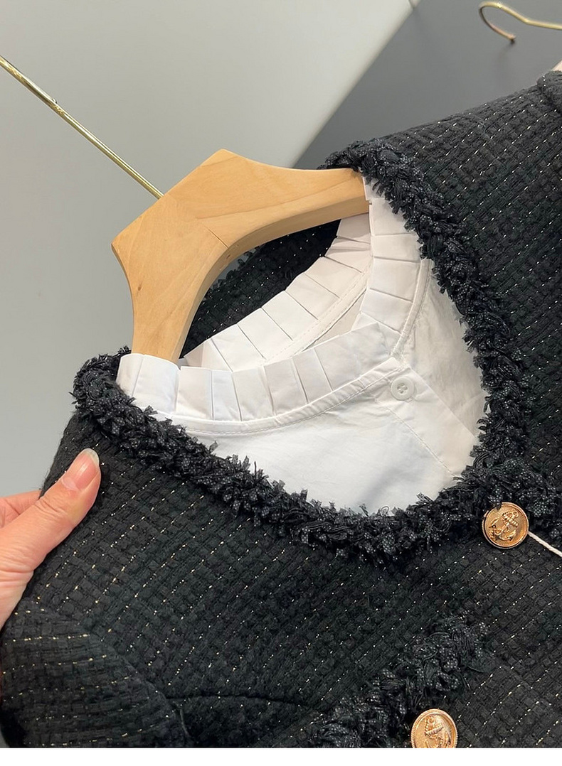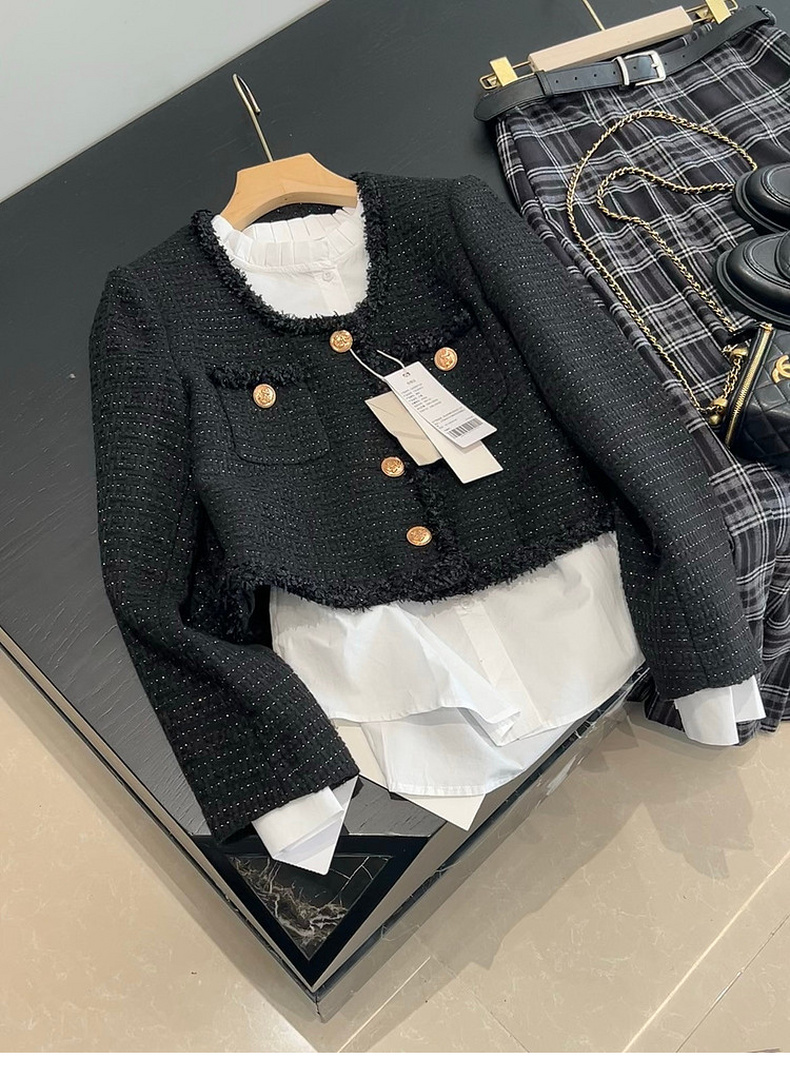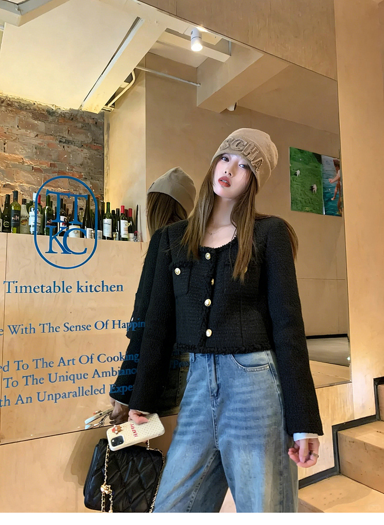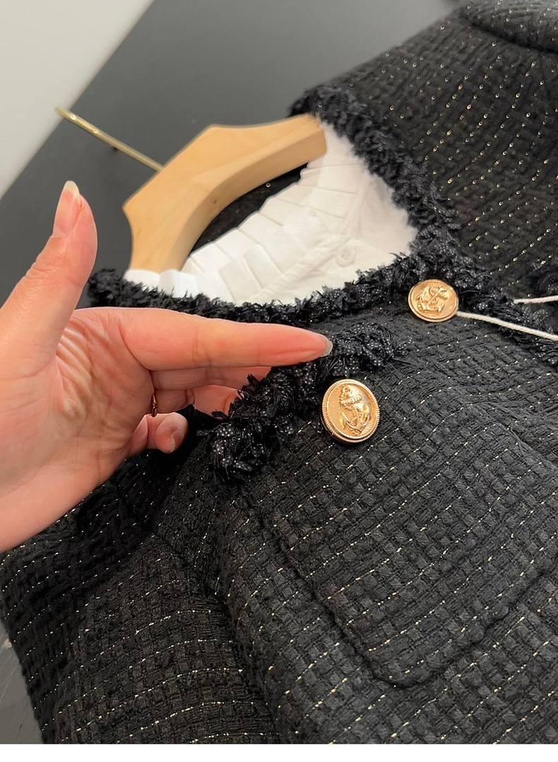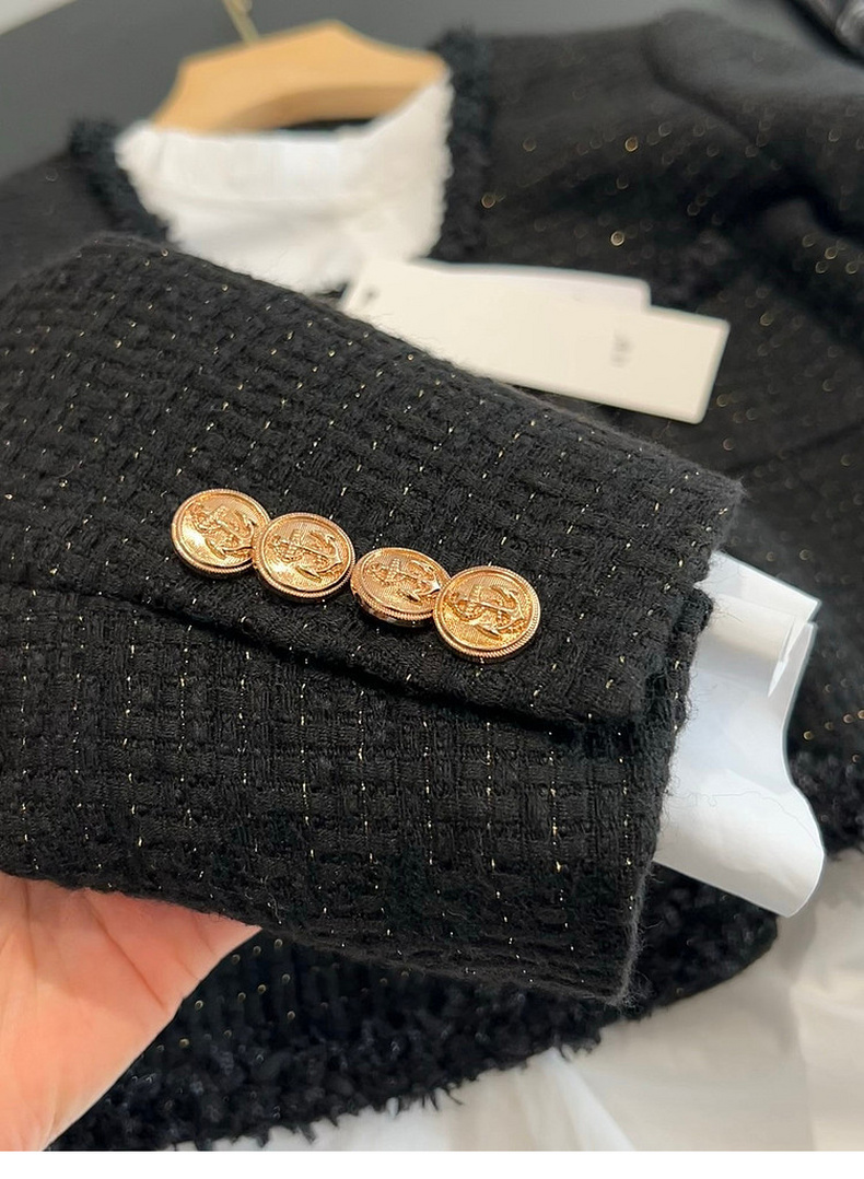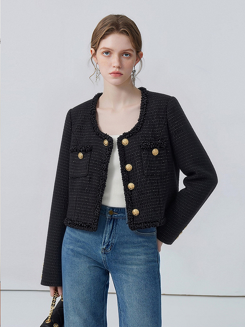 天猫同步【巴黎细闪!】拉夏贝尔/La Chapelle羊毛混纺别致U领单排扣设计气质编织短款通勤香风外套女