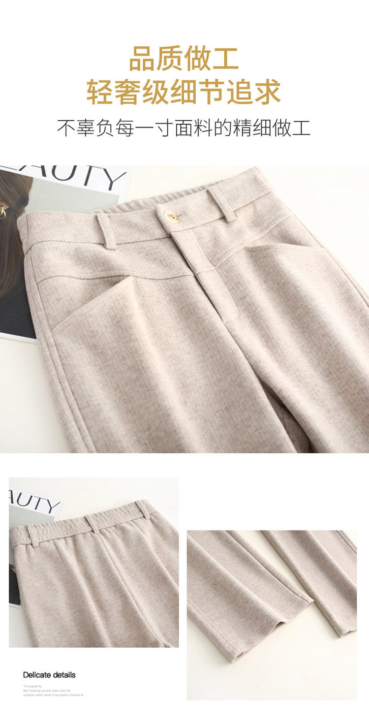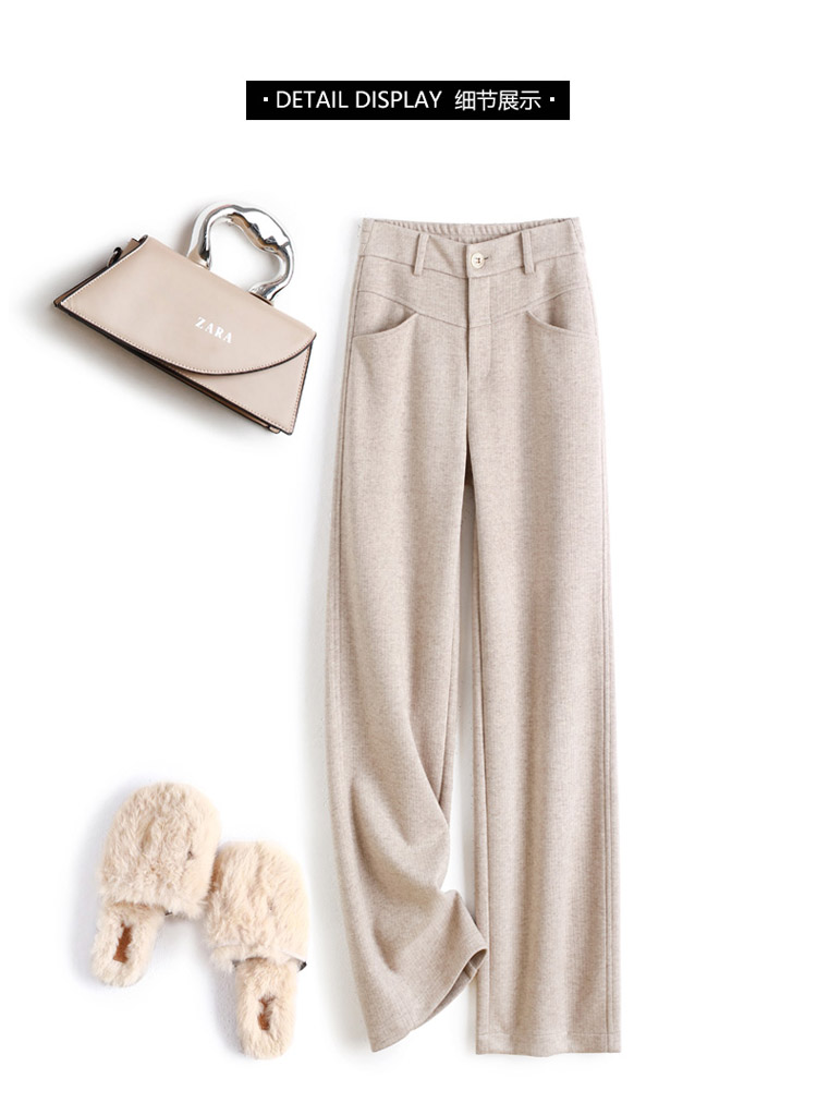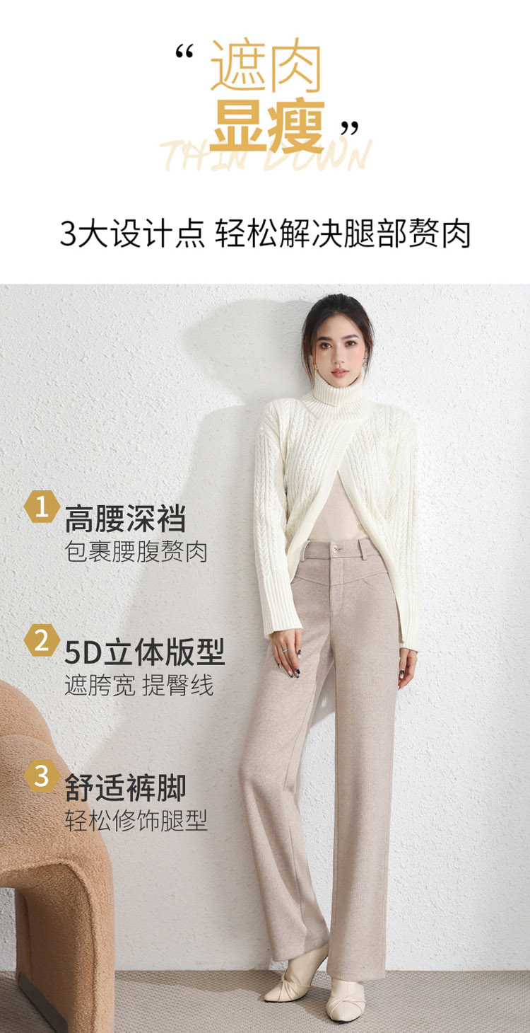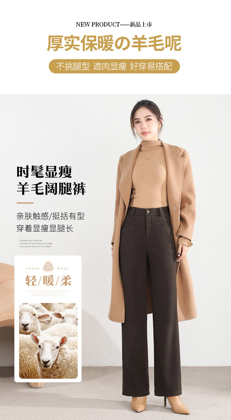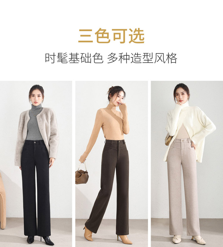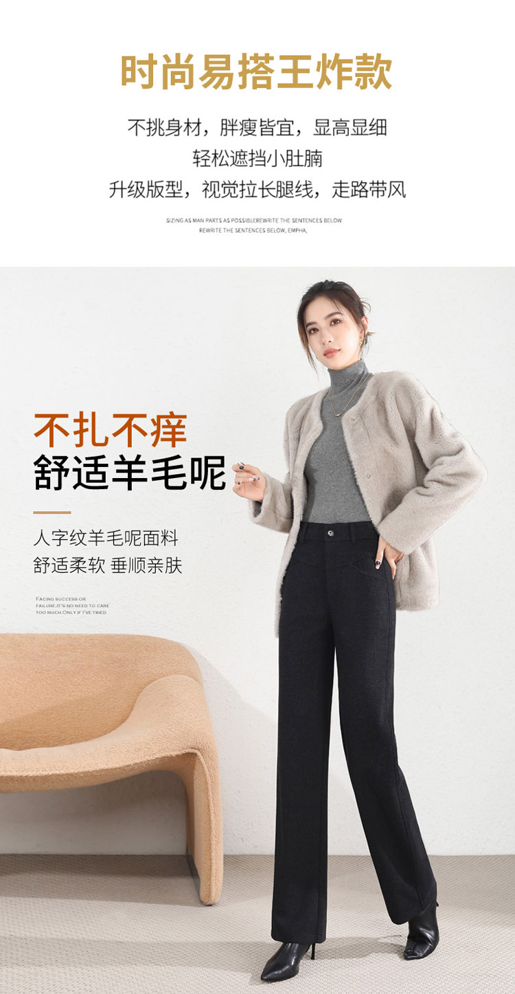 秋冬新款,羊毛阔腿裤女高腰宽松高级感窄版羊毛直筒裤子HR-MFE8985