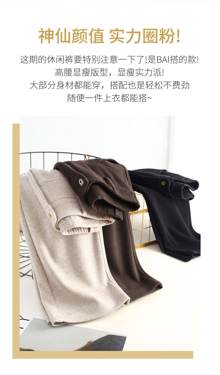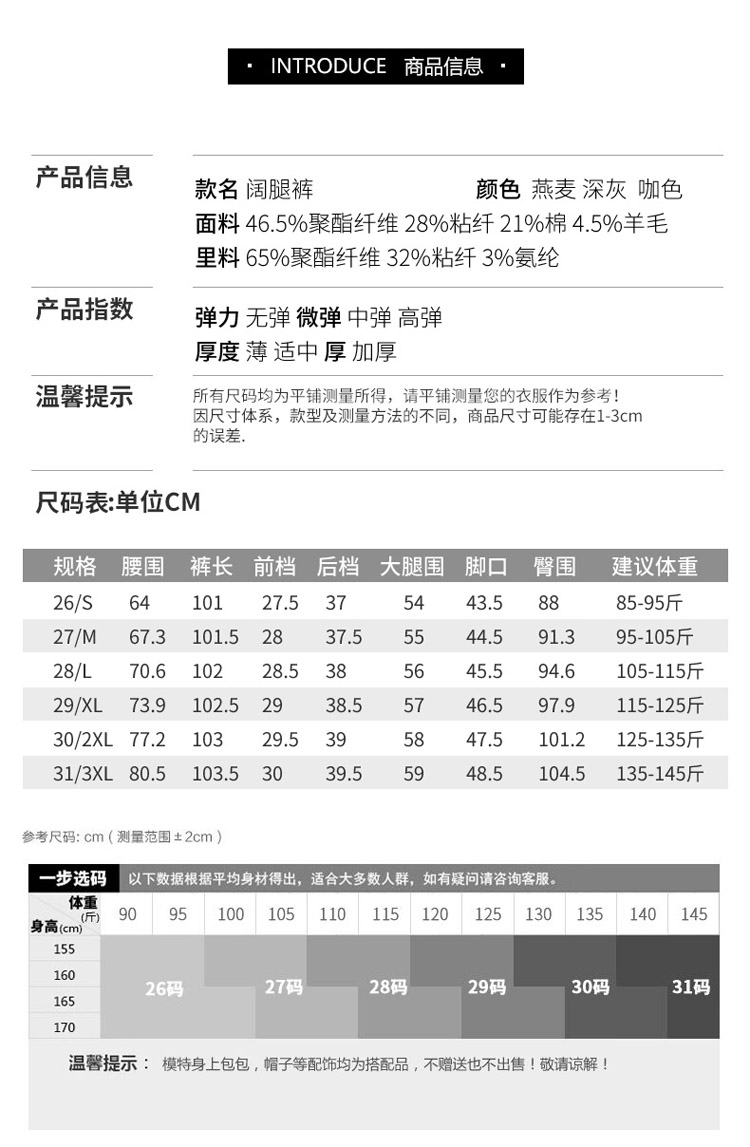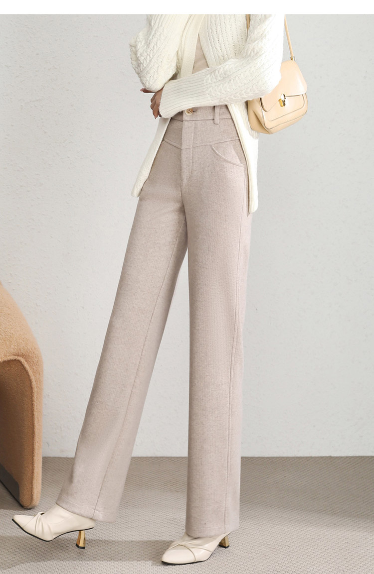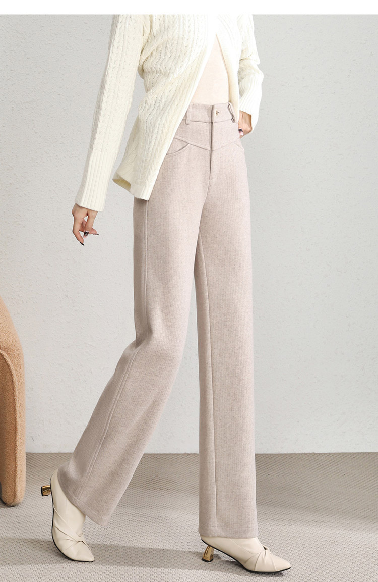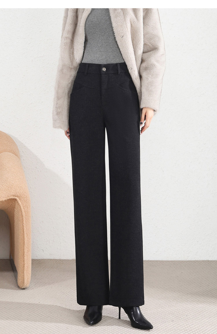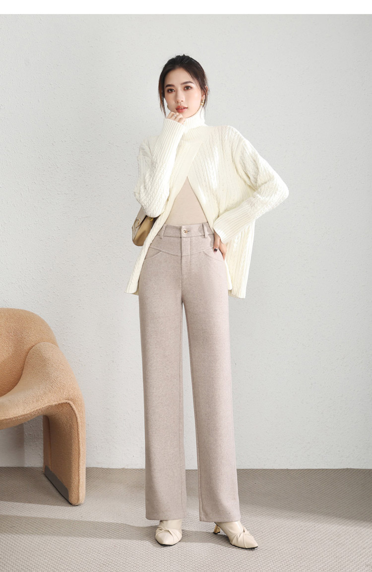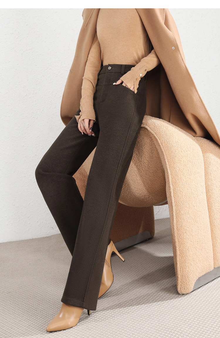 秋冬新款,羊毛阔腿裤女高腰宽松高级感窄版羊毛直筒裤子HR-MFE8985