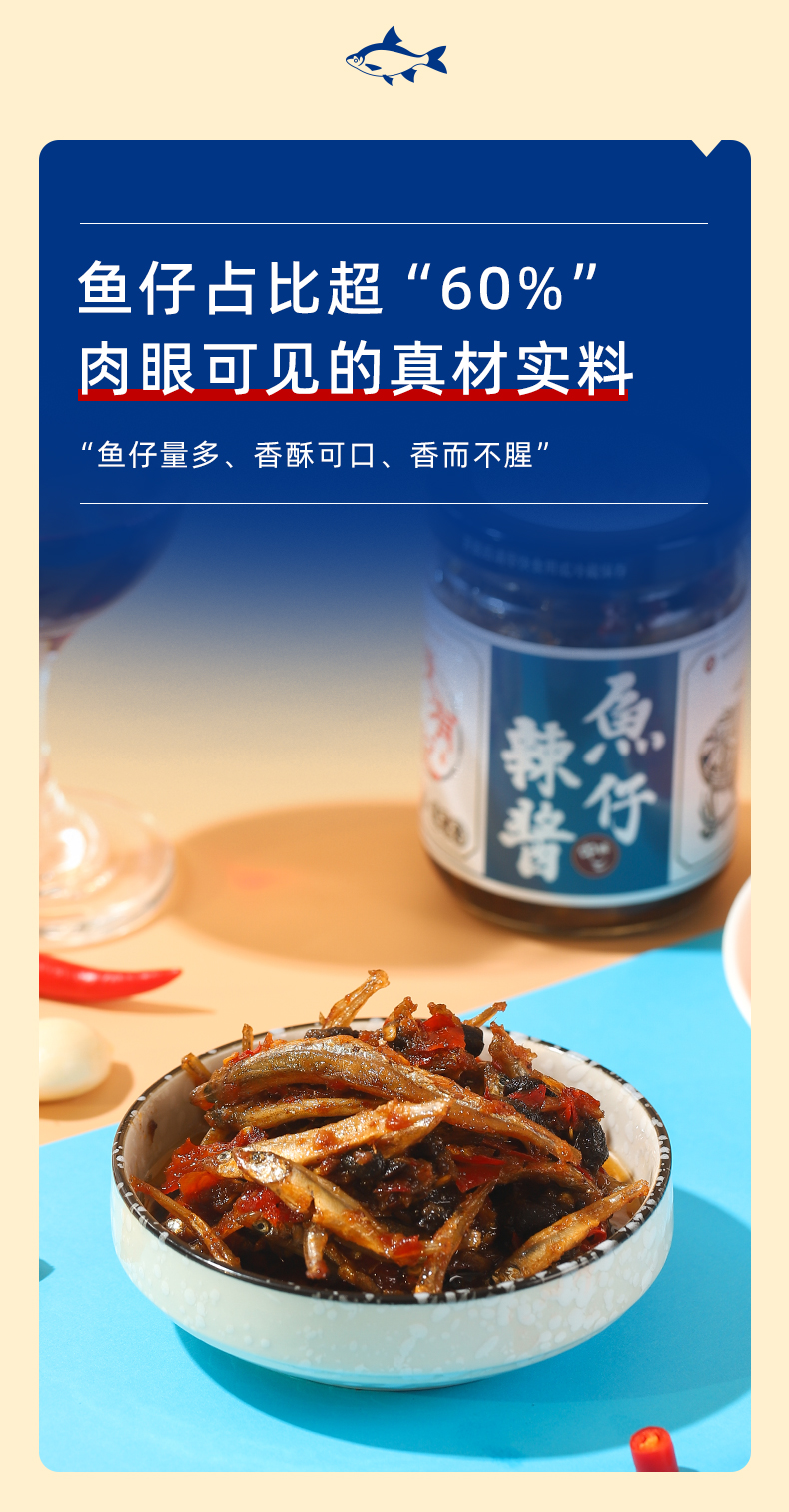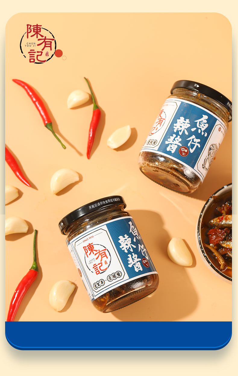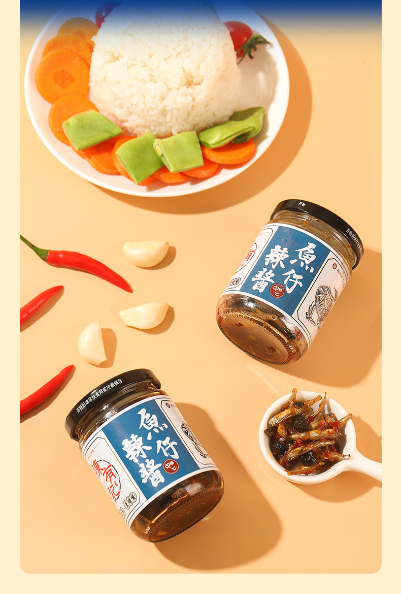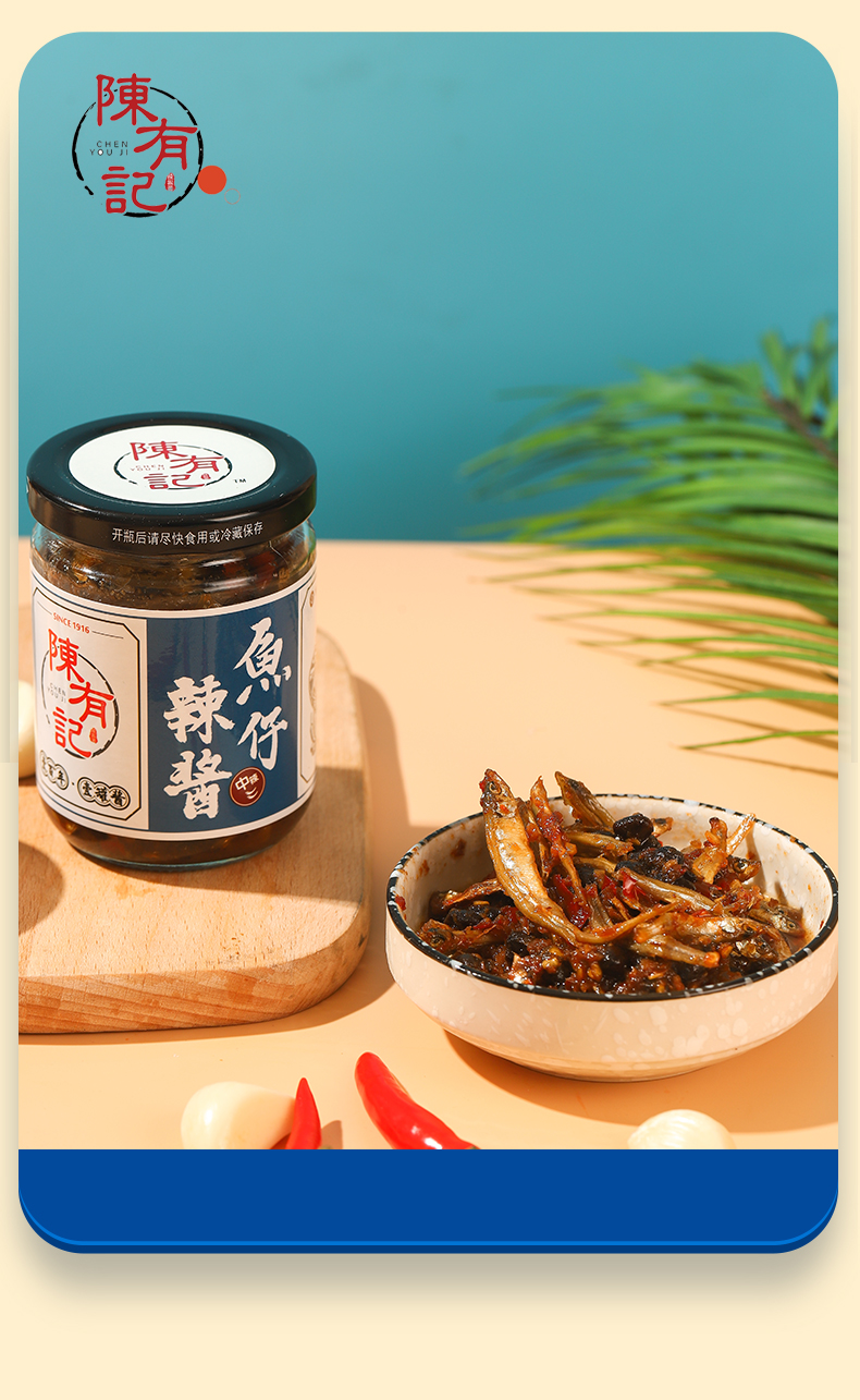 陈有记鱼仔辣酱200g/瓶,选用东江湖小河鱼,通过晒干油炸炒制而成。满满的鱼仔,当零食吃都可以