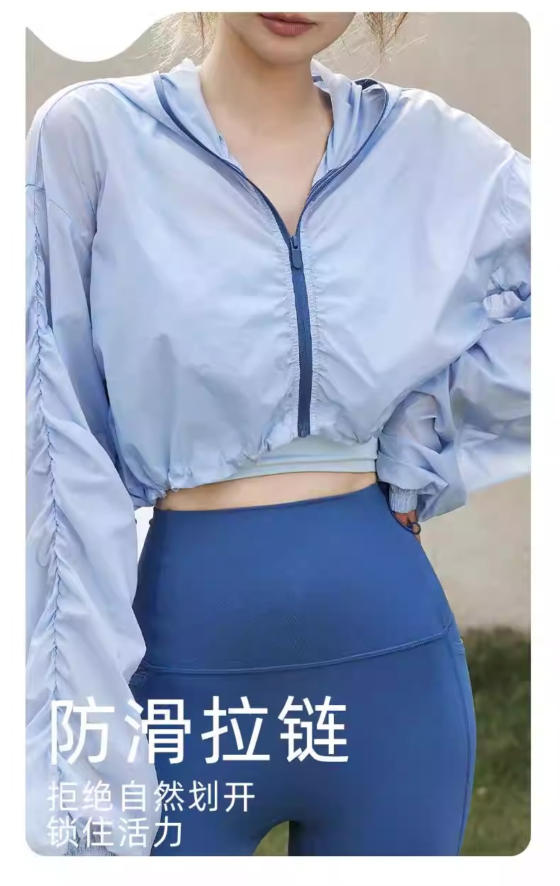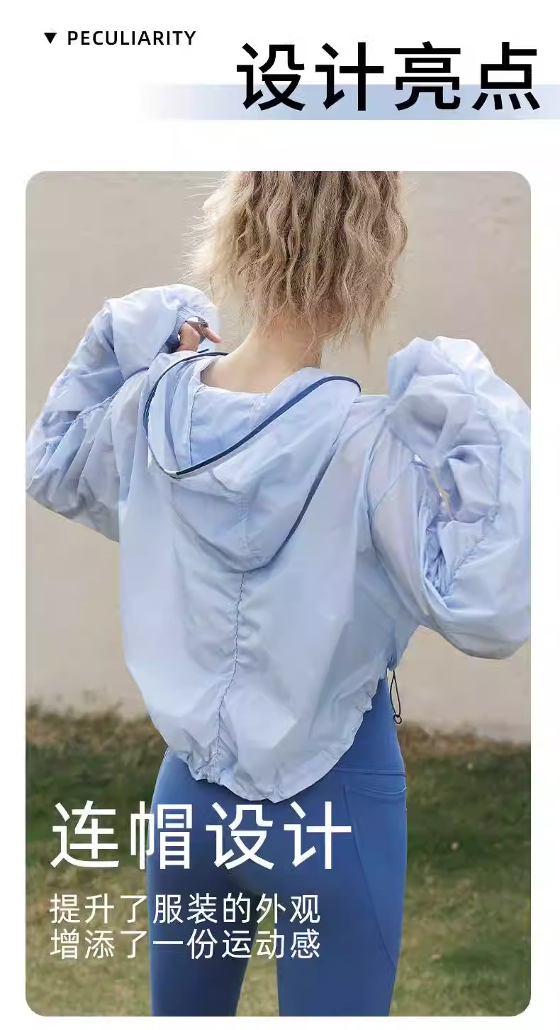 【3~5天发货】跃牌【美度空间】系列 夏季薄款连帽运动外套女宽松休闲抽绳拉链瑜伽上衣夏透气健身长袖ADWT41016