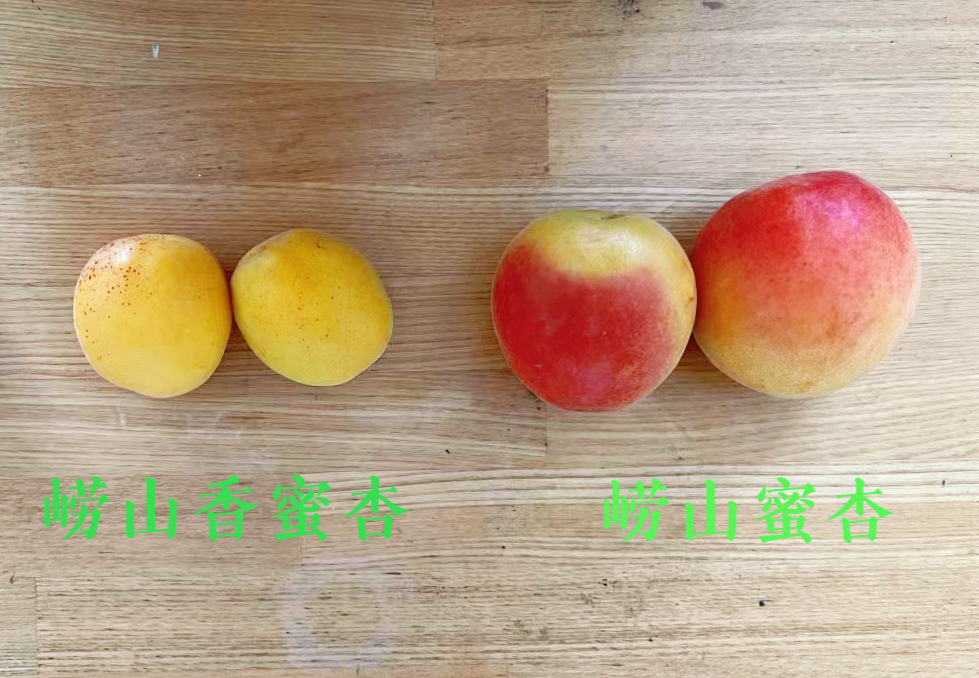 崂山蜜杏:属于红杏系列,个头大,橙黄底色,向阳面有红晕,肉质厚实,水分足,多种水果的混合浓香,甜度中高,苦杏仁不可食,品种经典。