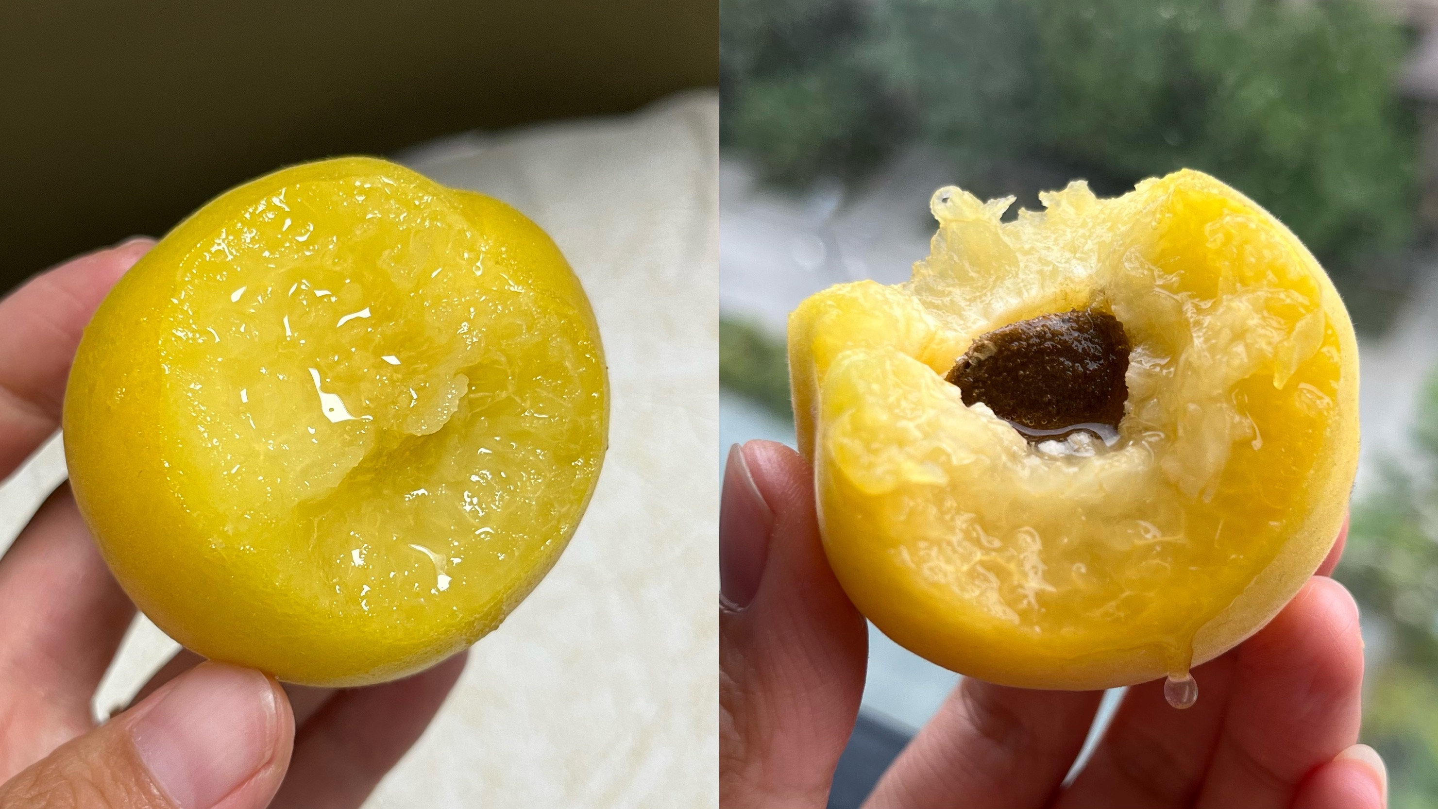 清凉浓甜的杏汁在齿缝间爆开,果肉就像在嘴里化了一般软绵、无渣无纤维。