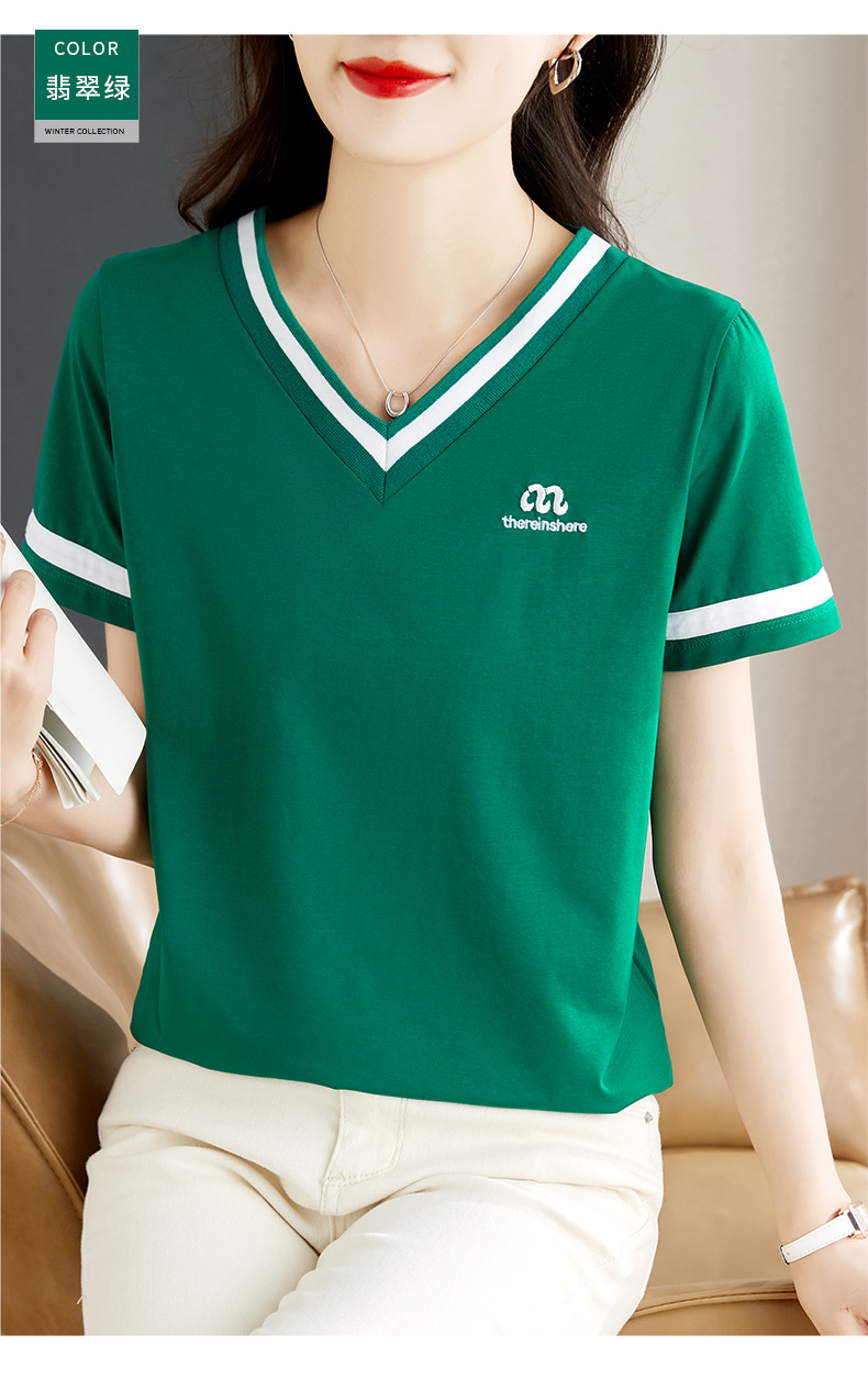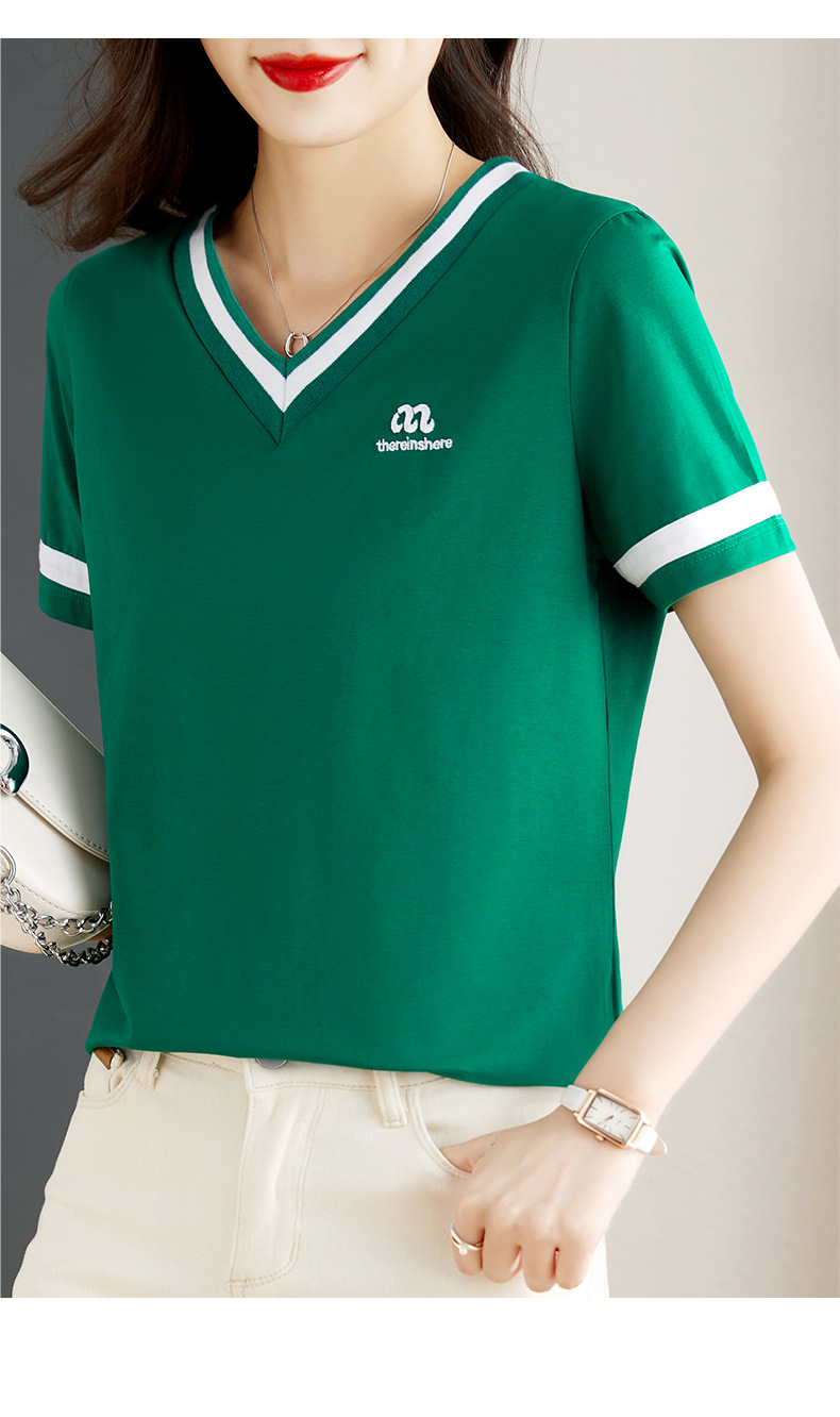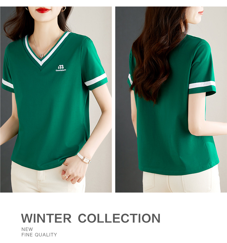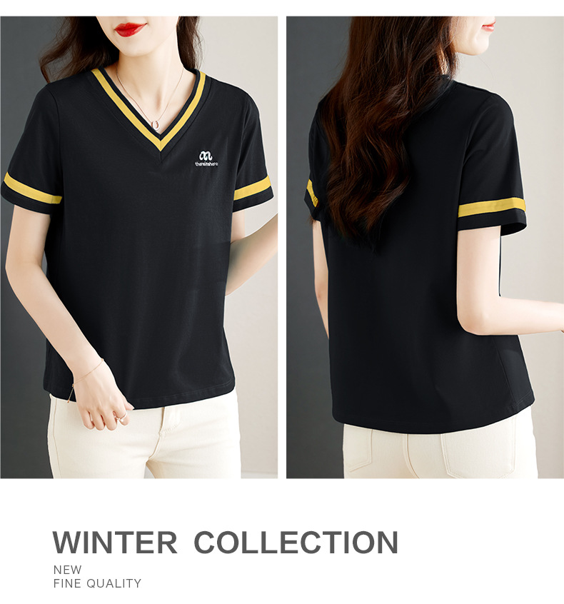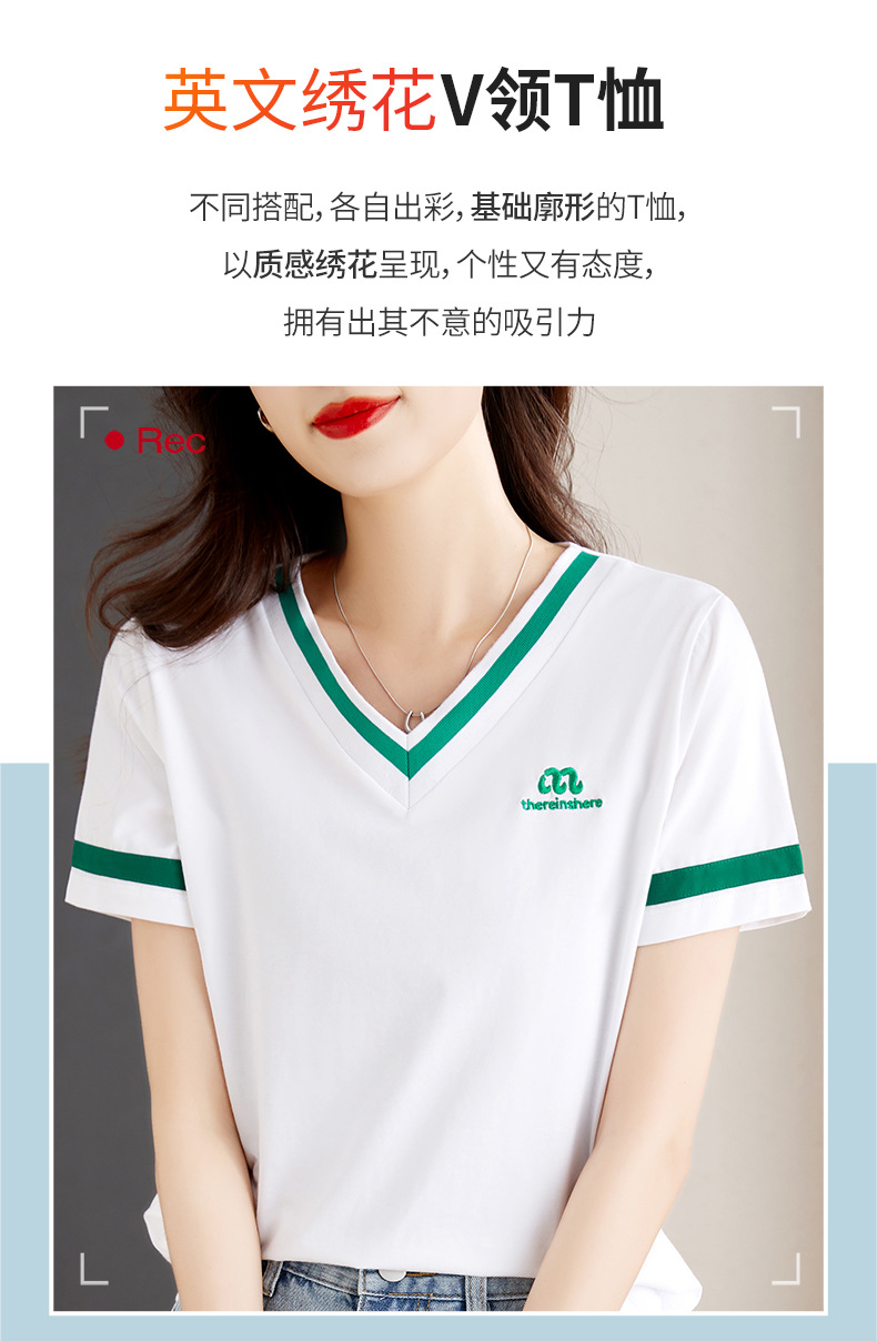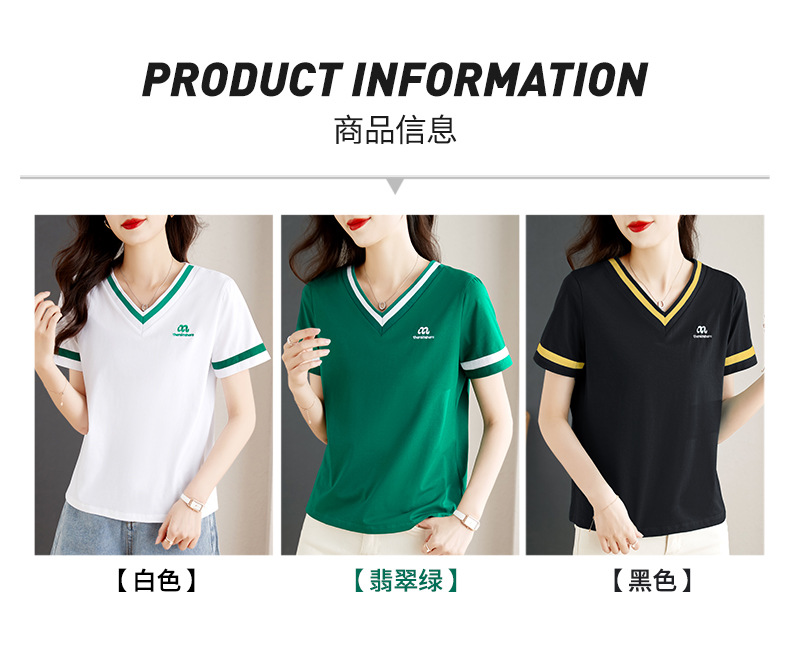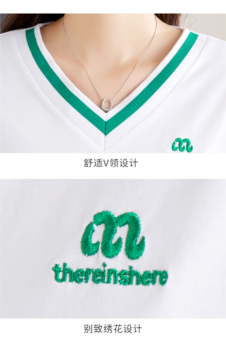 福利款~雀说撞色v领白色短袖t恤夏季女装显瘦正肩上衣高端半袖体恤AL20164 商品图7