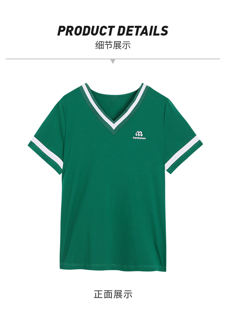福利款~雀说撞色v领白色短袖t恤夏季女装显瘦正肩上衣高端半袖体恤AL20164 商品图2