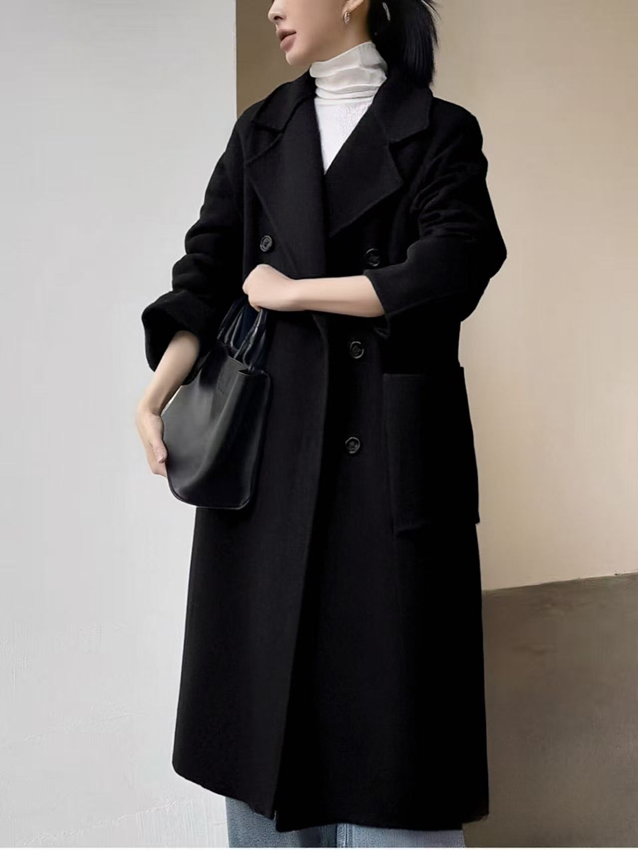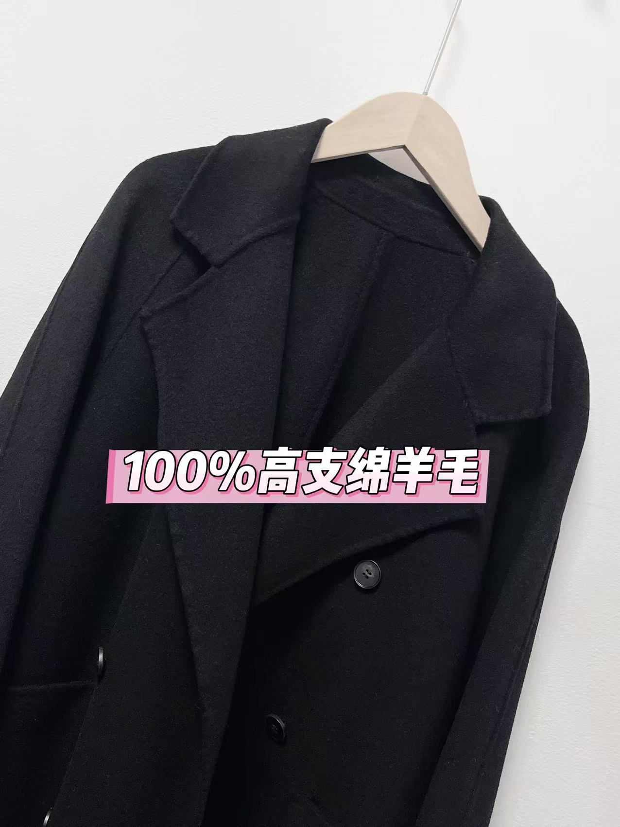 【轻奢双面尼】2511(100%高支绵羊毛)翻领大口袋简约双面尼大衣-喜出