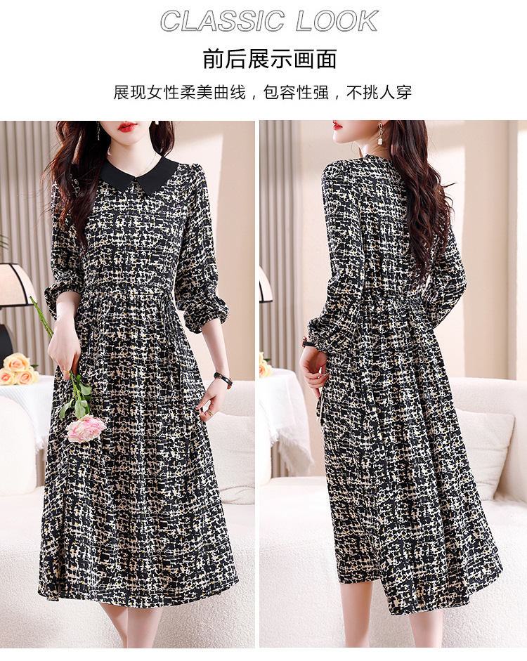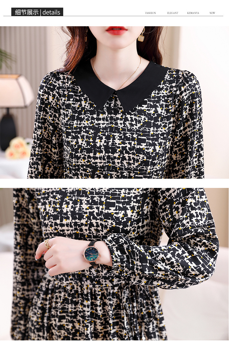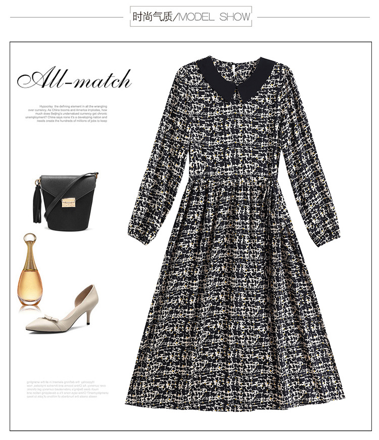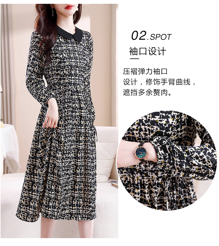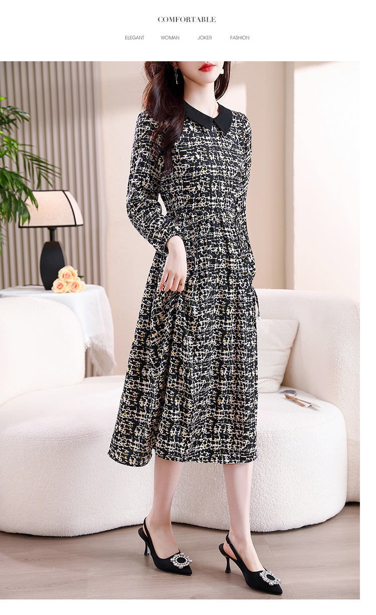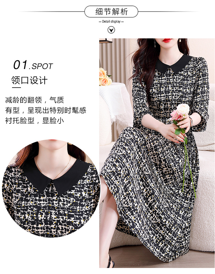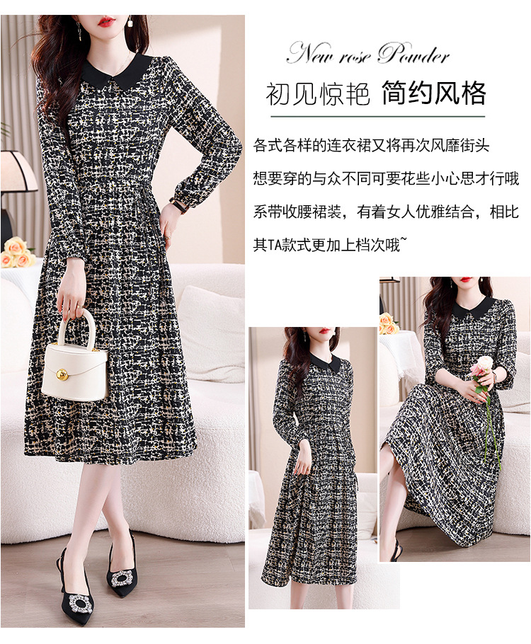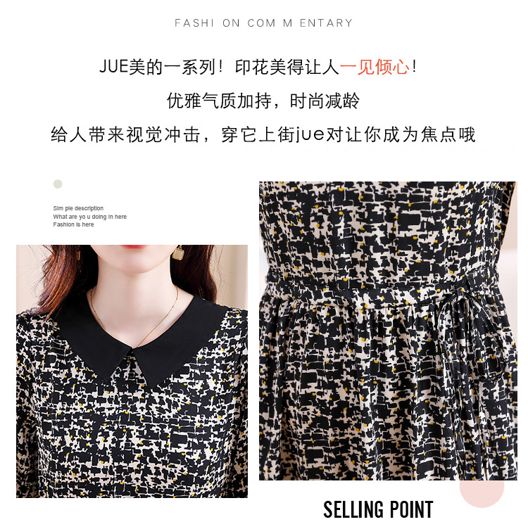 雀说新款时尚洋气翻领拼接减龄复古收腰系带中长裙AL9656