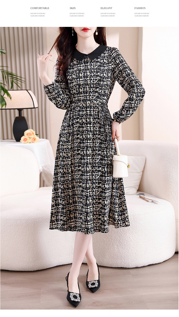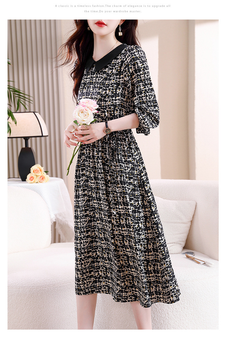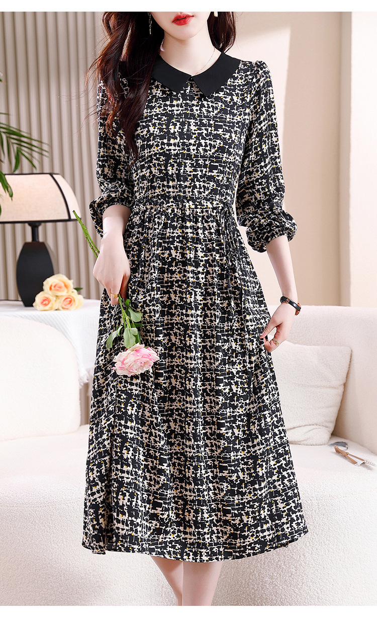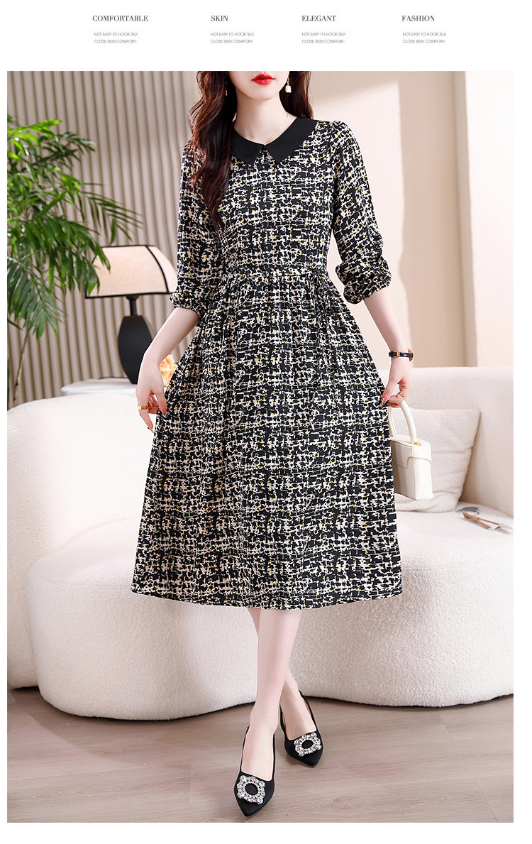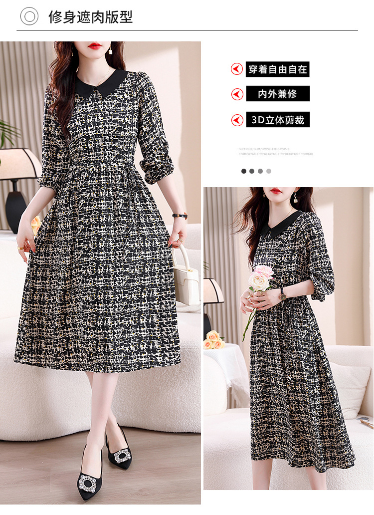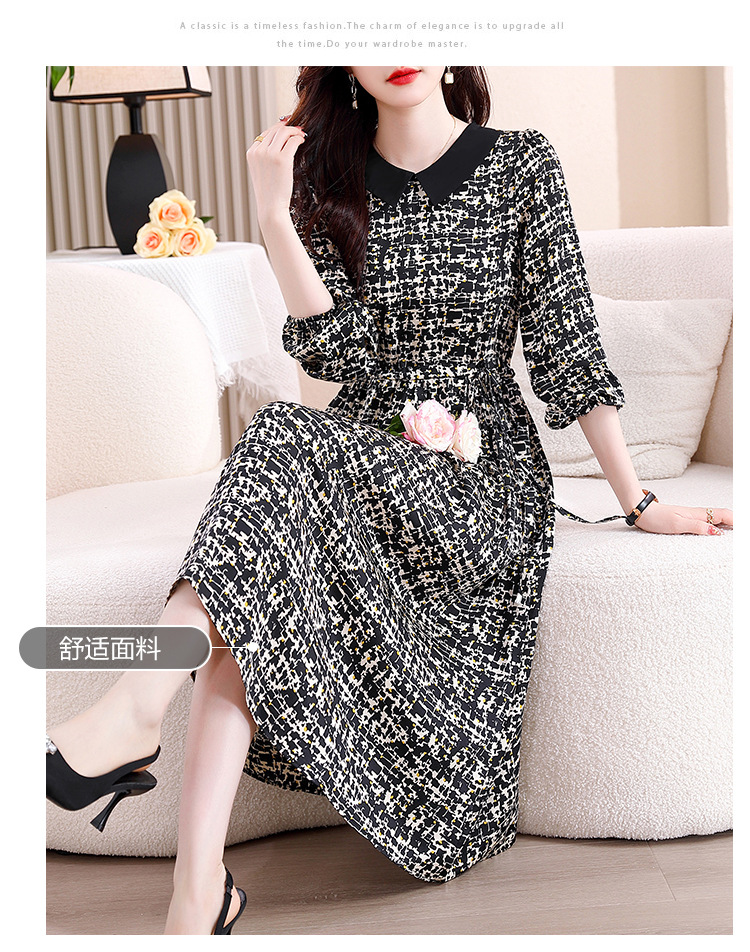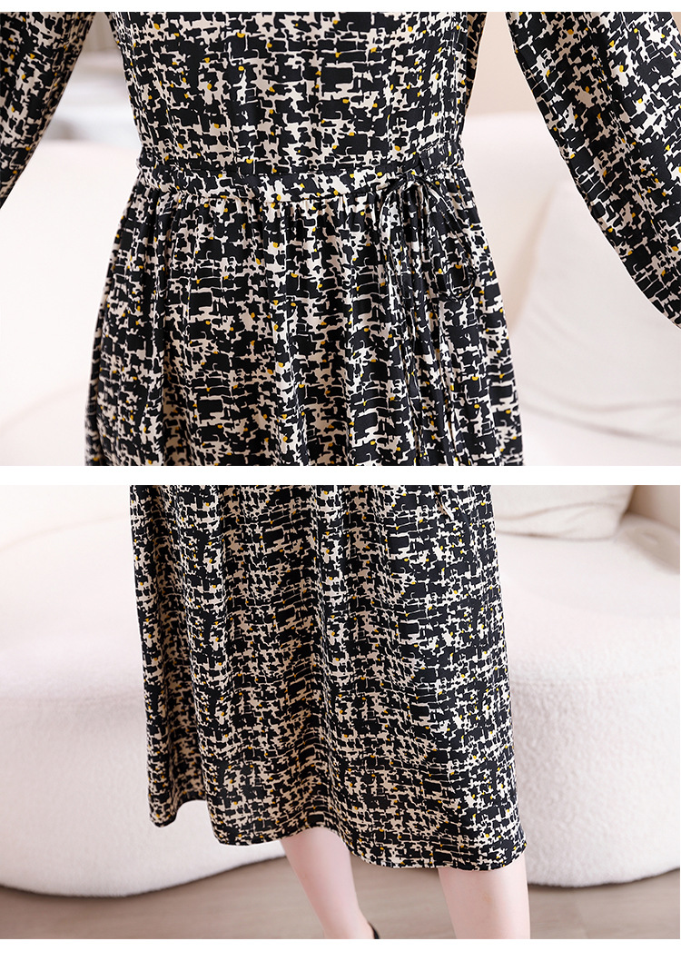 雀说新款时尚洋气翻领拼接减龄复古收腰系带中长裙AL9656