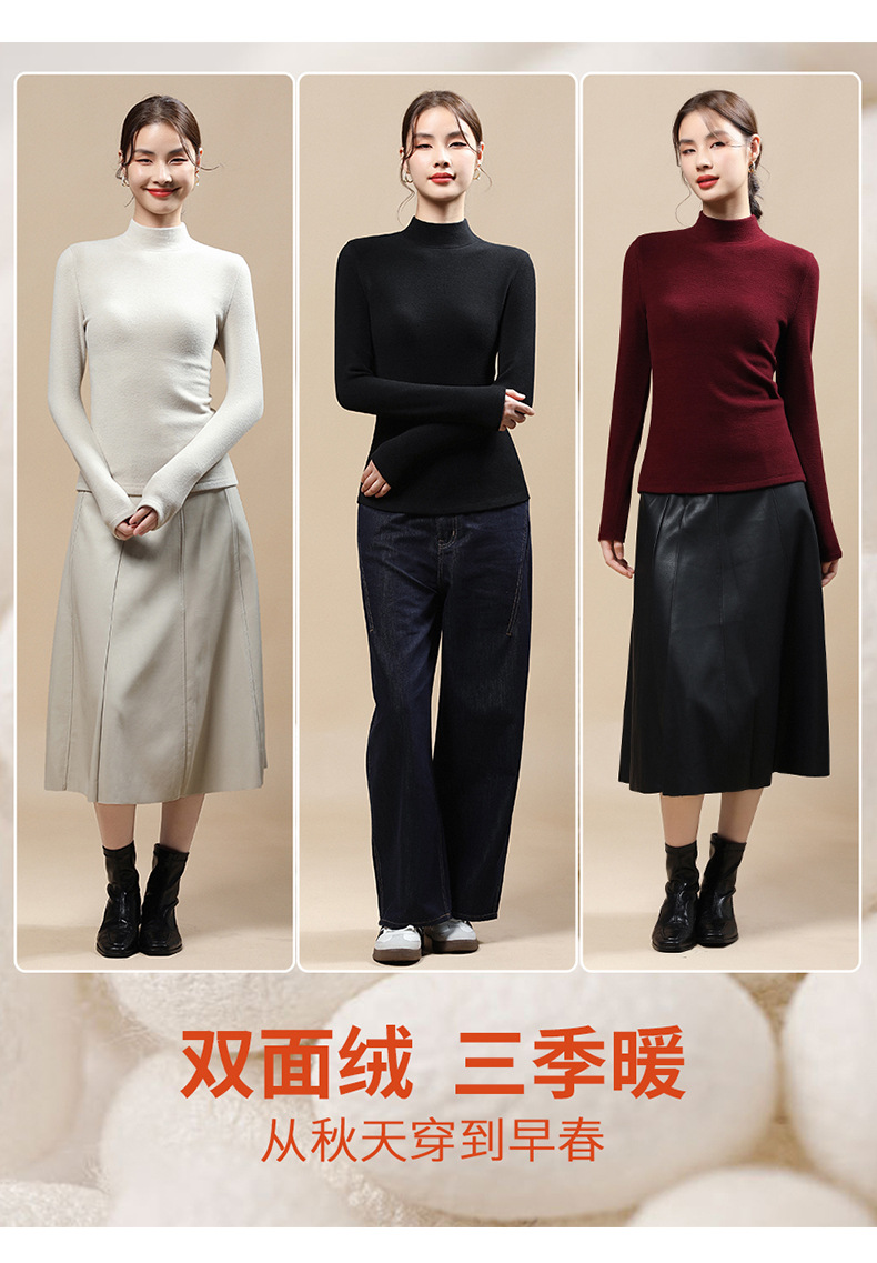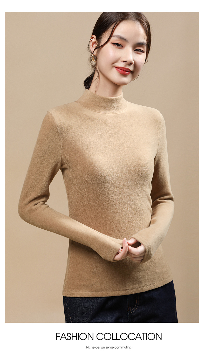 丁摩 双面德绒打底衫女冬季加绒加厚洋气大码中领秋冬保暖内衣5ZF-408