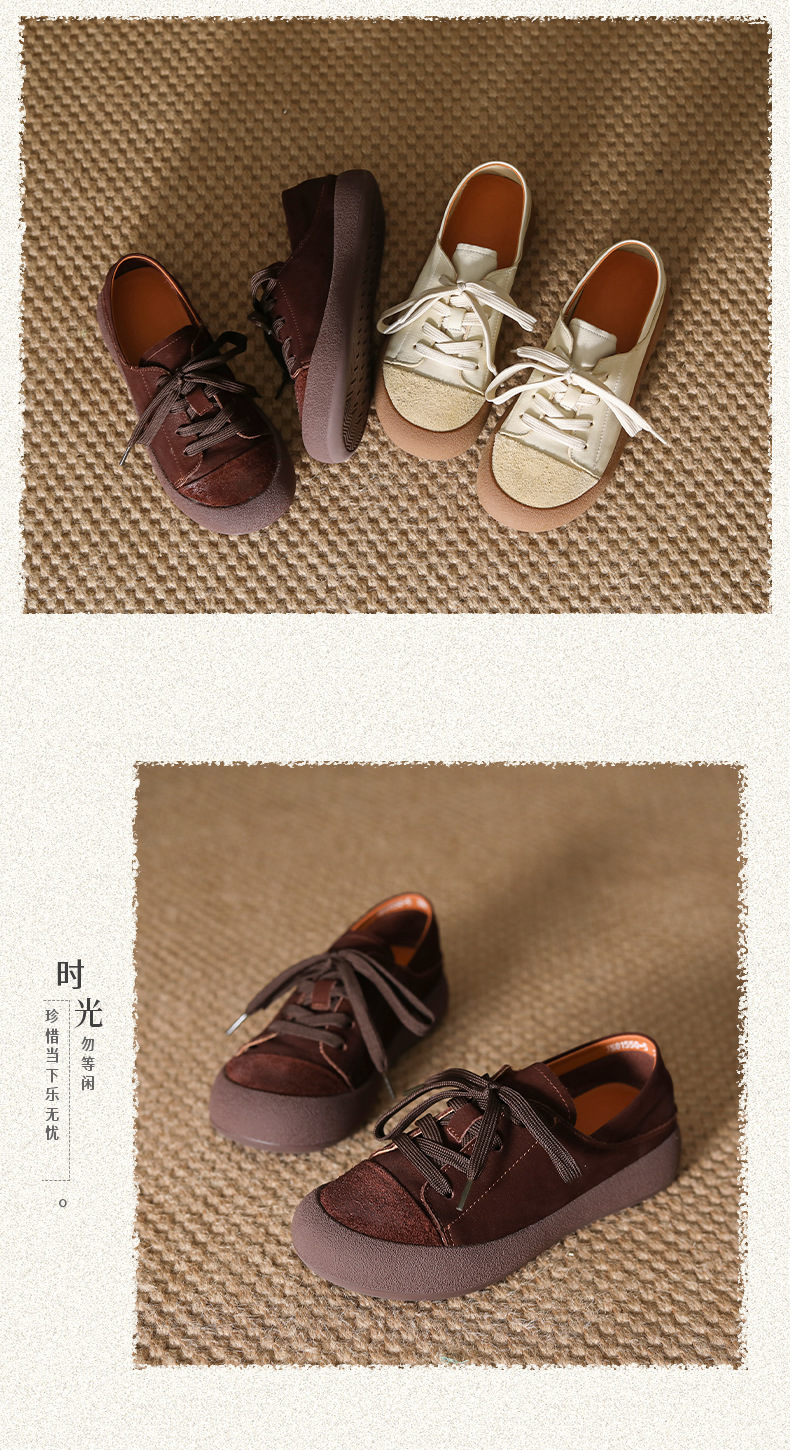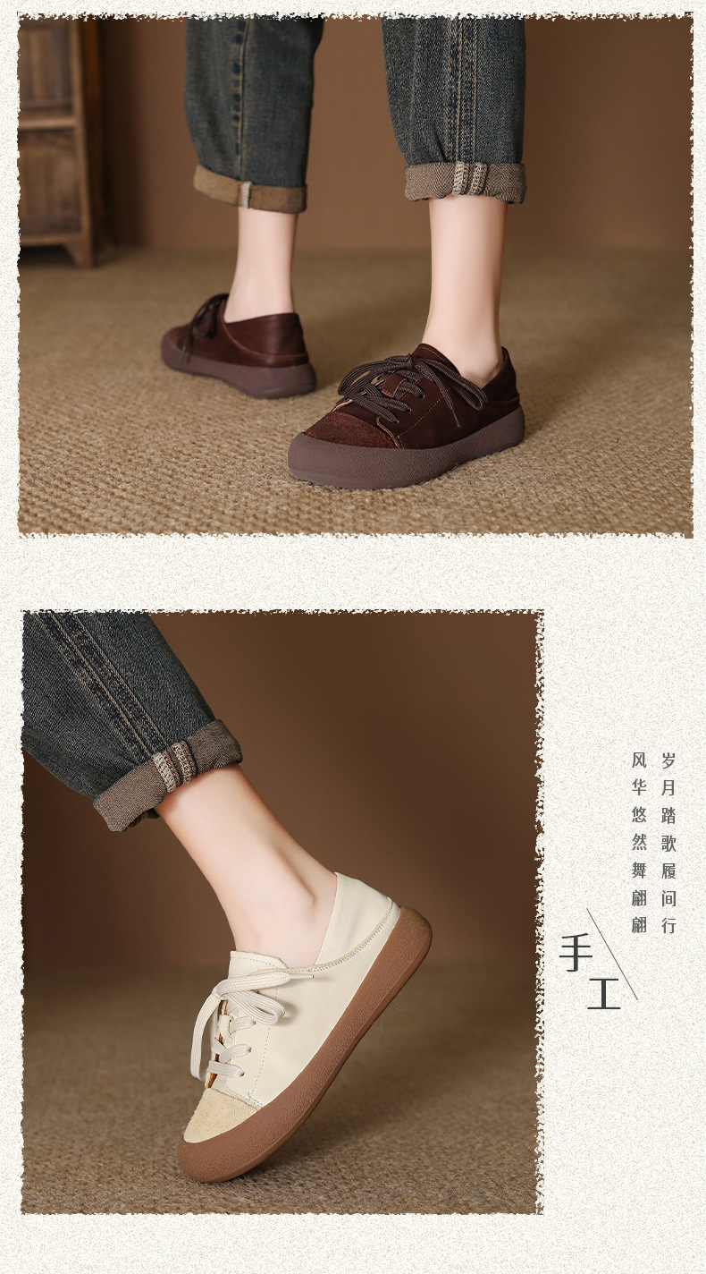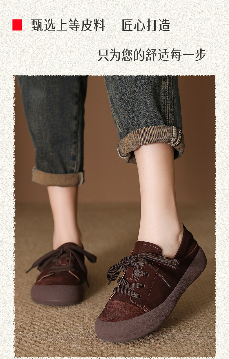 FR 85066复古休闲厚底板鞋磨砂牛皮透气鞋大头系带软底