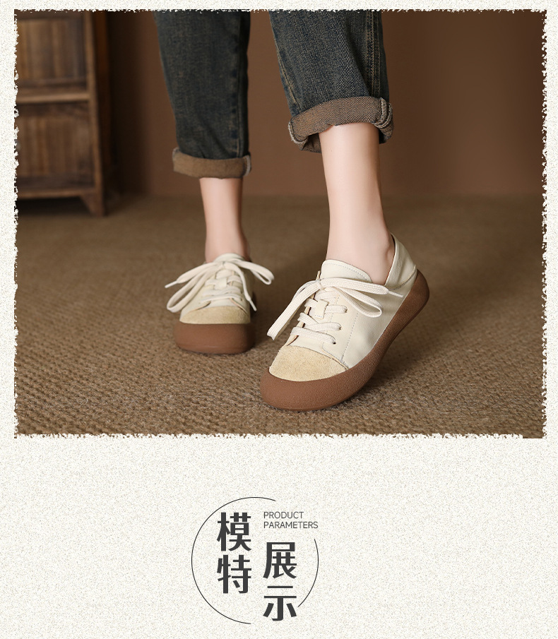 FR 85066复古休闲厚底板鞋磨砂牛皮透气鞋大头系带软底 商品图3