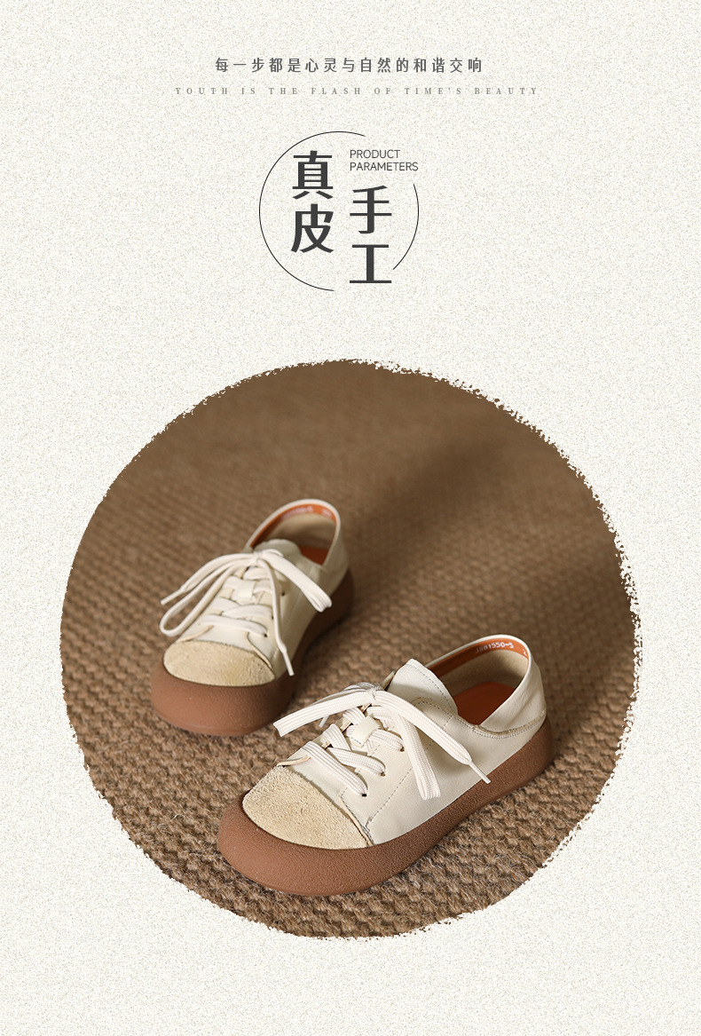 FR 85066复古休闲厚底板鞋磨砂牛皮透气鞋大头系带软底 商品图2