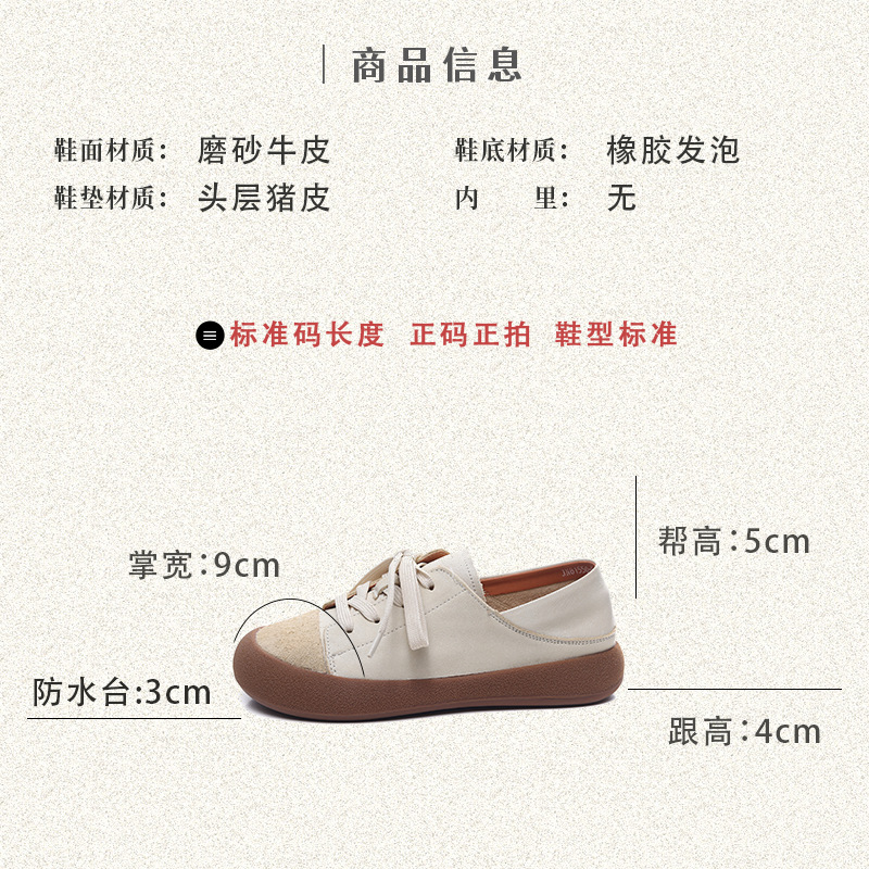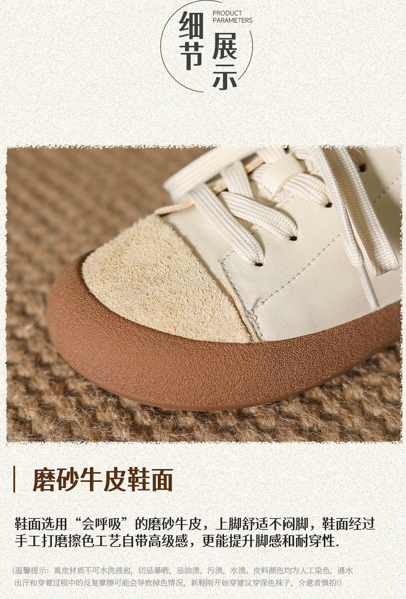 FR 85066复古休闲厚底板鞋磨砂牛皮透气鞋大头系带软底 商品图4